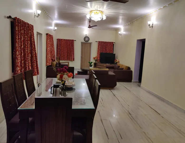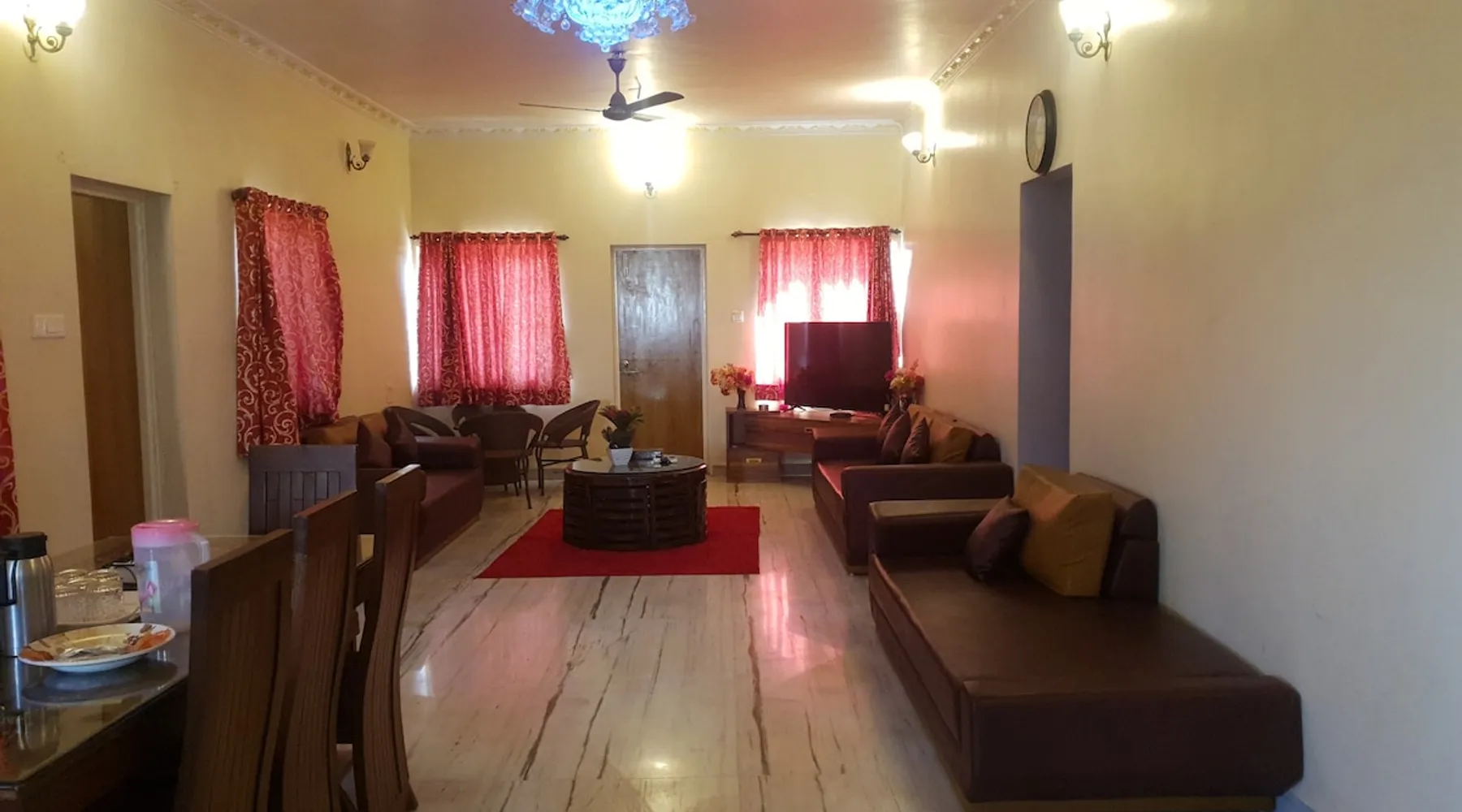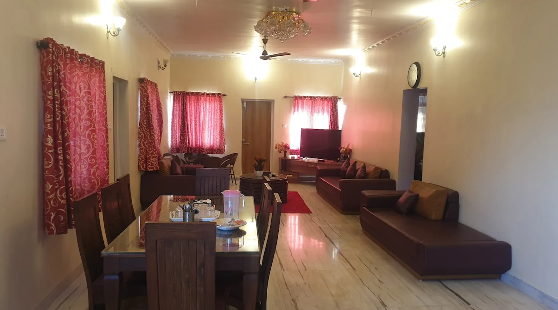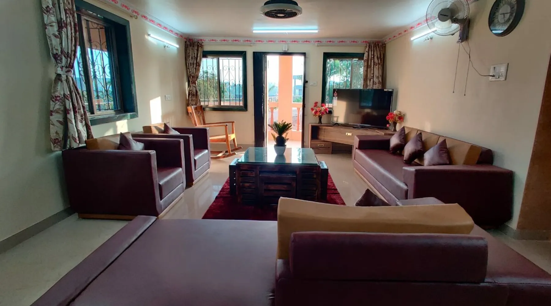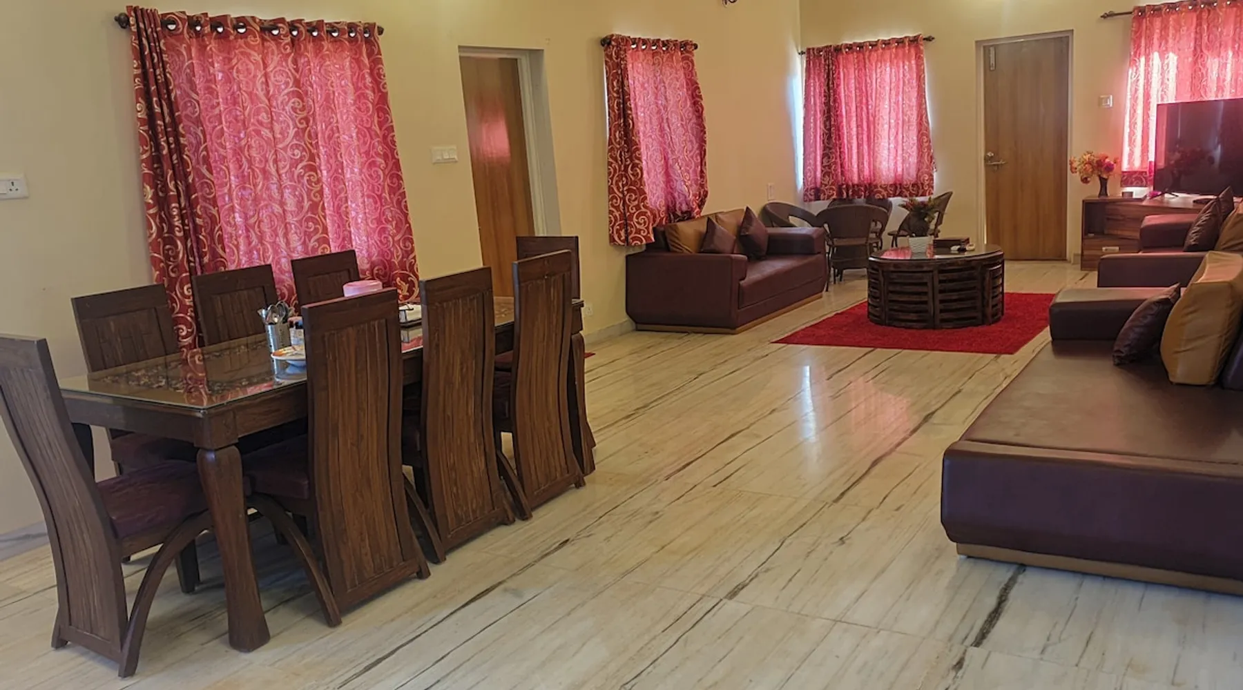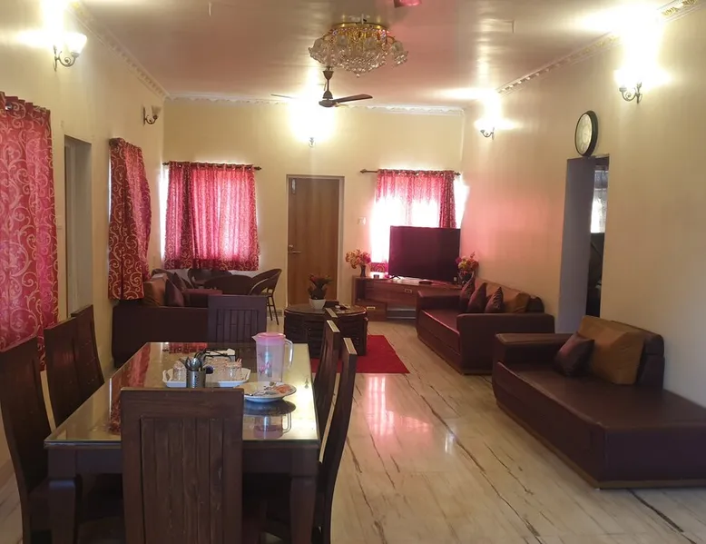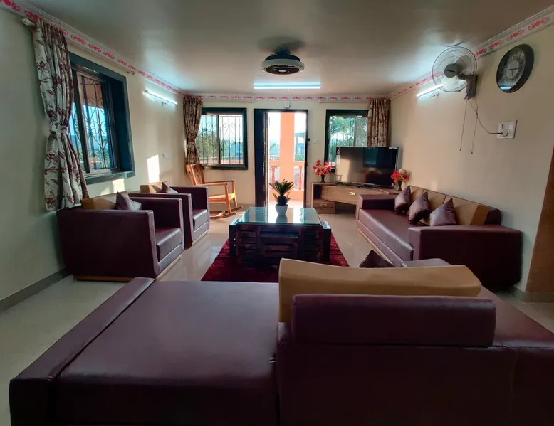 A luxurious villa with deluxe amenities having 2 floors, each having a floor plate of 3BHK (1700 sq. ft) and a private entrance to each of the floors. This can be used as an individual 3BHK villa for small groups (10 to 12 guests) as well as combined into a 6BHK villa for large groups and gatherings (25 to 30 guests). The breathtaking view truly encapsulates the beauty. With a balcony that spies right through to the horizon, the rustic charm of the Sunrise and Sunset will take your breath away. The space Splendid Sunrise and Sunset Breath-taking view 1700 sq. ft. 3 BHK fully furnished space Comfy and Luxurious Wooden Decor Easy trekking to Table Land (Asia's 2nd Largest Plateau) Modern and Functional Kitchen-Dine 5 minutes’ drive from the Main Market. Barbeque (DIY) Campfire