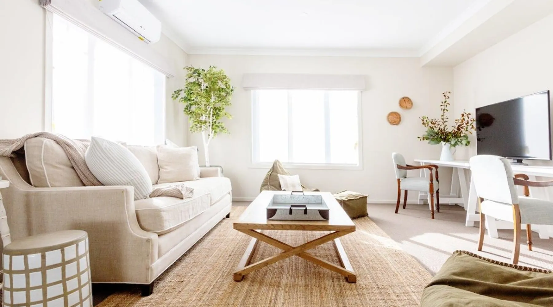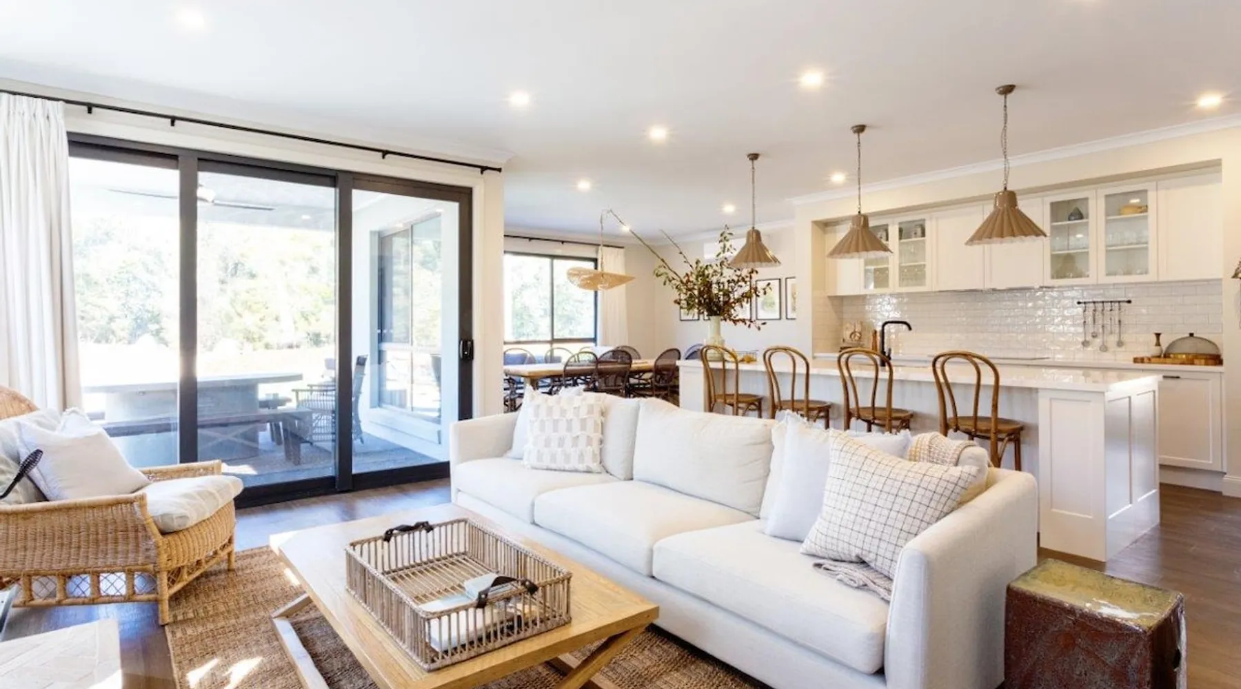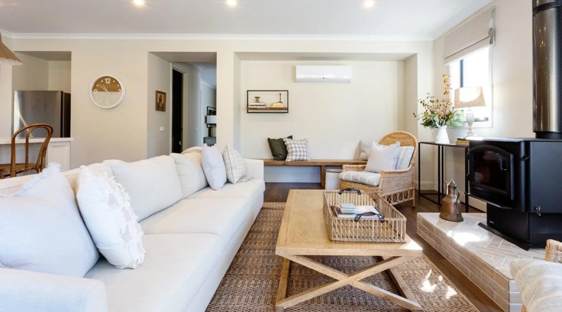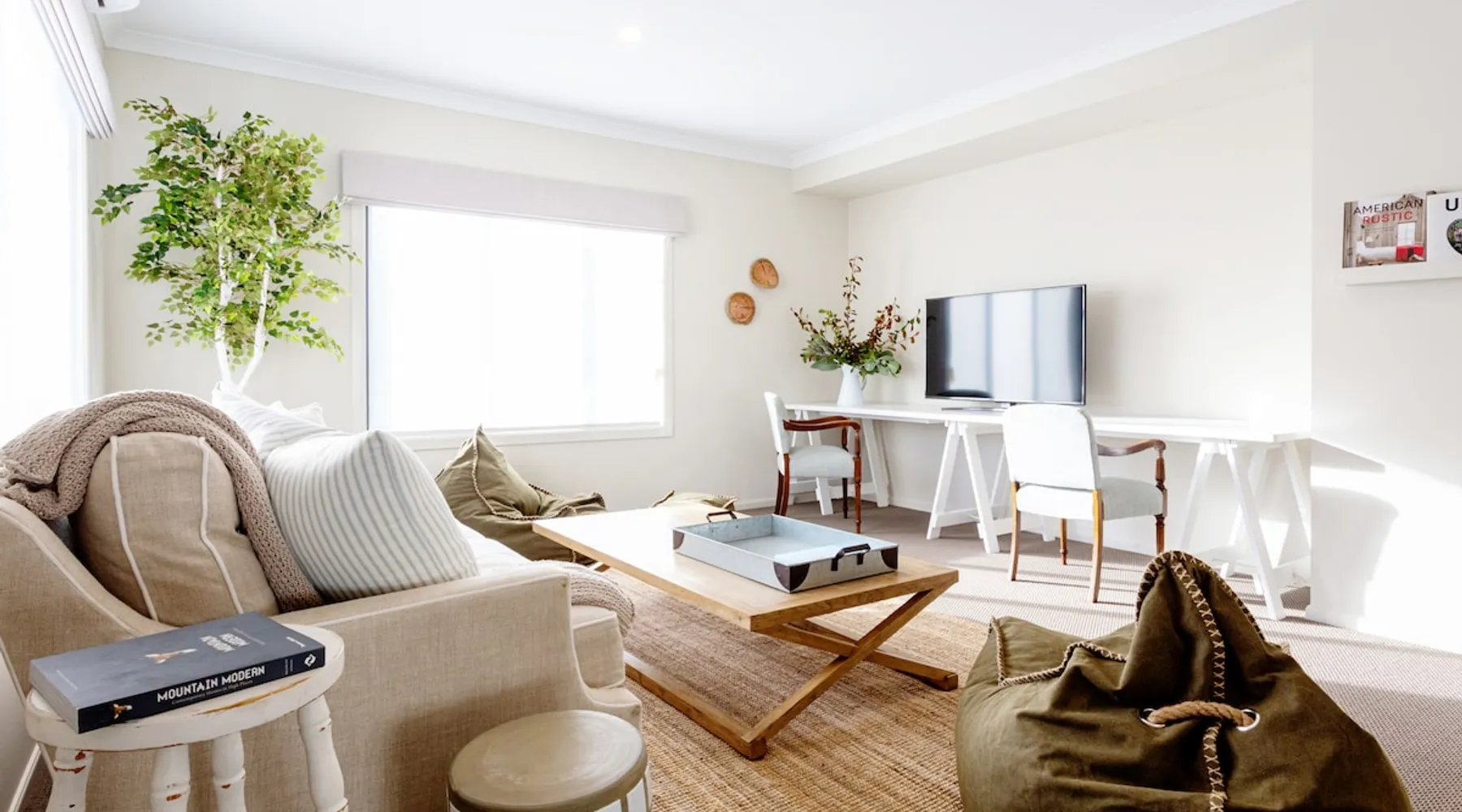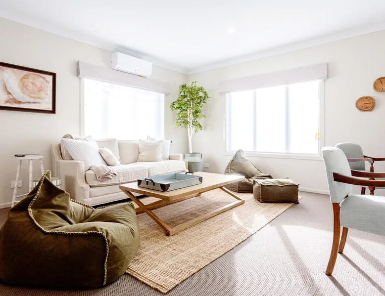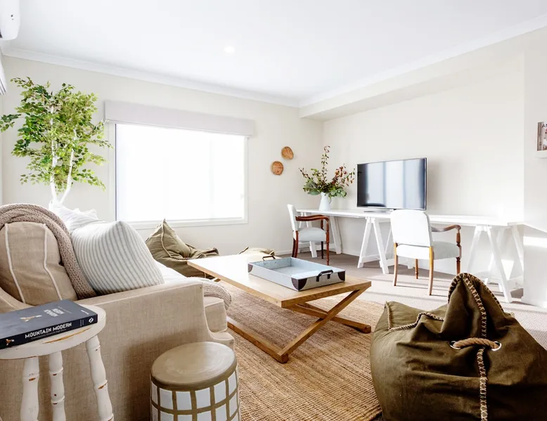 Spread across half an acre of parklike gardens and established trees, adjoining Bright’s famous Ovens River, this Resort-like executive retreat gives seclusion and magnificent bushland views. With its subtle blend of a North American lake house vibe in a modern Australian way, this two-storey home, with all the modern finishing’s and encompassing five generous bedrooms all with their own private bathrooms. The space We invite you to slowly discover the house over your stay as there are many delightful details and books to inspire and engage. The first detail that will captivate you when entering the front door at Bridgewater is the breathtakingly, elegant spaces made up of a thousand small, yet impeccable, touches. From the stunning and unique furniture pieces, the stately artwork, perfectly chosen light fittings, vintage decor pieces, all combined with tiny comforts that evoke the natural sounds, sights, and smells of the bush. Indoors Light & Bright but with a sense of refinement, the interiors of this designer Retreat features multiple sitting and dining areas, so you can enjoy the luxury of having everyone together or steal a quiet moment browsing the beautifully curated book collection. The common spaces are found predominately on the Ground Floor, with the heart of the home an open-concept fully equipped kitchen and family room where you can perch at the breakfast bar or share a bottle of wine with the wood fire glowing in the winter months, or perhaps cuddle up as a family in one of the two TV rooms and watch your favorite movie. Its contemporary gourmet kitchen features chef-grade appliances along with an island prep area and butler’s pantry that boasts our signature tea and coffee station. The indoor dining space is perfect while the dining room offers a large rustic wooden table, and ample windows to the yard, it’s positioning also provides the perfect opportunity for the chef of the house to still be part of the fun whilst cooking up a feast in the kitchen. Downstairs - Fully equipped kitchen - Butler’s Pantry - Dining room - Formal Lounge - Theatre Lounge - Fully equipped laundry - Powder room - Fitness space and casual lounge space - Bicycle storage Upstairs - Retreat & kids’ area - Study nook - Four guest bedrooms One of the most unique features of Big Sky Retreats is the popular fitness space. The converted garage space provides the ultimate multipurpose fitness and chill out space. Made up of a lounge nook inclusive of large flat screen TV where you can sit back and relax after a hard day of cycling, a personal fitness space equipped with commercial quality Star Trac Spin Bikes, Everest boxing gear, Physio recommended Yoga equipment as well as bicycle storage racks, and ski gear storage. Outdoors The extensive garden at Bridgewater is a heady mix of Australian Native scents and colours, stretching over half an acre. Tucked beneath this shady canopy of gum trees you will find an abundance of magical places to enjoy during your time here. As you step out of the back door you are welcomed by the undercover dining setting on the patio that welcomes the perfect setting for BBQ mealtimes. Adjacent you will find the inground swimming pool framed with pool deck, sun loungers and divine landscaping. On the opposite side to the pool you will find a comfortable outdoor lounge area perfect for those Summer nights. Meander further into the backyard along the perfectly lined pathway, you will be faced with the tough decision on which direction you should take. One direction takes you towards the gorgeous firepit, another towards the alfresco dining space where you can enjoy a meal under the stars. The hidden Adirondack chairs invite you to bask in the morning sun or perhaps continue to stroll deeper to the back of the property and find Bright’s famous Ovens River, take a dip, and feel instantly refreshed. Outdoor - Outdoor fire pit - Outdoor pool - Pool deck and lounges - Undercover Alfresco dining - Open-air Alfresco Dining - Open-air lounge - BBQ - Direct Ovens River access - Yoga lawn