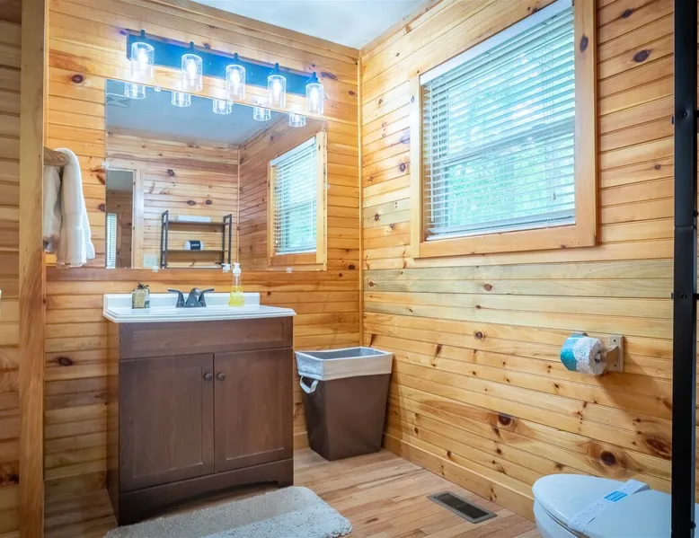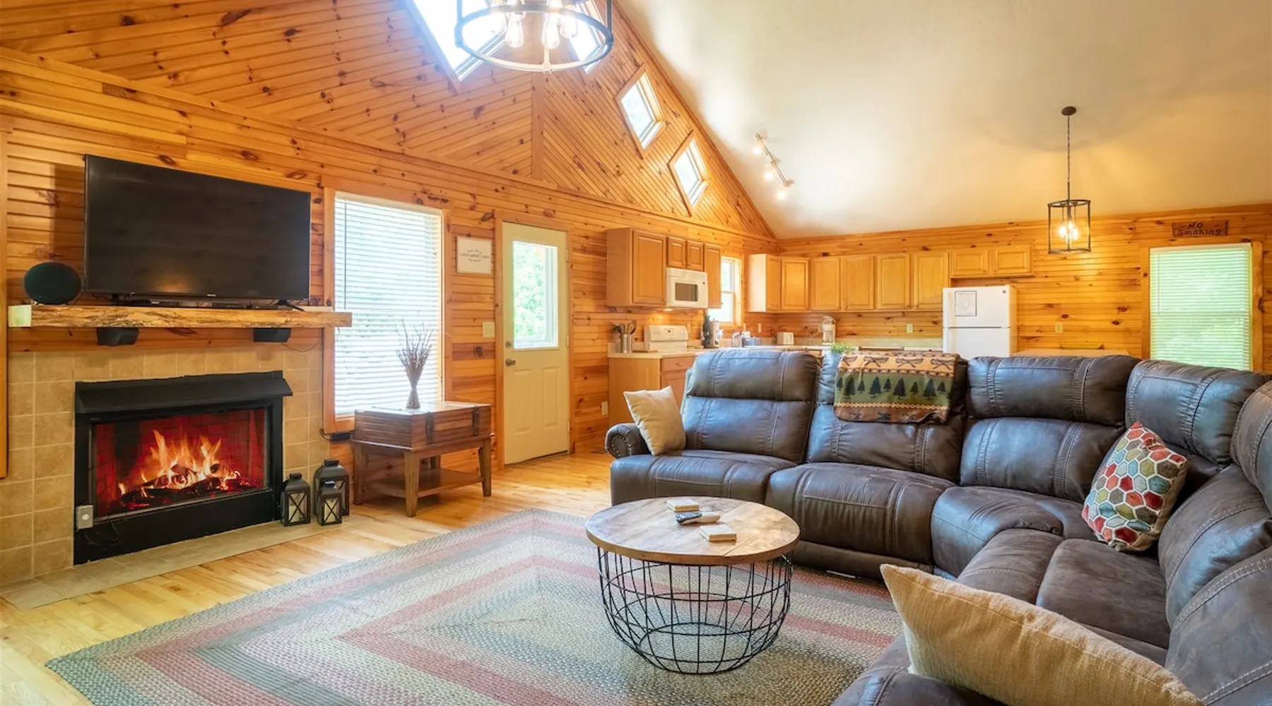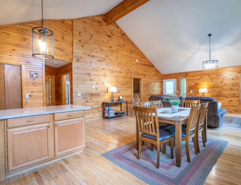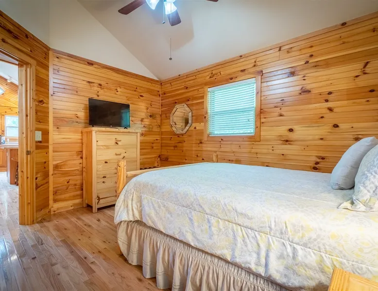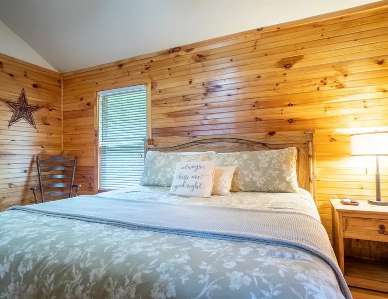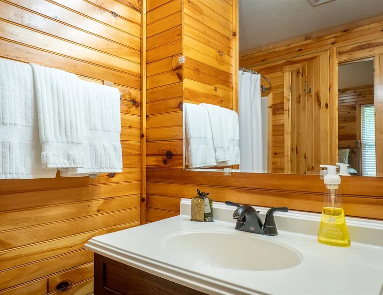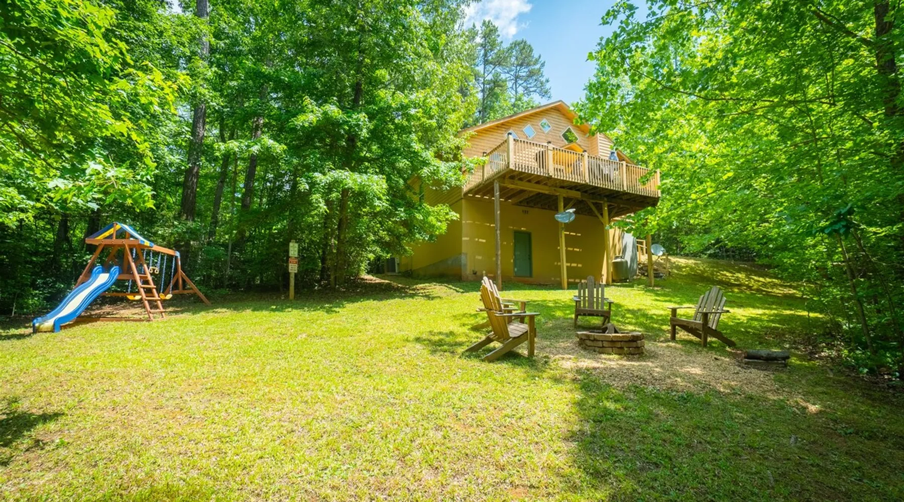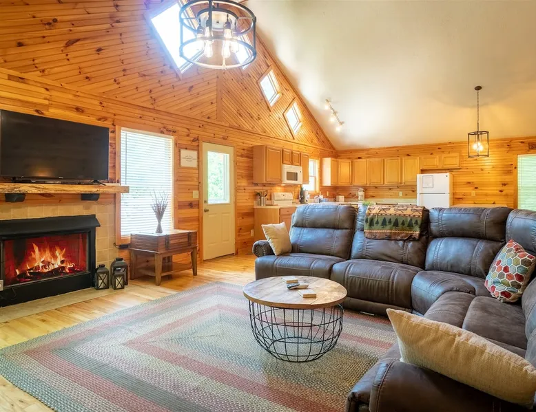 Welcome to Sunny Woods Cabin, your perfect mountain retreat nestled amidst the breathtaking scenery of Sautee Nacoochee, just minutes from Helen. This getaway promises to immerse you in nature's beauty, surrounded by pine trees and mountain vistas. Step inside and feel instantly at home in the spacious open floor plan, featuring vaulted ceilings, a cozy gas log fireplace, and ample natural light. You can enjoy the beautiful view while sipping on a glass of wine and savoring a delicious meal. The space Main Level - Everything on one-level - High-Speed WiFi throughout home - Hardwood Floors throughout - Beautiful tongue-and-groove walls throughout Living Room - Vaulted Ceiling - Gas Logs Fireplace - Smart TV with Netflix & Hulu - Brand New Leather Sectional - Bluetooth Speaker - Family Board Games - Easy Access to Back Deck Kitchen & Dining Area - Fully-Equipped with Essentials - Dining Table for 6 - Bar with Barstools - Refrigerator - Cuban Coffee Maker - Traditional Drip Coffee Maker - Coffee Mugs - Microwave - Dishwasher - Oven / Range - Plateware - Silverware - Glassware - Cookware - Dining Table for 6 - Bar with Barstools Master Bedroom - King Bed - Smart TV - Dresser Master Bathroom - En Suite - Essentials Provided - Shower Guest Bedroom - Queen Bed - Smart TV - Dresser - Closet Guest Bathroom - Essentials Provided - Full Bath with Tub Shower Misc. - Iron & Ironing Board - Washer & Dryer Back Deck - Wooded Views - Propane & Charcoal Smoker Grill - Patio Table with Chairs Backyard - Fire Pit Area - Playground for Kids Other things to note 25+ age requirement for lead guest. No exceptions. This property is not pet-friendly. No exceptions. Digital rental agreement will be required to sign and complete after property is booked. Firewood not supplied for firepit.
