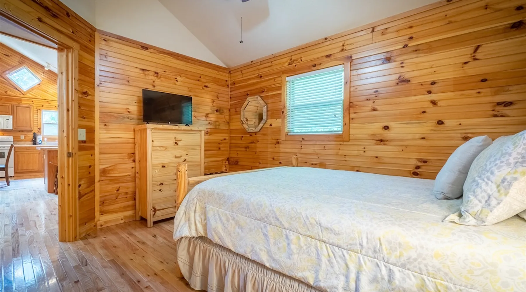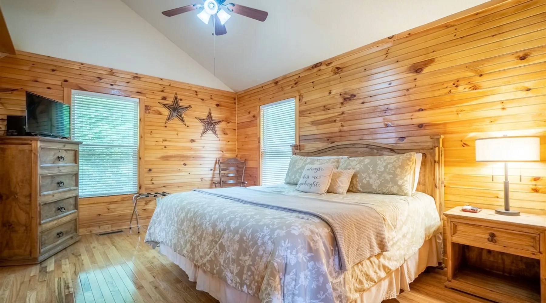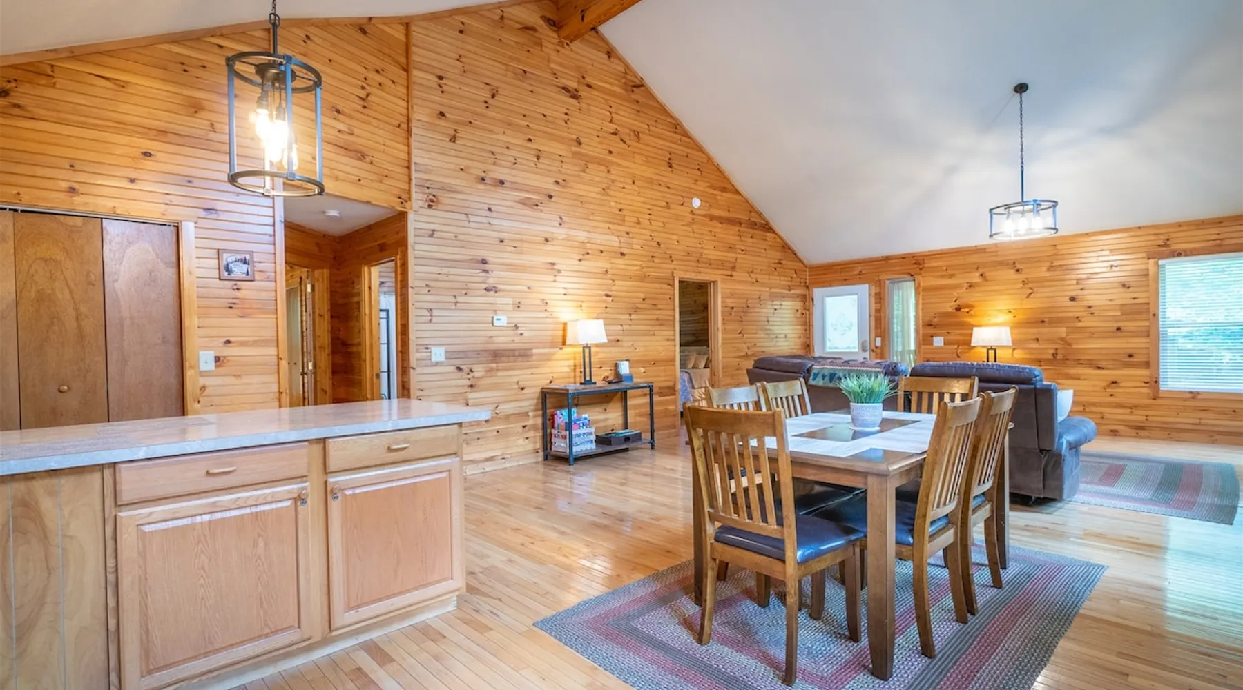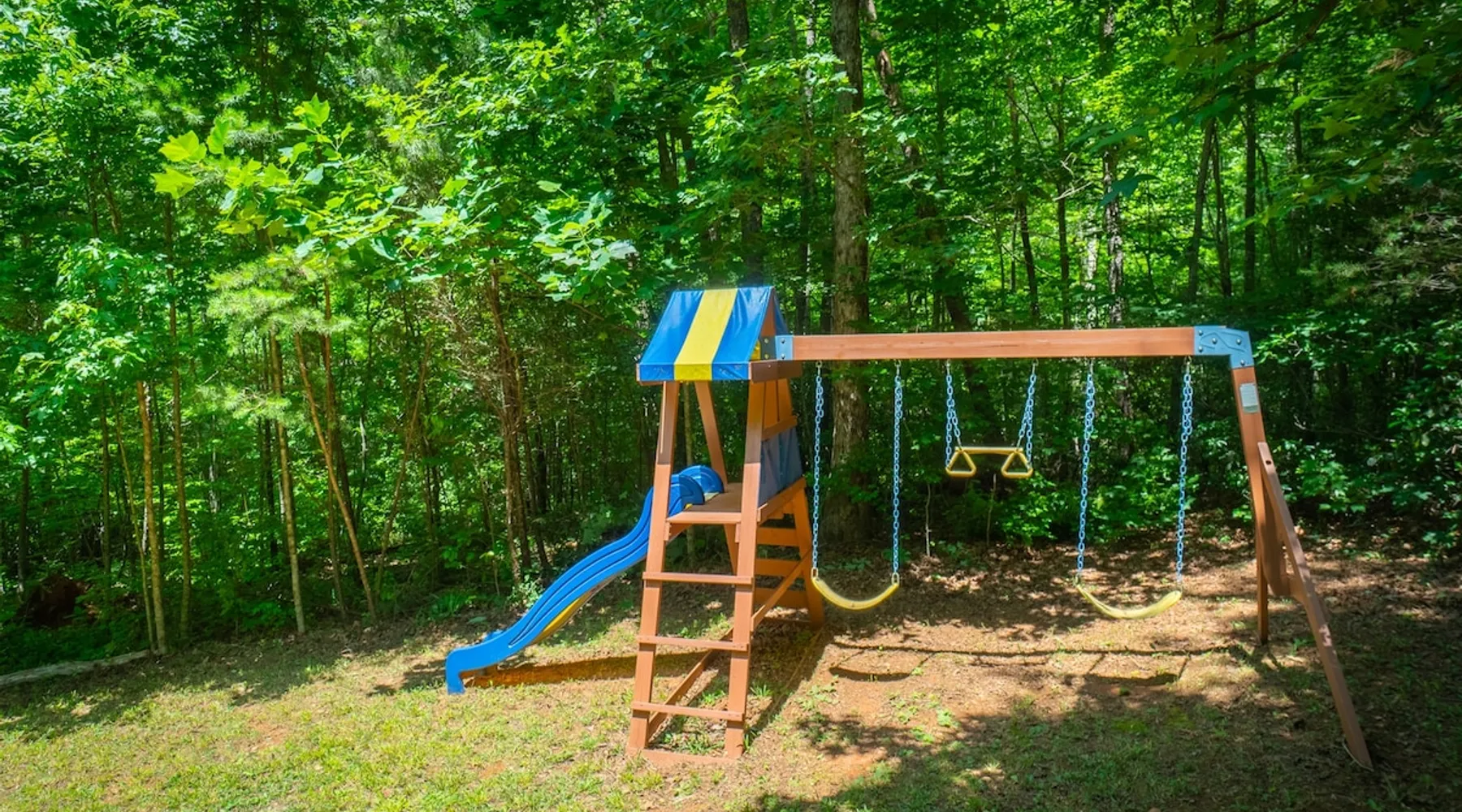 Welcome to Sunny Woods Cabin, your perfect mountain retreat nestled amidst the breathtaking scenery of Sautee Nacoochee, just minutes from Helen. This getaway promises to immerse you in nature's beauty, surrounded by pine trees and mountain vistas. Step inside and feel instantly at home in the spacious open floor plan, featuring vaulted ceilings, a cozy gas log fireplace, and ample natural light. You can enjoy the beautiful view while sipping on a glass of wine and savoring a delicious meal. The space Main Level - Everything on one-level - High-Speed WiFi throughout home - Hardwood Floors throughout - Beautiful tongue-and-groove walls throughout Living Room - Vaulted Ceiling - Gas Logs Fireplace - Smart TV with Netflix & Hulu - Brand New Leather Sectional - Bluetooth Speaker - Family Board Games - Easy Access to Back Deck Kitchen & Dining Area - Fully-Equipped with Essentials - Dining Table for 6 - Bar with Barstools - Refrigerator - Cuban Coffee Maker - Traditional Drip Coffee Maker - Coffee Mugs - Microwave - Dishwasher - Oven / Range - Plateware - Silverware - Glassware - Cookware - Dining Table for 6 - Bar with Barstools Master Bedroom - King Bed - Smart TV - Dresser Master Bathroom - En Suite - Essentials Provided - Shower Guest Bedroom - Queen Bed - Smart TV - Dresser - Closet Guest Bathroom - Essentials Provided - Full Bath with Tub Shower Misc. - Iron & Ironing Board - Washer & Dryer Back Deck - Wooded Views - Propane & Charcoal Smoker Grill - Patio Table with Chairs Backyard - Fire Pit Area - Playground for Kids Other things to note 25+ age requirement for lead guest. No exceptions. This property is not pet-friendly. No exceptions. Digital rental agreement will be required to sign and complete after property is booked. Firewood not supplied for firepit.