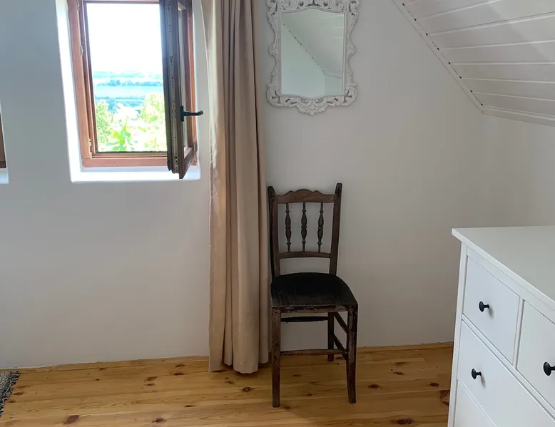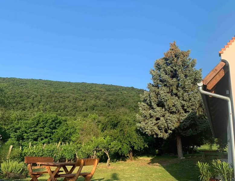 A quiet, two-floor house by lake Balaton, with a luxurious view of the surrounding hills and the lake. The house has was built in 1794 and renovated with great care in 2020. This charming place is very quiet, full of fruit trees by a forest. The terrace is shaded by walnut and pine trees. If you are looking an unforgettable vacation place in the country side, look no further. This is ideal for families with children. The space The place was renovated to preserve the unique architecture of the area. You will have two floors with separate entrances. Ideal for 4-5 adults plus kids, but has 6 beds for 9. It has two bedrooms and 2 living rooms with beds, and a hallway with a bed that can connects the bedroom. The top floor has pine wood flooring, and decorated with style. There is a shower and a small kitchen on both floors, an outdoor fireplace and a terrace grill. The garden is over 1000 m2. Registration Details MA21027484