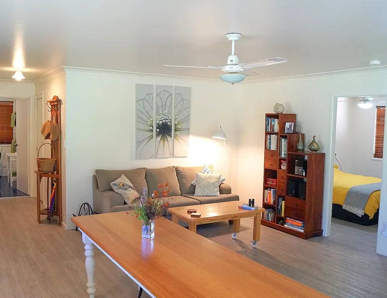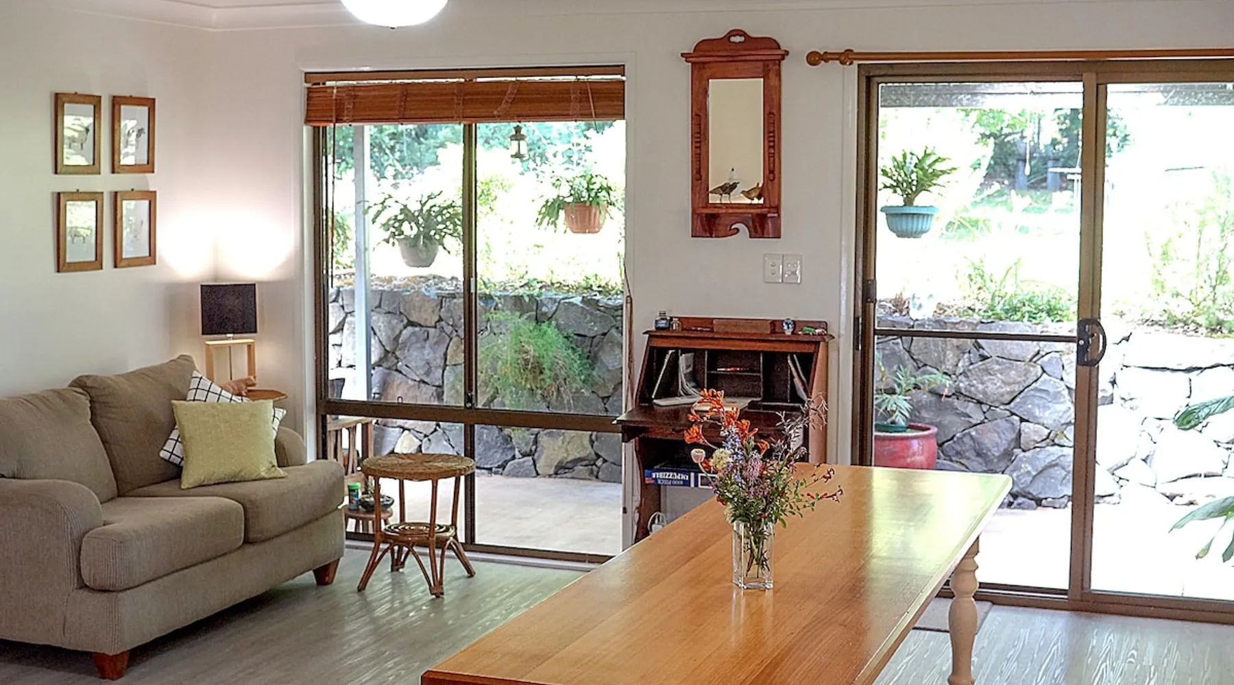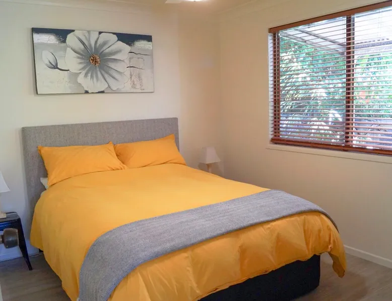 Nestled on the edge of Nightcap National Park, Molly’s Farm is your perfect rainforest retreat. This rustic self-contained cottage within easy reach of the best of the Byron Bay Hinterland yet feels a world away. With the Whian Whian Conservation Area just across the road, those looking for an active escape are spoilt for choice with some beautiful walks and drives in the Hinterland including Minyon Falls. The space The private cottage is set amongst tropical and native gardens. Guests are encouraged to enjoy the outdoors, with ample private space to relax with friends and family. From the adjoining lawn with a fire pit surrounded by luscious tropical gardens, to the charming veranda complete with a BBQ to sit and enjoy the tropical gardens and native animals that have made Molly's Farm their home. The cottage has two bedrooms with queen size beds and sleeps 4 comfortably. Amenities Include: - BBQ along with outdoor dining area - Firepit with chairs provided - Towels and linen are supplied - Air-conditioned and has ceiling fans in all rooms - Kitchen with stovetop, microwave, kettle, toaster, electric frypan, and full-size fridge (coffee, tea, and milk are supplied) - Washing machine and a clothesline for your convenience are provided - Two undercover car spaces available Please note, we do not have a TV in the cottage but there are books, games, and puzzles for your enjoyment. We look forward to sharing our lovely Molly's Farm with you. Guest access Private entry and the guests and welcome to walk around the property. Other things to note The Far North Coast boasts some of the best music events and the local markets are a must for anyone passing through. The Channon Markets are only 20-minutes away and Mullumbimby is a stunning half-hour drive. These are fantastic spots to find your new favourite artist, or grab a bite of local produce whilst listening to some live music. Not to mention we are only 45 minutes from Byron Bay and some of most of the popular beaches on the Far North Coast. If you are looking for art trails, a weekend discovering the gourmet produce the region is renowned for, or attending a festival or event, Molly’s Farm is a picturesque starting point for your Hinterland getaway. Registration Details Exempt