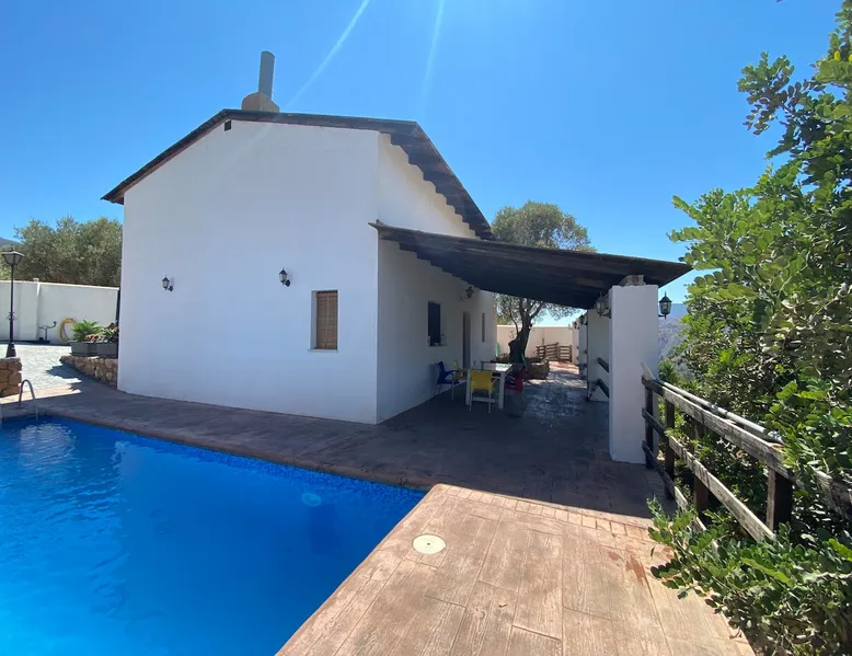 Country house with private pool located two km from Vélez Benaudalla (Granada) with mountain views and Sierra Nevada. 7 km from the beach and 50 km from Granada. Quiet and wonderful area because it is in the mountains and at the same time two km from the village, ideal for a family or group vacation. It has a large 49m2 kitchen living room with a large fireplace, three bedrooms with a double bed and one of them has another extra bed. Private parking. 20km from Alpujarra. The space - Private pool - Private parking - 2 rooms with a double bed - 1 bedroom with double bed + single bed - barbecue area - 2km from Vélez Benaudalla and motorway - 50km of Granada - 20km from the Alpujarra Granadina Guest access Everything in the home is private. Alarm installed. Other things to note In the months of July and August the minimum of days for rent will be one week. Thank you