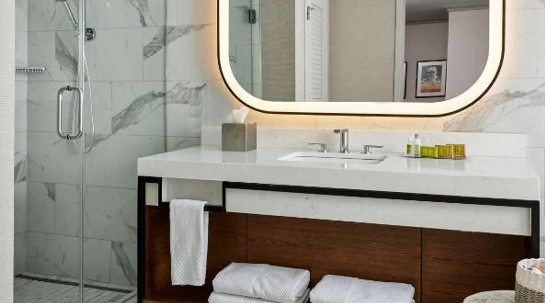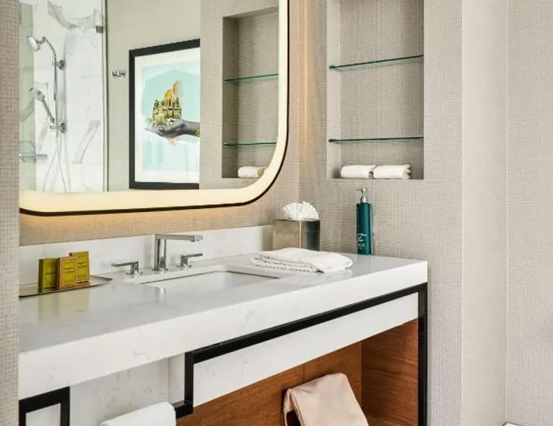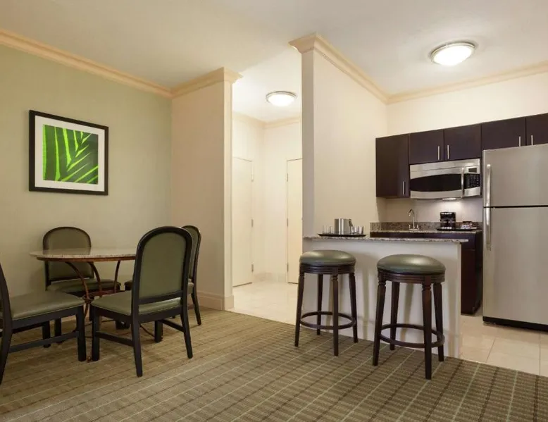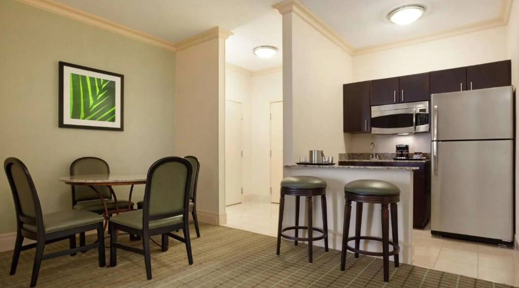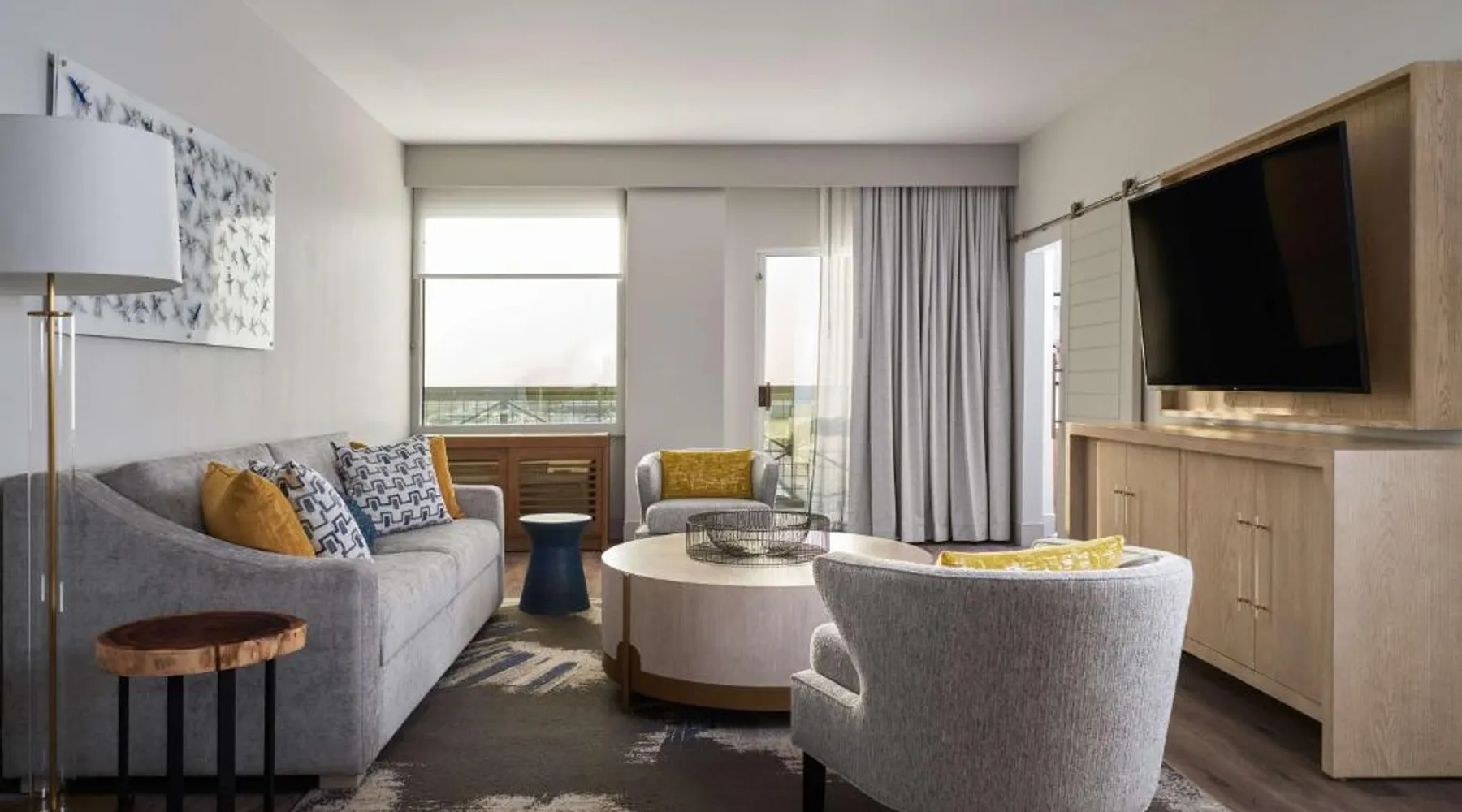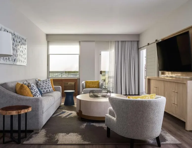 Comfortable Accommodations: DoubleTree by Hilton Hotel Dallas - Love Field in Dallas offers family rooms with air-conditioning, tea and coffee makers, hairdryers, refrigerators, and TVs. Each room includes a balcony, bathrobes, sofa beds, and seating areas. Exceptional Facilities: Guests enjoy a restaurant, bar, outdoor swimming pool, and free WiFi. Additional amenities include a fitness room, elevator, 24-hour front desk, and paid on-site private parking. Prime Location: Located a few steps from Dallas Love Field Airport, the hotel is near Highland Park Village (2.1 mi), Dallas World Trade Center and Meadows Museum (3.1 mi), and AT&T Performing Arts Center (5 mi). Guest Satisfaction: Highly rated for its connectivity to the airport, convenient location, and room comfort. This suite has air conditioning, a tea and coffee maker, a flat-screen TV and a balcony. The unit has 2 beds.