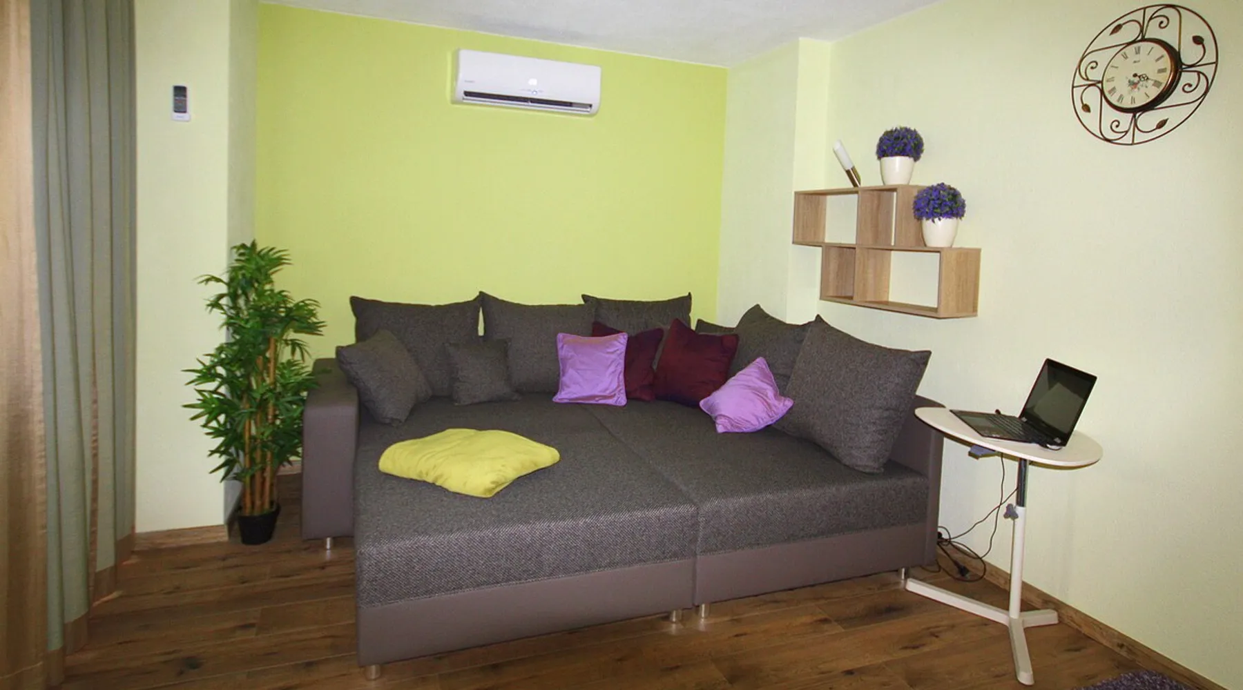 The apartment is part of the Hotel Rebstock and is located 8 km from Baden-Baden in the beautiful Neuweier surrounded by vines and a 30-minute drive from Strasbourg. The surrounding area offers hiking and cycling. The Black Forest highway is 5 km from the house. Private parking is available for you. The nearest airport, Karlsruhe/Baden-Baden Airport, is 10km away. The modernly furnished apartment is 60 m². The space In your own bathroom: • Shower • Kitchenette • Towels Apartment Facilities: • Air conditioning • Kitchenette • Seating area • Microwave • Heating • Satite Tv • Flat screen TV • Private entrance • Soundproofing • Dinning Area • Electric cooker • Kitchen essentials • Closet • Coffee maker • Linen linens • Dining table • Upper floors accessible by elevator • Sofa bed Free WiFi!