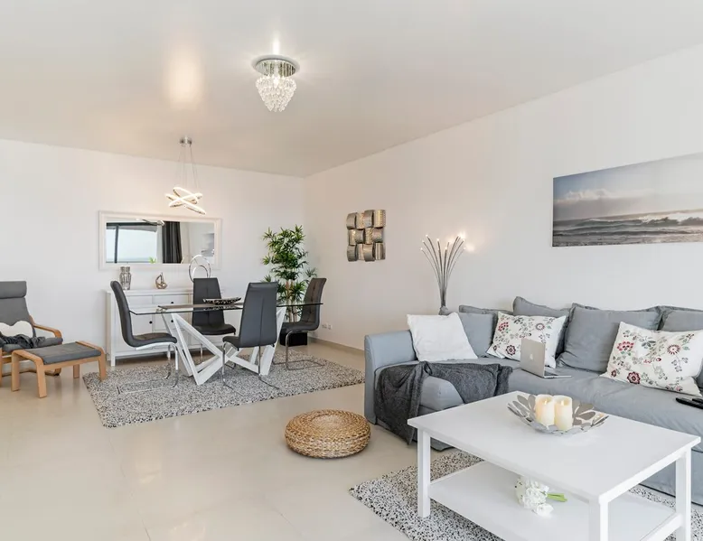 Perfect location for those who want to enjoy the beach, seaside walks, snorkeling, ocean views, and island tours. The space This beautiful and elegant apartment is located in one of the noble areas of the city of Caniço, near the beach and the pleasant promenade of Reis Magos. This housing has the best to give you, starting with the view to the blue ocean, which is visible in several rooms of this apartment. With two bedrooms, both with double bed and one with private bathroom, the property can accommodate a maximum of six people, thanks to the sofa bed available in the living room. The decor of this apartment matches all the lightness of the furniture and the good natural lighting that fills this nice property. As a beautiful view deserves a good balcony, this apartment has two. One with access from the bedroom, where you can sunbathe, and another with access from the living room, where you can have your meals with the Atlantic Ocean as a background. Finally, to have a great vacation, don't forget to take one or several dips in the pool shared by the condominium. In case you want to rent a car, you can park in the place available in the building. It has all the amenities for a calm and relaxing vacation! THE NEIGHBOURHOOD AND THE SURROUNDING AREA Caniço is located between Madeira's airport and Funchal, Madeira's main city. With several places of interest, the town is known for its calmness and the 'Reis Magos', which is close to the apartment. This area has a beautiful promenade, which connects sea and land in perfect harmony. The building is located about one kilometer from this fantastic promenade, ideal for a walk on summer evenings and winter afternoons or for beachcombing during the warmer days. Nearby there are several bars and restaurants where you can delight yourself with our gastronomy or with international cuisine. In addition to the nearby options, you can go to the center of the village of Caniço (five minutes by car) where you will find a wider variety of restaurants, a pharmacy and a shopping center with a medium-sized supermarket. TRANSPORT For departures and arrivals from the airport, the best option to reach the apartment will be the transfer. Ask us to book one with our local partners. It is cheaper than the cabs you find at the airport! To get to Funchal, there are bus stops nearby. GUESTS ACCESS Guests have access to all areas of the apartment. INTERACTION WITH THE GUESTS We are always available to help or answer any questions. Contact us through our cell phone numbers or email. We will do our best to accommodate all requests. OTHER REMARKS - According to Portuguese law, all guests are required to present a valid identification document (e.g. passport, identity card). - Check-in must be scheduled in advance. If not booked within a maximum of 48 hours, guests will be subject to our staff's availability. - All bed linens and towels are provided. We can also place a crib, high chair, and baby bathtub if needed. There is a first aid kit, fire extinguishers and fire blanket at all properties. ATTENTION We inform that a Municipal Tourist Ecotax will be charged for person staying overnight in the municipality of Santa Cruz. All guests staying in tourist developments and / or accommodation establishments, aged 13 or over, will be charged 2,00€ per person/night, up to a maximum 7 nigths stay/ 14€ per person. Close to your arrival, you will receive the link to pay this fee. RULES OF THE HOUSE We want you to feel at home! Thank you for respecting your neighbors and for not smoking inside the properties. Registration Details 79585/AL
