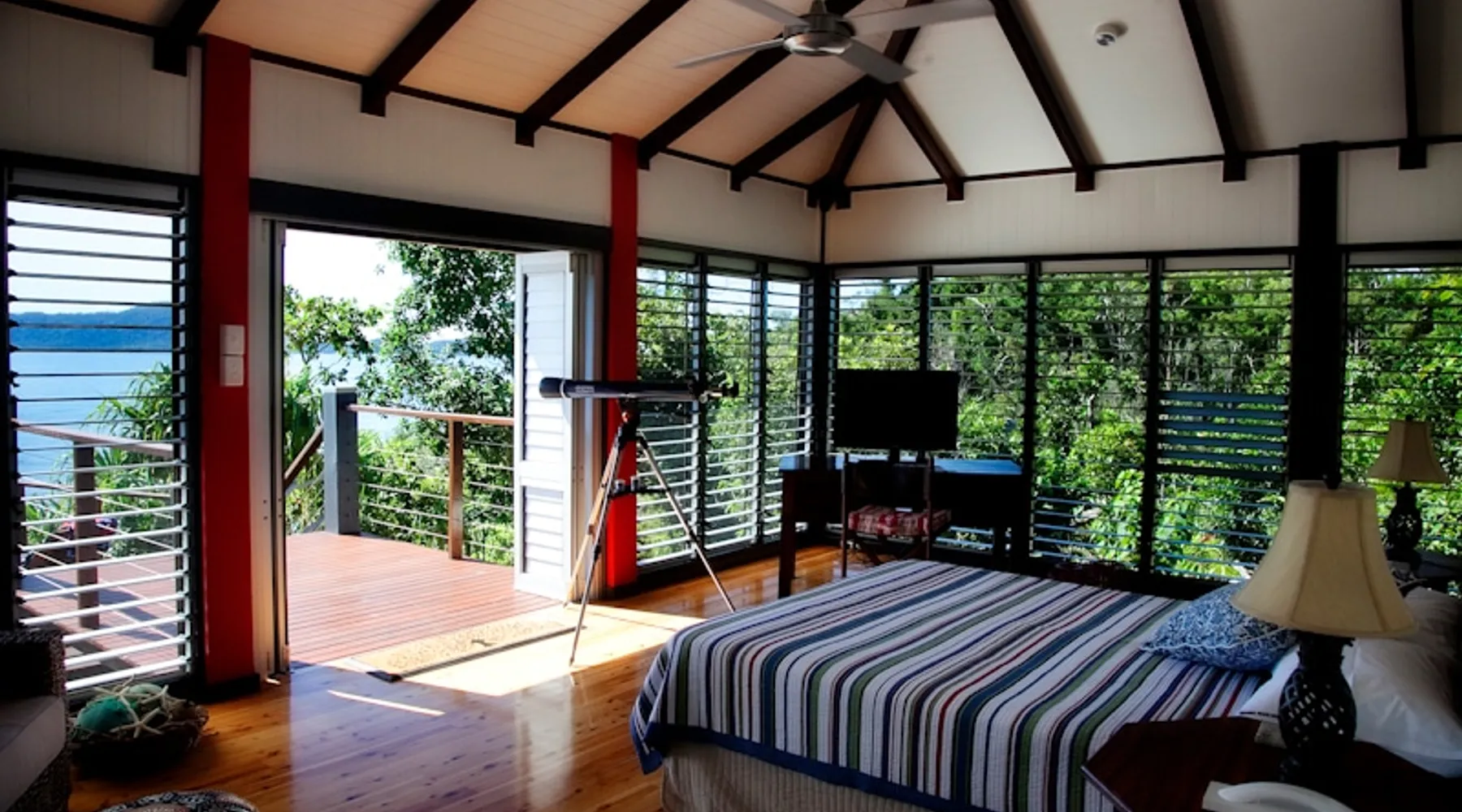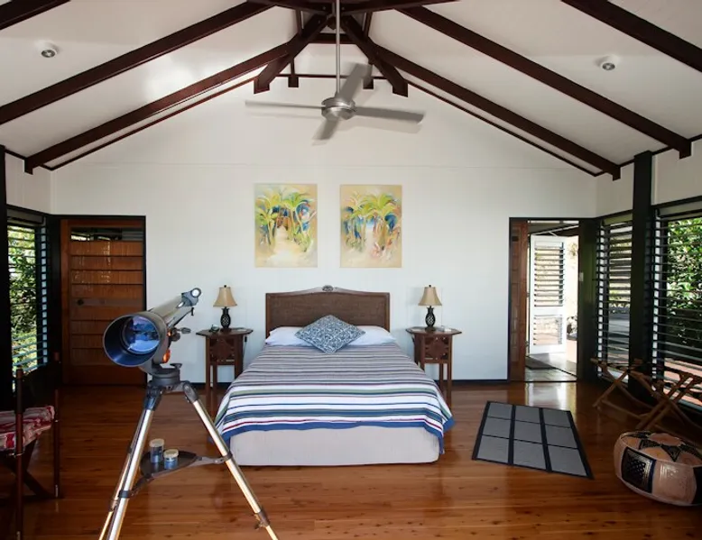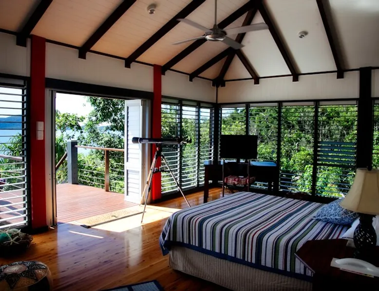 Our house is one of the most unique houses in Queensland. Located on Bedarra Island,one of only seven houses. It is achitect designed to blend with the island landscape. It is built around the natural rock features of the island and is nestled in the tropical rainforest. The house is north facing with spectacular views of the Coral Sea and the neighbouring islands. We have two secluded beaches where you will often be the only people on them. The surrounding waters are pristine and rich in colour The space Exclusive and private tropical location on an island in North Queensland, Australia. Spacious architect designed open plan pavilion house featuring cathedral ceilings and decorated in contemporary coastal style. An oversize master bedroom pavilion, featuring queen bed, walk in robe and stunning water views. Large slate bathroom, that opens to the rainforest and elements, featuring dual access from the master bedroom and main pavilion. Bathroom contains shower, plunge bath, toilet and hand basin. Main pavilion incorporating a gourmet stone kitchen, indoor / outdoor dining and lounge room. Powder room. Two pavilions connected by a timber boardwalk floating over the trees. On island caretaker providing assistance with arrival / departure and local advice. Transportation to island is by boat from Mission Beach, QLD. The beach house experience creates a unique contrast for the modern day beachcomber. Offering the ultimate in privacy, the islands stunning natural beauty is highlighted by pure white beaches, turquoise waters, soaring granite boulders and lush rainforest. Architect designed for the tropic climate and relaxed holiday living this pavilion style house nestles high in the trees with stunning Coral Sea views toward nearby Dunk Island. Thanks to a rare freehold title this exclusive island enclave features two private beaches, shared with only a handful of other residences. The Bedarra Beach House experience offers total relaxation that is far removed from commercialised resorts and over developed tourist towns. Spiritual in effect; the rare natural environment, privacy, seclusion and healthy living provide the ultimate tonic for modern life. Guest access Apart from enjoying the whole house, guests also get to enjoy our two beautiful private beaches and the surrounding rainforest. We also have a tandem kayak which you paddle the waters surrounding Bedarra Island. Guest can look forward to a relaxing or adventurist time, the choice is yours. Other things to note Our house has a fully equiped kitchen, for those who would like to dabble in some gourmet cooking.