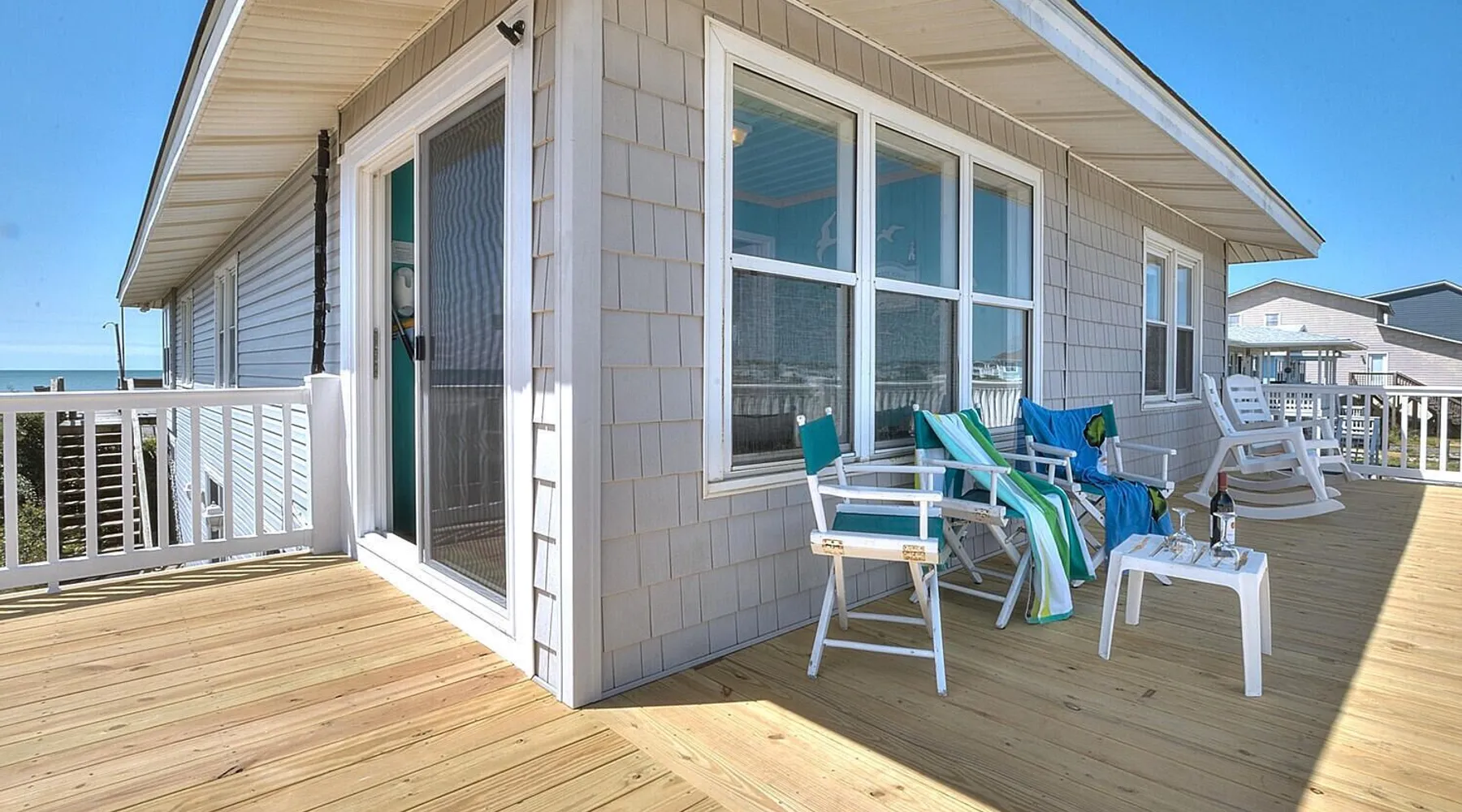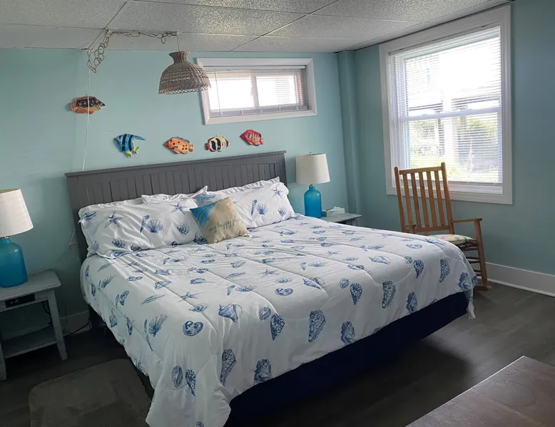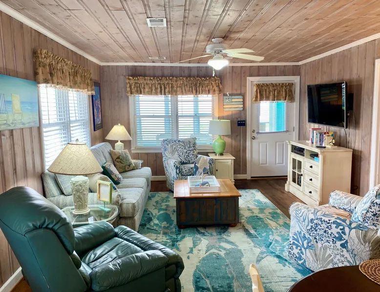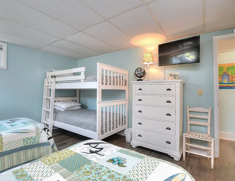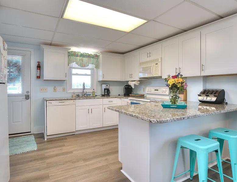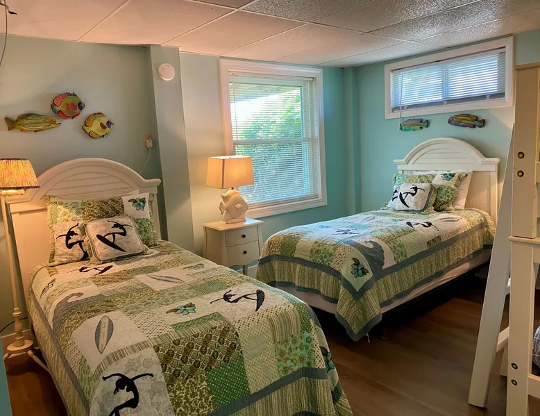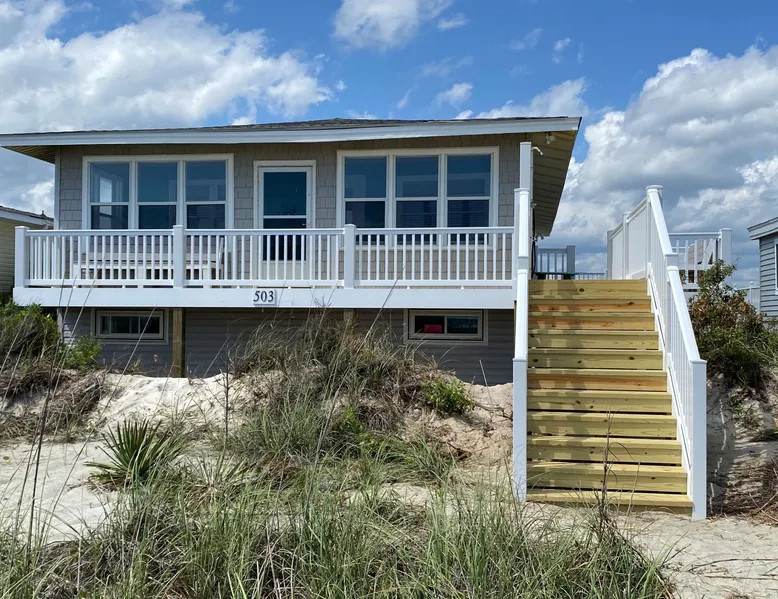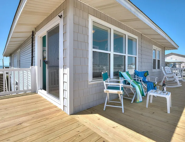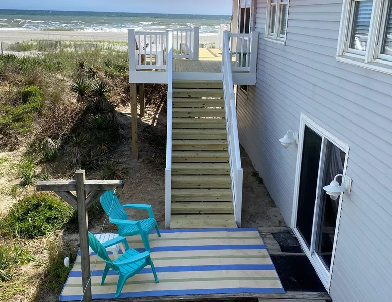 Escape to Wind Beneath My Wings, an updated and charming Holden Beach oceanfront cottage that is perfect for your next family vacation. Upstairs, the cottage features 3 bedrooms, 2 full baths, and 4 TVs with expanded cable, including one in every bedroom. Hardwood floors and hand-rubbed whitewashed tongue and groove walls make the interior cozy and inviting, while the eat-in kitchen and bright and cheery great room provide ample space for family gatherings. The oceanside sunporch is the perfect spot to relax and soak up the ocean breeze while savoring the salt air and watching the kids play in the waves. A private boardwalk takes you to the beach, while the bistro table on the streetside porch offers unobstructed views of the salt marsh and stunning sunsets over the intracoastal waterway. Take the interior spiral staircase downstairs and discover another brightly decorated great room, a fully stocked kitchen (2 refrigerators in this family friendly home), 3 more TVs with expanded cable, 2 additional bedrooms, and a full bath. Sliding glass doors lead to a deck with Adirondack chairs, the ideal spot to relax and stargaze. Enjoy the heated saltwater pool with tanning shelf and pool deck with seating, expanding your living space and providing the perfect setting for family fun. Challenge yourself on the Holden Beach Fit Trail, located just across the street. An outdoor hot/cold shower is situated right outside your door, making it easy to rinse off before enjoying a delicious seafood dinner. We allow one small dog of acceptable breed, age, and temperament with a $300 non refundable pet fee. Please note that dogs are not allowed in the pool. A charcoal grill is also provided for your convenience. Book your stay at Wind Beneath My Wings and experience the perfect beach getaway! 5 BDRM, 3 BATHS, SLEEPS 14. BR #1 KG with private bath (UP) BR #2 QN (UP) BR#3 pyramid bunkbed (1 double, 1 single) and one twin (UP). Bath is situated in upstairs hall between BR#2 and BR#3. BR #4 KG (DN) BR #5 2 twins, and one Twin bunk bed (total of 4 twins in BR #5) (DN). Bath located in downstairs hall between BR#4 and BR #5. Sleeps 8 Adults max. 2% DISCOUNT ON RENTAL RATE FOR THOSE WHO PAY BY CHECK High Speed Internet DVD 7 TV's. 1 in each bedroom and 1 in each greatroom. Bed and Bath Linens Included for weekly rentals Departure Cleaning Included For Weekly Rentals Non Smoking Dog Friendly. 1 dog of acceptable breed, age, and temperament under 45# allowed with fee. Keyless Entry Beach Chairs Included ($250 Value) Pool Heat Included for Weekly Rentals. Heating available April, May, Sept, and Oct. Partial week rentals requesting pool heat will have pool heating fee. Exterior Security Cameras In Use. Recent Updates: We are so excited to announce installation of a private saltwater pool ! The pool is a generous 12 x 23 with plenty of decking. We have heating capability for the early spring and later fall rentals. Heat must be requested at least 1 week prior to your arrival. This private pool will be open from April through October. Pool heat must be requested 1 week in advance of your arrival. If you choose pool heat, we will set the heater to 80 degrees 24 hours prior to your arrival during April, May, Sept and Oct, with the understanding that outdoor weather conditions greatly affect pool water temperature. Pool heaters cannot operate if the temperature outside is under 55 degrees. ABOUT BRINGING YOUR DOG: We allow one small dog (under 45 pounds) of acceptable breed, age, and temperament with fee . Any additional pet(s) must be approved through property owner and will result in a pet fee. This fee is not to cover damages caused by a pet, but just covers the privilege of bringing them along on your vacation. Any cost resulting from damages, extra cleaning, fleas, odors, etc. that occur as a result from a pet being in a property will be deducted from your refundable security deposit.-Please pick up any and all pet waste after your pet whether on or off the rental property.-PUPPIES ARE NOT ALLOWED. -Nails must be clipped to avoid scratching damage.-The pet MUST be on a flea program, and owner must be able to provide evidence of such program if required. The dog must not be left unattended. If left alone in the house for short periods of time, the dog must be crated. The pet is NOT allowed on the furnishings or in/on bedding. -Pets are NOT allowed on the beach from May 20 to September 10, with the exception of the hours from 5:00 pm to 9:00 am. Dogs are NOT allowed in the pool. Your reservation will be canceled with no refund if you allow your dog in the pool. CANCELLATIONS AND TRANSFERS: In the event there is a cancellation or a transfer of a confirmed rental for any reason, Owner must be notified in writing, email or fax. Any refunds due will be made to the leaseholder. .We reserve the right to cancel overdue payment reservations without notification. We reserve the right to cancel overdue payment reservations without notification. SURVEILLIANCE: There are surveillance cameras located on the exterior of the property. There are no cameras located inside the cottage. The surveillance cameras overlook the parking areas, exterior entry doors and pool, and are installed primarily for deterrence and monitoring purposes when the property is not rented or is not occupied by the property owner. Tampering with the cameras in any way is strictly prohibited and may result in immediate removal of all guests from the property and forfeiture of all amounts paid. ABOUT HOLDEN BEACH: Welcome to Holden Beach, North Carolina, where family values and old fashioned fun are still a part of your vacation. Holden Beach has a very small commercial area on the island. That point is considered by many to be a key reason to keep them coming back year after year. While there are limited commercial establishments on the island, everything one could desire is located within a short driving distance. The causeway leading to the island contains nume