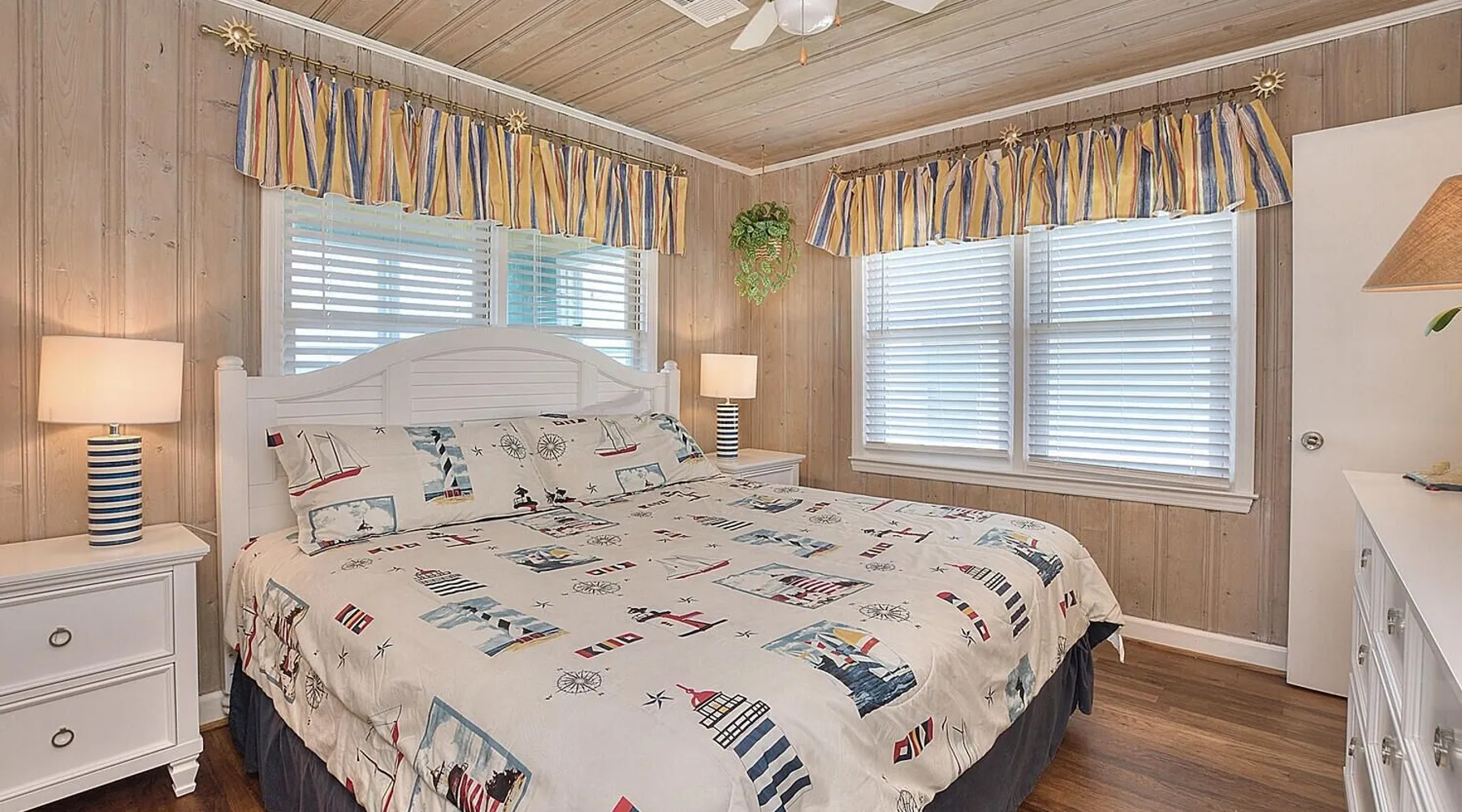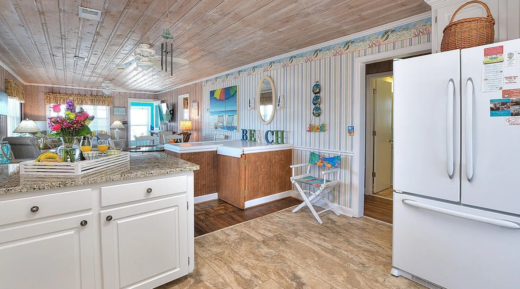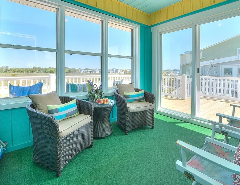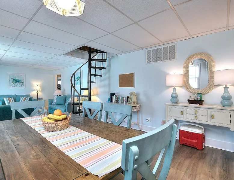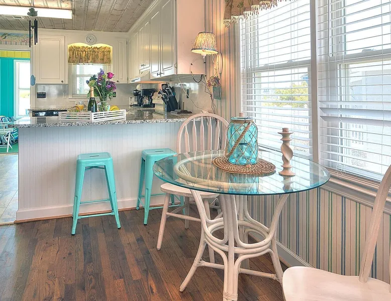 Escape to Wind Beneath My Wings, an updated and charming Holden Beach oceanfront cottage that is perfect for your next family vacation. Upstairs, the cottage features 3 bedrooms, 2 full baths, and 4 TVs with expanded cable, including one in every bedroom. Hardwood floors and hand-rubbed whitewashed tongue and groove walls make the interior cozy and inviting, while the eat-in kitchen and bright and cheery great room provide ample space for family gatherings. The oceanside sunporch is the perfect spot to relax and soak up the ocean breeze while savoring the salt air and watching the kids play in the waves. A private boardwalk takes you to the beach, while the bistro table on the streetside porch offers unobstructed views of the salt marsh and stunning sunsets over the intracoastal waterway. Take the interior spiral staircase downstairs and discover another brightly decorated great room, a fully stocked kitchen (2 refrigerators in this family friendly home), 3 more TVs with expanded cable, 2 additional bedrooms, and a full bath. Sliding glass doors lead to a deck with Adirondack chairs, the ideal spot to relax and stargaze. Enjoy the heated saltwater pool with tanning shelf and pool deck with seating, expanding your living space and providing the perfect setting for family fun. Challenge yourself on the Holden Beach Fit Trail, located just across the street. An outdoor hot/cold shower is situated right outside your door, making it easy to rinse off before enjoying a delicious seafood dinner. We allow one small dog of acceptable breed, age, and temperament with a $300 non refundable pet fee. Please note that dogs are not allowed in the pool. A charcoal grill is also provided for your convenience. Book your stay at Wind Beneath My Wings and experience the perfect beach getaway! 5 BDRM, 3 BATHS, SLEEPS 14. BR #1 KG with private bath (UP) BR #2 QN (UP) BR#3 pyramid bunkbed (1 double, 1 single) and one twin (UP). Bath is situated in upstairs hall between BR#2 and BR#3. BR #4 KG (DN) BR #5 2 twins, and one Twin bunk bed (total of 4 twins in BR #5) (DN). Bath located in downstairs hall between BR#4 and BR #5. Sleeps 8 Adults max. 2% DISCOUNT ON RENTAL RATE FOR THOSE WHO PAY BY CHECK High Speed Internet DVD 7 TV's. 1 in each bedroom and 1 in each greatroom. Bed and Bath Linens Included for weekly rentals Departure Cleaning Included For Weekly Rentals Non Smoking Dog Friendly. 1 dog of acceptable breed, age, and temperament under 45# allowed with fee. Keyless Entry Beach Chairs Included ($250 Value) Pool Heat Included for Weekly Rentals. Heating available April, May, Sept, and Oct. Partial week rentals requesting pool heat will have pool heating fee. Exterior Security Cameras In Use. Recent Updates: We are so excited to announce installation of a private saltwater pool ! The pool is a generous 12 x 23 with plenty of decking. We have heating capability for the early spring and later fall rentals. Heat must be requested at least 1 week prior to your arrival. This private pool will be open from April through October. Pool heat must be requested 1 week in advance of your arrival. If you choose pool heat, we will set the heater to 80 degrees 24 hours prior to your arrival during April, May, Sept and Oct, with the understanding that outdoor weather conditions greatly affect pool water temperature. Pool heaters cannot operate if the temperature outside is under 55 degrees. ABOUT BRINGING YOUR DOG: We allow one small dog (under 45 pounds) of acceptable breed, age, and temperament with fee . Any additional pet(s) must be approved through property owner and will result in a pet fee. This fee is not to cover damages caused by a pet, but just covers the privilege of bringing them along on your vacation. Any cost resulting from damages, extra cleaning, fleas, odors, etc. that occur as a result from a pet being in a property will be deducted from your refundable security deposit.-Please pick up any and all pet waste after your pet whether on or off the rental property.-PUPPIES ARE NOT ALLOWED. -Nails must be clipped to avoid scratching damage.-The pet MUST be on a flea program, and owner must be able to provide evidence of such program if required. The dog must not be left unattended. If left alone in the house for short periods of time, the dog must be crated. The pet is NOT allowed on the furnishings or in/on bedding. -Pets are NOT allowed on the beach from May 20 to September 10, with the exception of the hours from 5:00 pm to 9:00 am. Dogs are NOT allowed in the pool. Your reservation will be canceled with no refund if you allow your dog in the pool. CANCELLATIONS AND TRANSFERS: In the event there is a cancellation or a transfer of a confirmed rental for any reason, Owner must be notified in writing, email or fax. Any refunds due will be made to the leaseholder. .We reserve the right to cancel overdue payment reservations without notification. We reserve the right to cancel overdue payment reservations without notification. SURVEILLIANCE: There are surveillance cameras located on the exterior of the property. There are no cameras located inside the cottage. The surveillance cameras overlook the parking areas, exterior entry doors and pool, and are installed primarily for deterrence and monitoring purposes when the property is not rented or is not occupied by the property owner. Tampering with the cameras in any way is strictly prohibited and may result in immediate removal of all guests from the property and forfeiture of all amounts paid. ABOUT HOLDEN BEACH: Welcome to Holden Beach, North Carolina, where family values and old fashioned fun are still a part of your vacation. Holden Beach has a very small commercial area on the island. That point is considered by many to be a key reason to keep them coming back year after year. While there are limited commercial establishments on the island, everything one could desire is located within a short driving distance. The causeway leading to the island contains nume