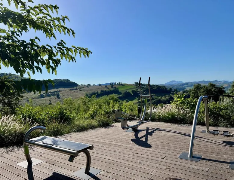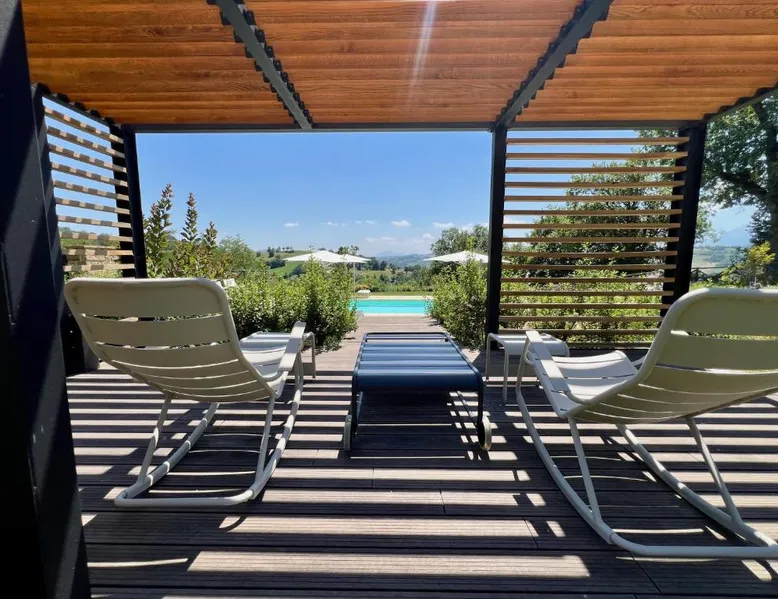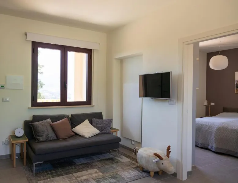Elegant Accommodations: Agriturismo Colpo di Fortuna in Gualdo offers an adults-only apartment with a swimming pool with a view, fitness center, sun terrace, and garden. Free WiFi is available throughout the property. Comfortable Amenities: The apartment features air-conditioning, a terrace, balcony, and private bathroom with a walk-in shower. Additional amenities include a fully equipped kitchen, washing machine, and streaming services. Outdoor Activities: Guests can enjoy skiing and cycling nearby. The property provides free on-site private parking, electric vehicle charging, and bicycle hire. Prime Location: Located 64 mi from Perugia San Francesco d'Assisi Airport, the apartment offers scenic views and easy access to local attractions. Highly rated for its location and facilities. Featuring a balcony with mountain views, this apartment includes a flat-screen TV, a seating area complete with design furnishing, sofa and fully equipped kitchen with a coffee machine and dishwasher. Fan present and mobile airco at request (according to airco policy).