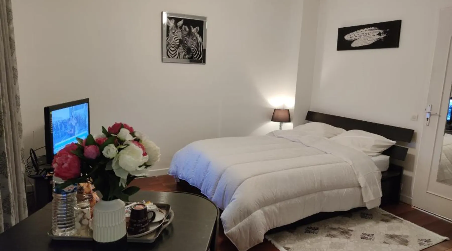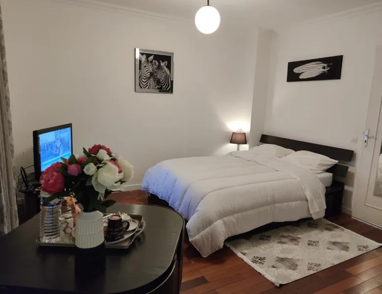 Comfortable Living Space: Appartement tout équipé au calme in Montfermeil offers a one-bedroom apartment with a private entrance. The property features parquet floors, a dining area, and a fully equipped kitchen with a refrigerator, microwave, stovetop, and coffee machine. Modern Amenities: Guests enjoy free WiFi and free parking. The apartment includes a TV, soundproofing, and a hairdryer. Additional amenities include a dining table, electric kettle, kitchenware, and free toiletries. Convenient Location: Located 8.7 mi from Paris Charles de Gaulle Airport, the apartment is near Gare de l'Est (11 mi), Stade de France (11 mi), and La Cigale Concert Hall (11 mi). An ice-skating rink is also in the vicinity. Featuring a private entrance, this apartment consists of a kitchen, 1 bedroom and 1 bathroom with a shower and a hairdryer. The well-fitted kitchen features a stovetop, a refrigerator, kitchenware and a microwave. The apartment provides soundproof walls, a tea and coffee maker, a dining area, a flat-screen TV with cable channels, as well as garden views. The unit offers 1 bed.