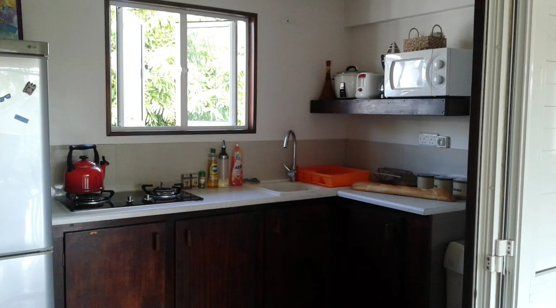There is a mistake in the situation of the house. We are in Mon Choisy. Very close to the sea. No roads to cross to access the beach. Grande Terrasse. The space These is an error in the location. The house is very close to the private beach, where you can swim in clear the blue lagoon. Guest access Our bungalow is situated in a gated yard with 3 bungalows. Other things to note The GPS point in the description is wrong. Search for Beach villa is next door! PLAN RENTAL: 20 01'18S 57 33'10E