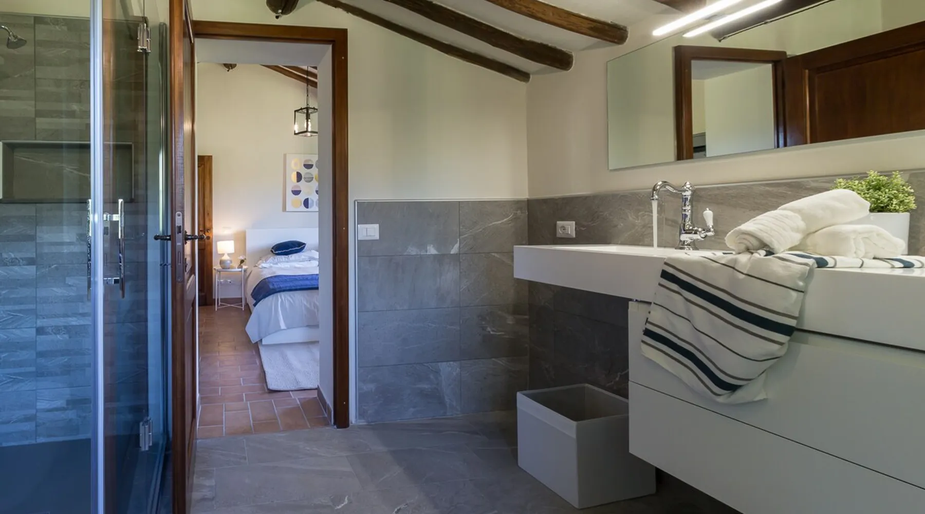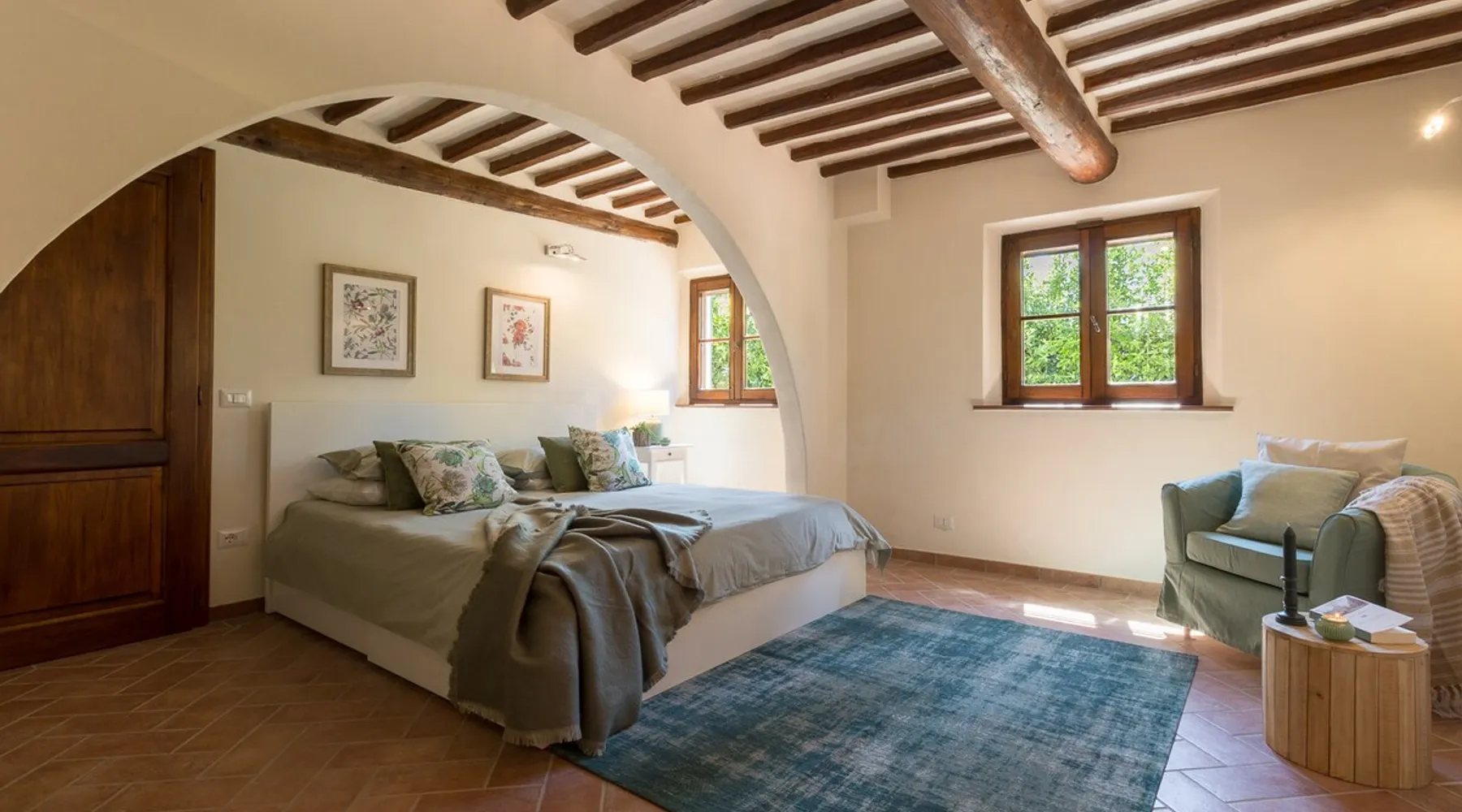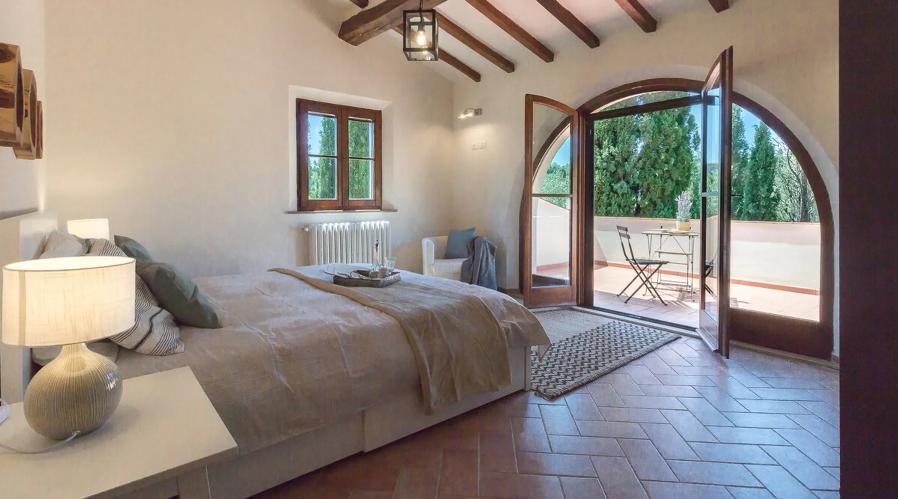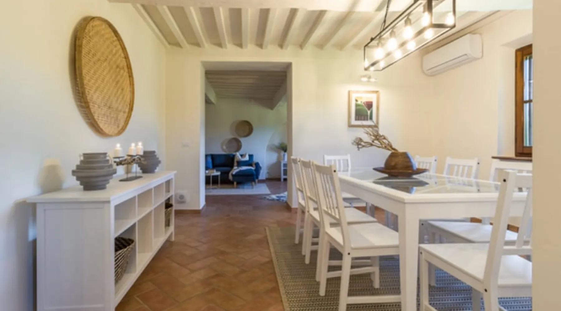 Villa Sogni D’Oro, is a restored Italian farm house located walking distance from the ancient village of Montepulciano. The home is traditionally furnished with modern Tuscan amenities. Fully renovated in 2020, including 2 kitchens & 7 bathrooms, this 3 level farmhouse is the perfect gathering place. Walk through the surrounding vineyards, drive 1.5 hours to Florence, 30 mins to hot springs and just minutes from surrounding quaint villages. Laundry on premise. Great hot water and pressure! The space Villa Sogni D’Oro, in Sienna province, Tuscany, is the ideal place to further your Under the Tuscan Sun fantasies. The property overlooks breathtaking views of a rolling vineyard and the ancient walled city of Montepulciano. The recently renovated three-level farmhouse is meticulously decorated in a modern Tuscan style and is the ideal vacation home for those desiring to have a more authentic Tuscan experience. The Villa is just outside the ancient walls of the town, the backyard patio looking across a vineyard to Montepulciano as it rises on the mountaintop. There is a large front lawn suitable for gaming, sitting, meditating, and of course, drinking wine amongst the olive trees that bedeck the property. Registration Details IT052015C2ZAAZLAEZ