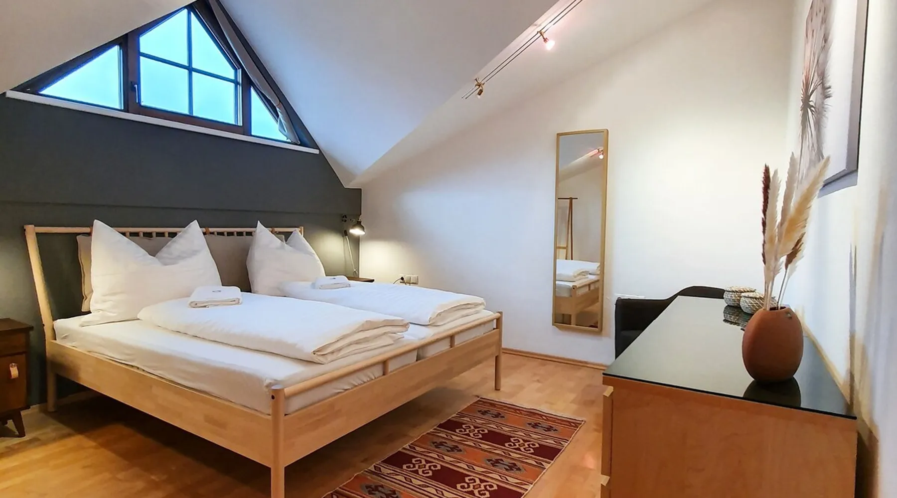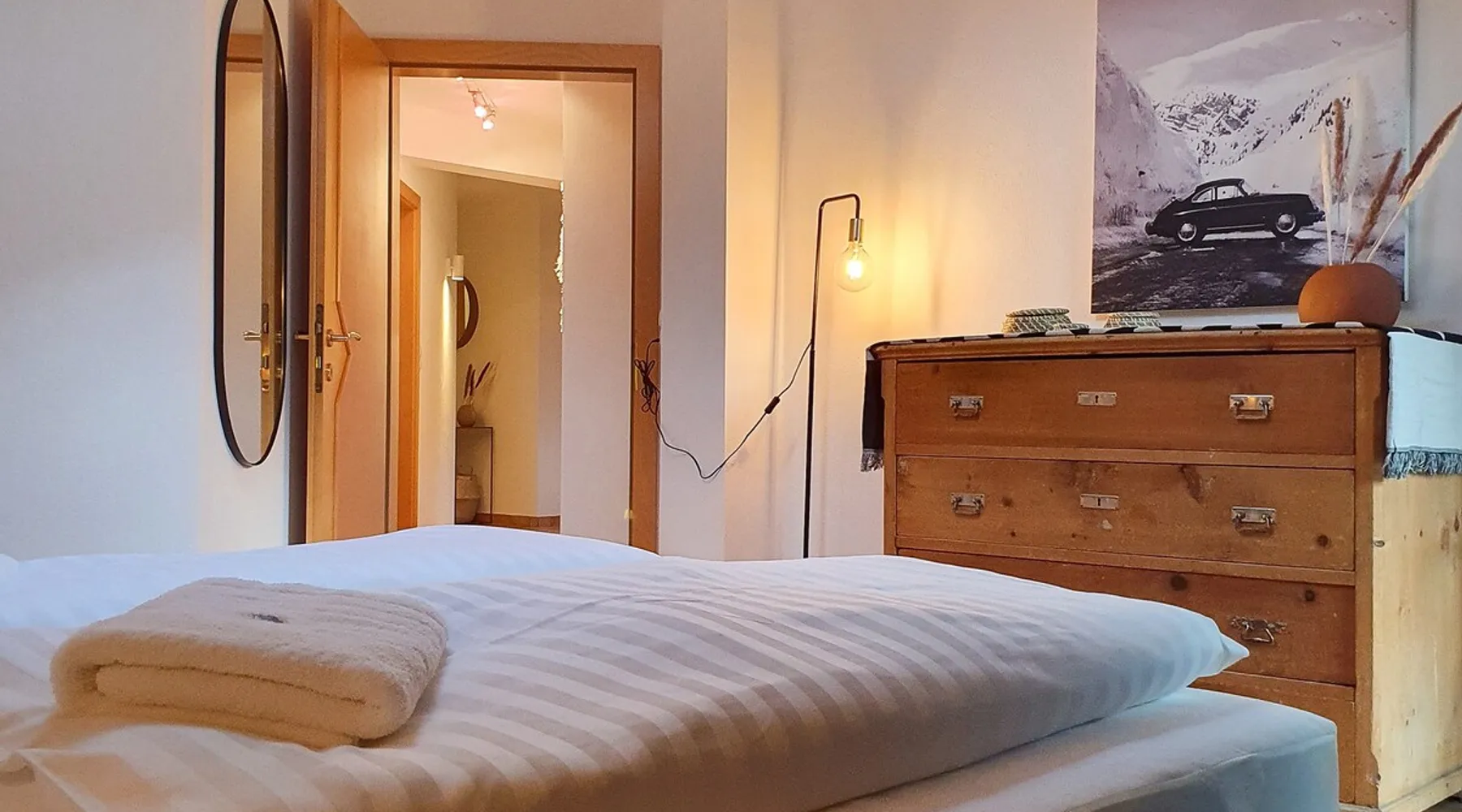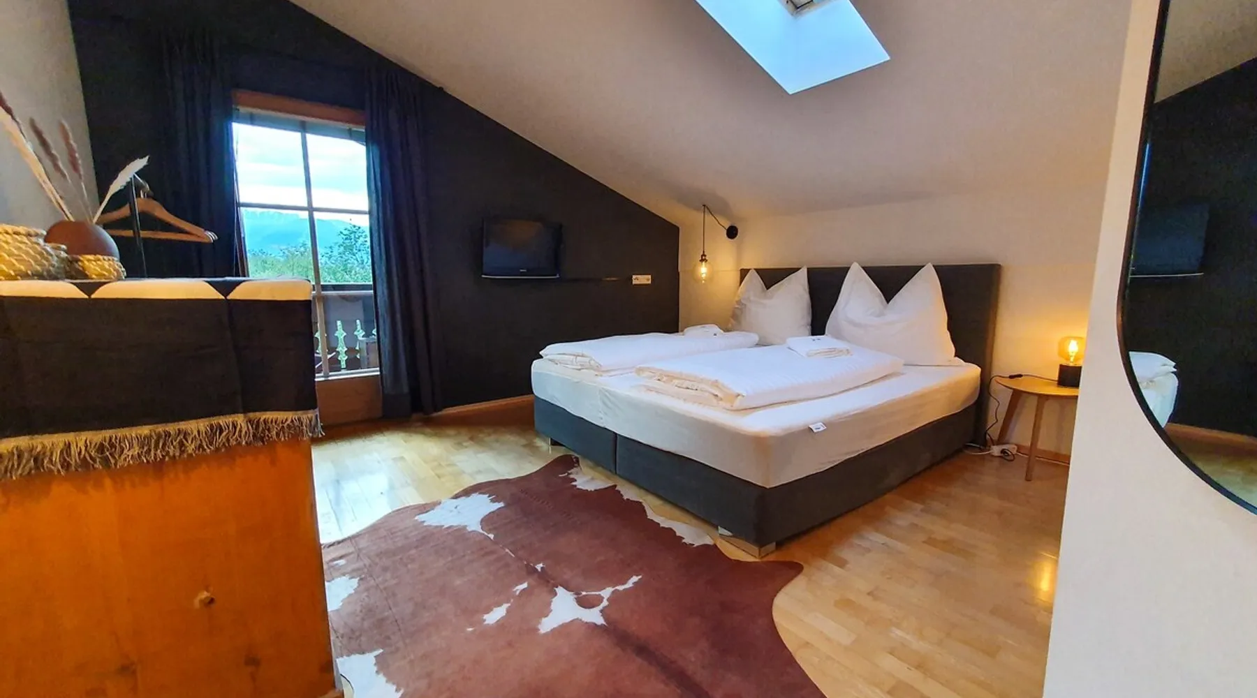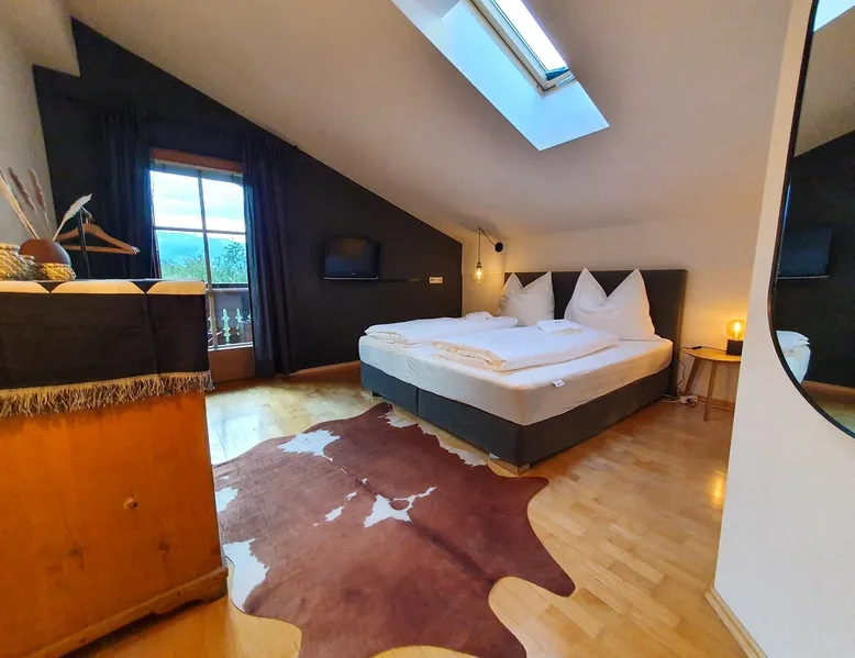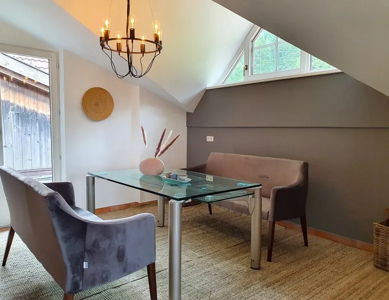 "The Lovingly designed 4-room Supreme Suite is located in the Gruberwirt Apartment House, a traditional Tyrolean house in Götzens near Innsbruck. The suite features a fully equipped private kitchen, 3 bedrooms with 2 double beds and 2 single beds, a living and relaxation area with views of the Tyrolean mountains. The accommodation is accessible via digital locks and offers free Wi-Fi and complimentary parking right in front of the house." The space The accommodation The 128m2 Deluxe Suite has 3 bedrooms with 2 double beds and 2 single beds, en-suite bathroom with bath and massage shower, separate WC, fully equipped private kitchen, dining area for six people and numerous windows that allow plenty of natural light. All Gruberwirt Apartments have free Wi-Fi ideal for working on the go, and a flat-screen TV with international channels. The suite can accommodate up to 6 people. Guest access Contactless technology and cleaning protocols according to who recommendations, including: - Digital key system for self-check-in and check-out - Professional cleaning according to the most demanding hotel standards (ask for our enhanced hygiene and health standards) Other things to note "The apartments are arranged on two levels. Gruberwirt Lodge is located in the western foothills, a suburb of Innsbruck. All apartments have been completely renovated and are equipped with new kitchens and stylish, modern furniture. Free parking, Wi-Fi, and 24/7 check-in with a key code system are available. There is excellent public transportation to Innsbruck and the Axamer Lizum ski resort. The ski resorts Muttereralm and the Nockspitzbahn Götzens are in close proximity. It's the perfect way to combine nature and city life."