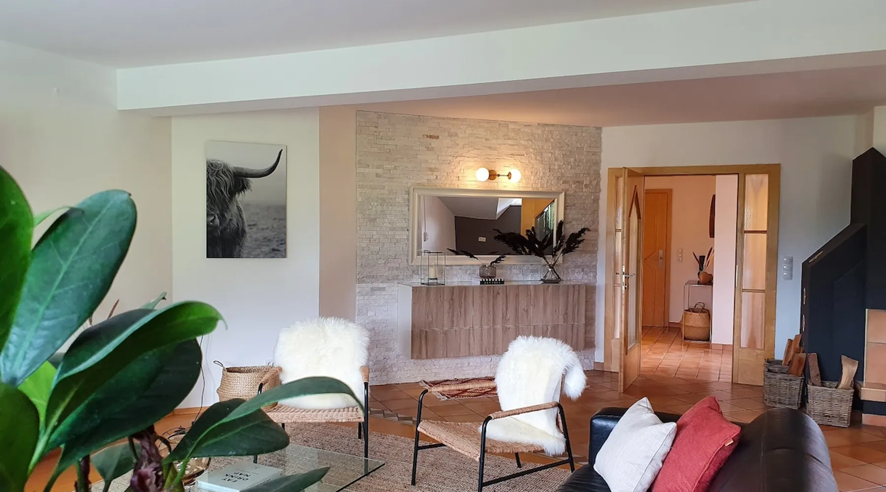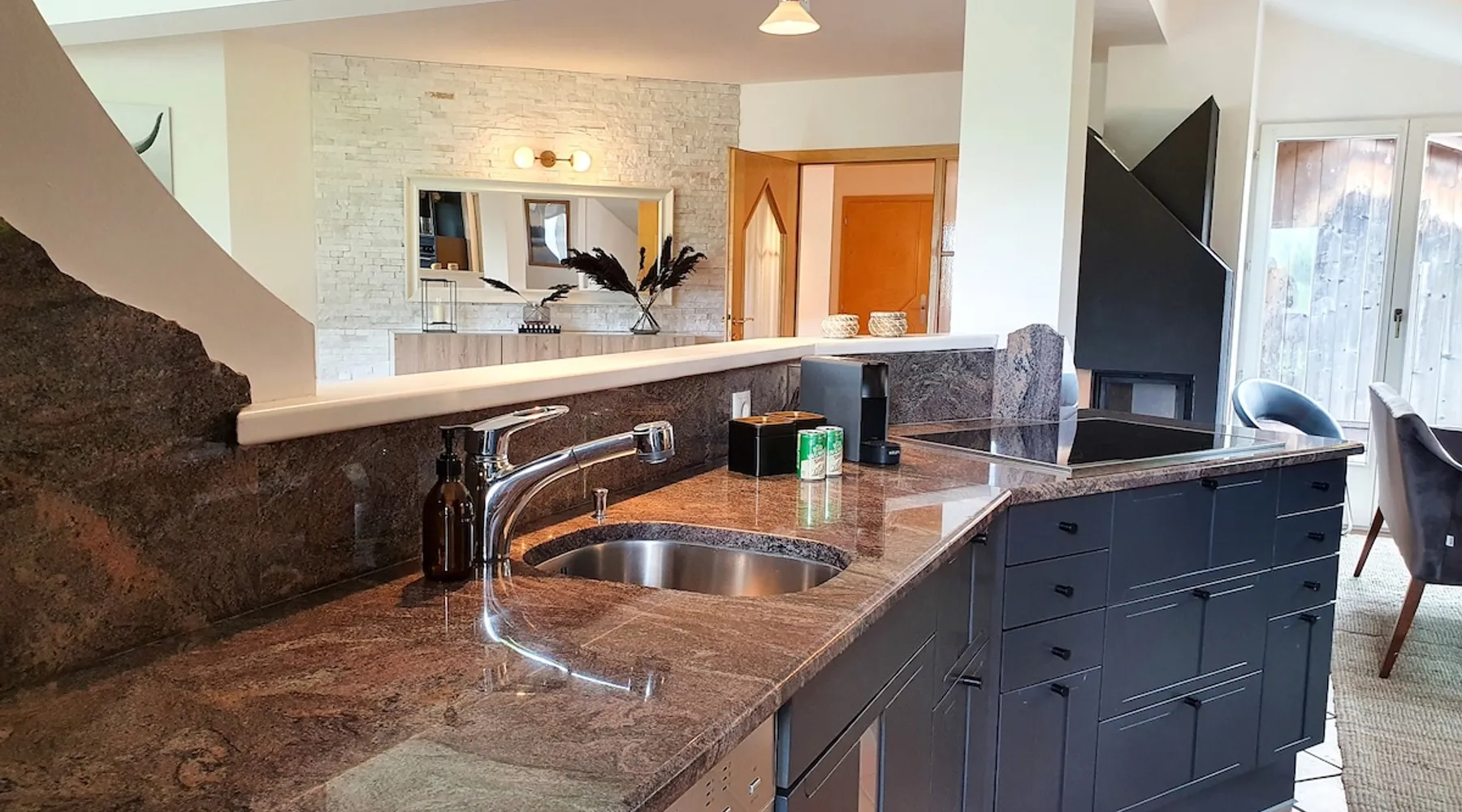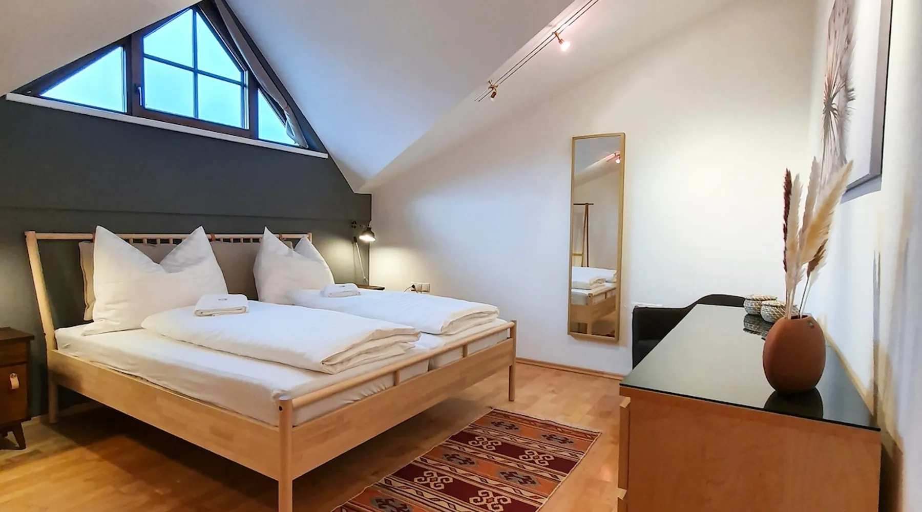 "The Lovingly designed 4-room Supreme Suite is located in the Gruberwirt Apartment House, a traditional Tyrolean house in Götzens near Innsbruck. The suite features a fully equipped private kitchen, 3 bedrooms with 2 double beds and 2 single beds, a living and relaxation area with views of the Tyrolean mountains. The accommodation is accessible via digital locks and offers free Wi-Fi and complimentary parking right in front of the house." The space The accommodation The 128m2 Deluxe Suite has 3 bedrooms with 2 double beds and 2 single beds, en-suite bathroom with bath and massage shower, separate WC, fully equipped private kitchen, dining area for six people and numerous windows that allow plenty of natural light. All Gruberwirt Apartments have free Wi-Fi ideal for working on the go, and a flat-screen TV with international channels. The suite can accommodate up to 6 people. Guest access Contactless technology and cleaning protocols according to who recommendations, including: - Digital key system for self-check-in and check-out - Professional cleaning according to the most demanding hotel standards (ask for our enhanced hygiene and health standards) Other things to note "The apartments are arranged on two levels. Gruberwirt Lodge is located in the western foothills, a suburb of Innsbruck. All apartments have been completely renovated and are equipped with new kitchens and stylish, modern furniture. Free parking, Wi-Fi, and 24/7 check-in with a key code system are available. There is excellent public transportation to Innsbruck and the Axamer Lizum ski resort. The ski resorts Muttereralm and the Nockspitzbahn Götzens are in close proximity. It's the perfect way to combine nature and city life."