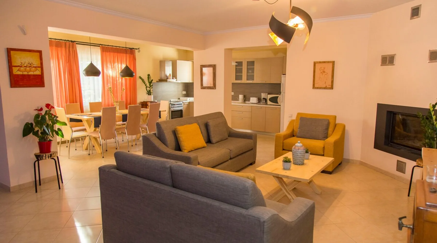 In Nafplio, in the municipal apartment of Nea Tiryns, opposite the picturesque chapel of Agios Spyridonas, in an estate of orange trees, is the ground floor apartment of 160 sq.m. of a two-storey house surrounded by a beautiful garden & a guarded parking space. It consists of three spacious bedrooms overlooking the lush garden. One of the bedrooms has its own independent fully equipped bathroom and the main bathroom serves the needs of the rest of the residence. The space In Nafplio in the Municipal Apartment of Nea Tirinthas opposite the picturesque chapel of Agios Spyridon inside an orange estate is the ground floor apartment 160 m2 of a two-story house surrounded by a beautiful garden & guarded parking space. It consists of three spacious bedrooms overlooking the lush garden. One of the bedrooms has its own independent fully equipped bathroom and the main bathroom serves the needs of the rest of the house. The two rooms have double beds and the third 2 single. In the big living room we have an extra sofa with the possibility to turn into a double bed. The kitchen is spacious and fully equipped with all necessary household appliances. Eight guests can comfortably dine in the large wooden dining area of the kitchen. We have a new living room with a three-seater, two-seater couch and a large lounge chair next to the energy fireplace and the great smart tv. The apartment also has a small gym. It is ideal for a couple & family with children. The house is located 5 km from Nafplio & 9 km from Tolo, and can be your base for the most beautiful beaches of the prefecture and archaeological sites in Ancient Tiryns (20 minutes walking 2.5 km), Epidaurus and Mycenae. Access to the apartment is step-free and you can take advantage of the house garden (BBQ, Wood-burning oven, Organic Cabin) Enjoy sunset on the deck, a picnic in the garden, or relax to watch TV, or use fast WiFi to navigate the internet. In Nafplion, in the municipal district of Nea Tiryntha, close to the picturesque church of Agios Spyridonas, among orange trees is the 160 m2 ground floor apartment of a 2-storey house surrounded by a beautiful garden and guarded parking area. It consists of three spacious bedrooms overlooking a big garden. One of the bedrooms has its own independent fully equipped bathroom and the main bathroom serves the needs of the rest of the house. The two bedrooms have double beds, while the third has two single beds. In the large living room area there is an extra sofa that can be converted into a double bed. The kitchen is spacious and fully equipped with all the necessary home appliances. 8 guests can comfortably dine in the large wooden dining table of the kitchen. The living room contains 2 sofas and a large armchair next to the fireplace and the big smart TV. The apartment also has a small gym. It is ideal for couples and families with children. The residence is located 5 km from Nafplion and 9 km from Tolo, and it can become your base for the most beautiful beaches and archeological sites of the district (Ancient Tiryns -20 minutes on foot- 2.5 km), Epidavros and Mycenae. The apartment is easily accessible (no stairs) and in the garden of the house there is barbecue, wood-fired oven, and organic vegetable garden. Enjoy the sunset, chill in the veranda or rest and watch TV/take advantage of the fast WiFi connection to browse the internet. Registration Details 00000733923