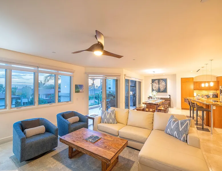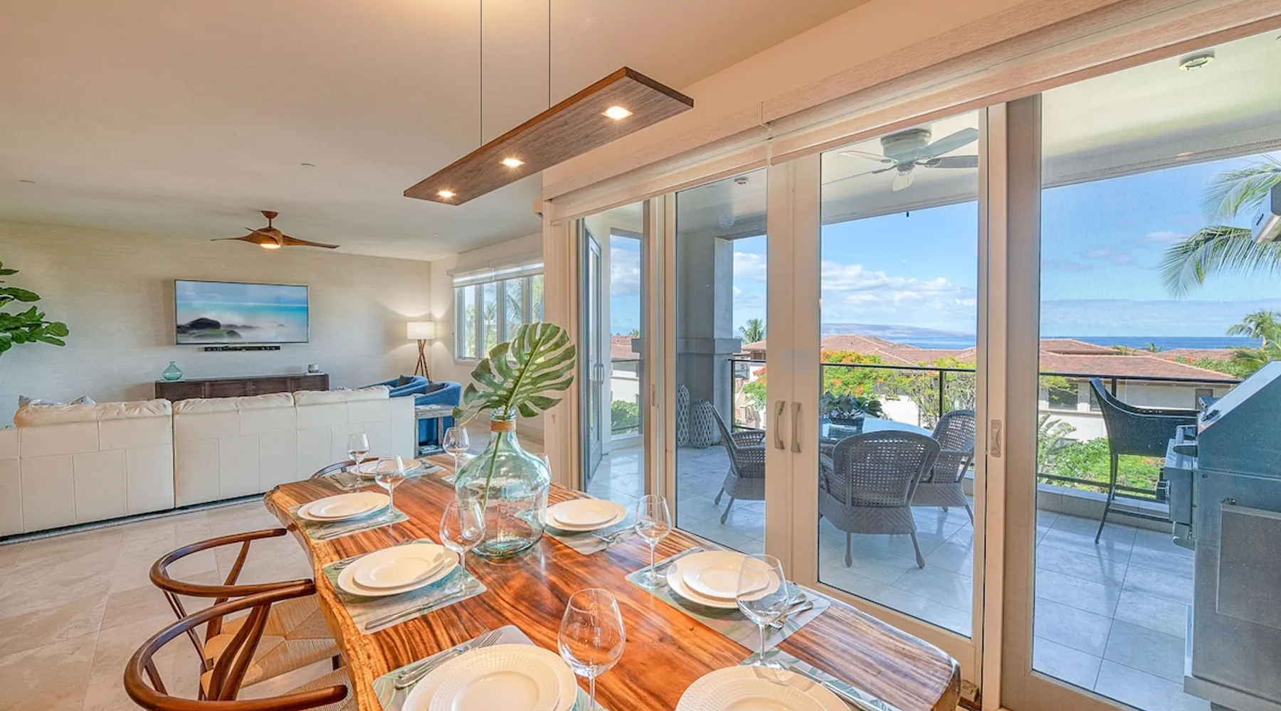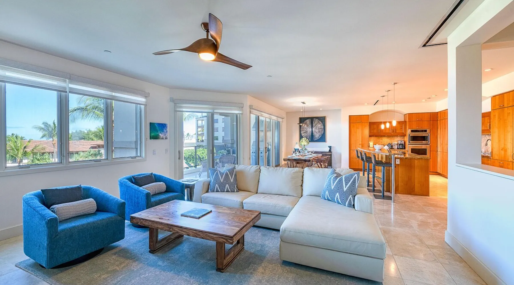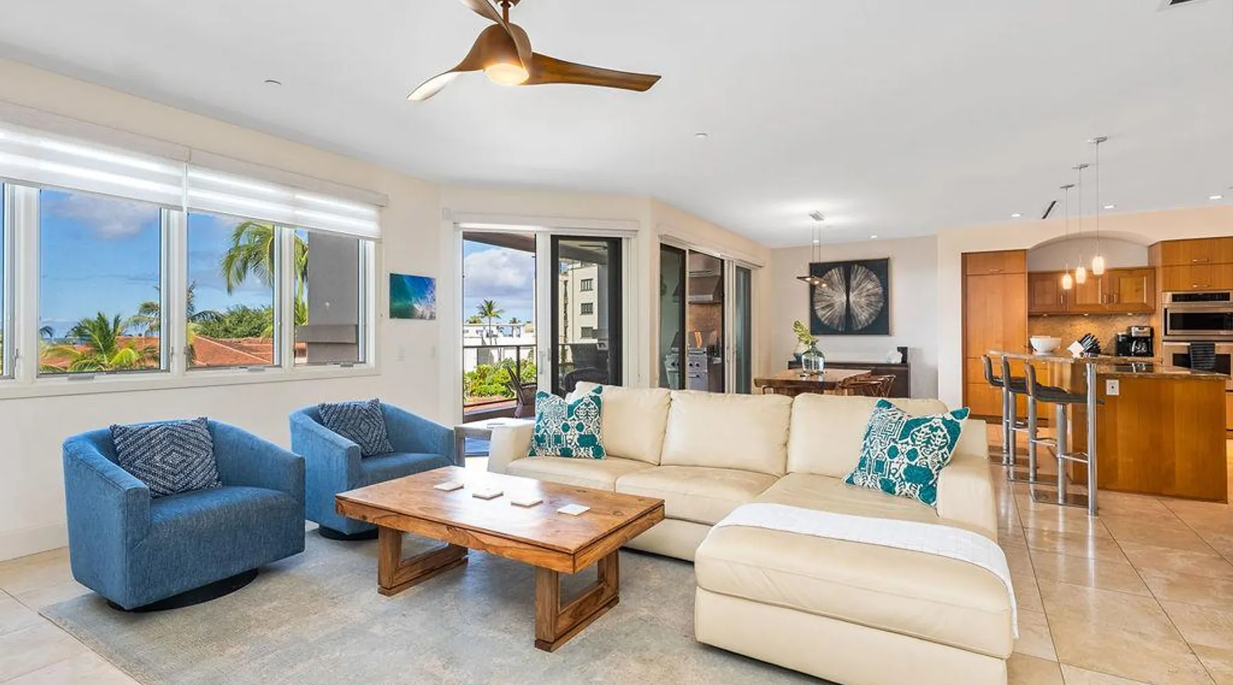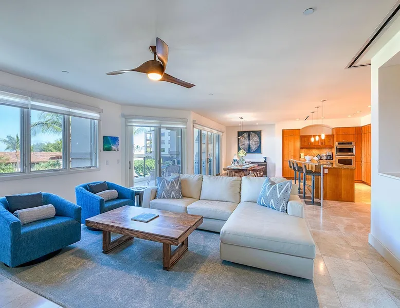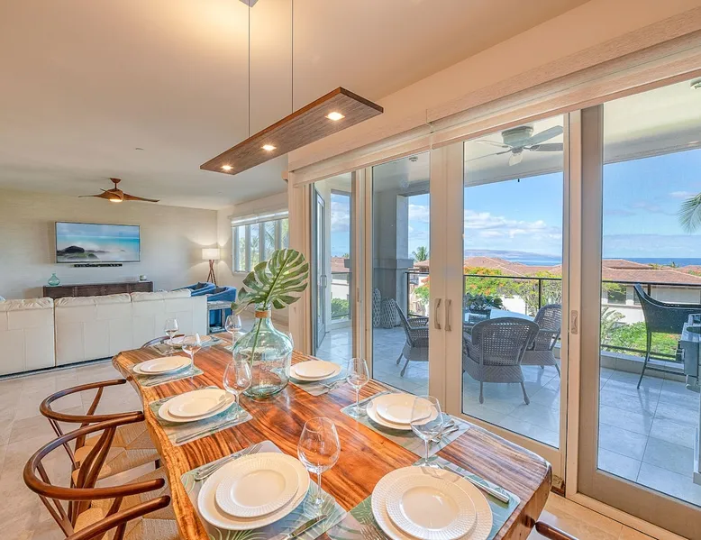 Hawaii Life Rentals Presents Wailea Beach Villas Penthouse 206 Located in South Maui’s luxury resort town of Wailea, this penthouse villa is situated on one of Hawaii's most beautiful sprawling golden sandy beaches. The space Wailea Beach Villas is simply the best of the best! Enter the community through the 24hr private guarded gate & drive down to the complimentary self parking in the indoor garage. Check-in and receive your key card from the lobby you'll be able to access your own elevator to your villa and enjoy cool comfort as you arrive at the elegant 2,000 sq ft penthouse with central A/C. 9 foot ceilings, open floor plan, travertine flooring and large sliding glass doors make for a bright and airy interior that is tastefully furnished. 2 spacious bedrooms, a den with a fold out couch and 2 full baths, it can comfortably accommodate up to 6 guests. European gourmet kitchen features top of the line stainless steel appliances including a glass ceramic top stove, convection oven and microwave, as well as large refrigerator/freezer and dishwasher, granite countertops and all of the small appliances you will need for those times when you prefer dining in. Kitchen is fully stocked with all kitchen utensils for preparing your own meals to enjoy at the dining table or out on the spacious 376 square foot private covered lanai with built-in Viking grill and seating for 6. Living room offers a plush and comfortable couch, large flat screen TV, DVD player with digital cable box and MP3/iPod player as well as a small office space with complimentary high speed WI-FI. The master bedroom features a king size bed, flat screen TV, generous dresser and closet space, dual bedside tables, a standing full length mirror and black out blinds. The en-suite master bathroom has a deep soaking tub, separate glass shower with seating, double vanity with granite counter tops and custom cabinetry and a private water closet. The large walk-in closet is stocked with hangers, extra pillows, blankets and down duvet, 100% cotton waffle weave bath robes and luxurious toiletries. Make up mirror, hairdryer, scale and security safe are also provided. Second bedroom includes 2 twin beds (can be made into one king size bed upon request) with close access to full bathroom including a tub/shower combination and double vanity. Signature amenities include bathrobes, luxurious plush bath towels and personal cleansing products. *We are using enhanced cleaning protocols and rigorous cleaning standards in our units which include; allowing more time for cleaners to utilize our enhanced room by room cleaning checklist, sanitizing high touch surfaces, using disinfecting cleaning products approved by health experts, washing all linens at a high heat setting, and more. Luxury Services Include: - Personalized Concierge Services - Activities Recommendations - One complimentary mid-stay clean for stays of 7 nights or more - Complimentary Self Parking (1 Parking Stall) Additional luxuries include: - Tommy Bahama Beach Chairs - Plush Beach Towels - Coffee Station with complimentary coffee, tea, sugar and creamer - Welcome amenities - Luxurious toiletries like shampoo, conditioner and body wash Full Concierge services available. TA-141-216-5632-01 Rates do not include taxes, cleaning and applicable fees. Registration Details 210080910018, TA-141-216-5632-01