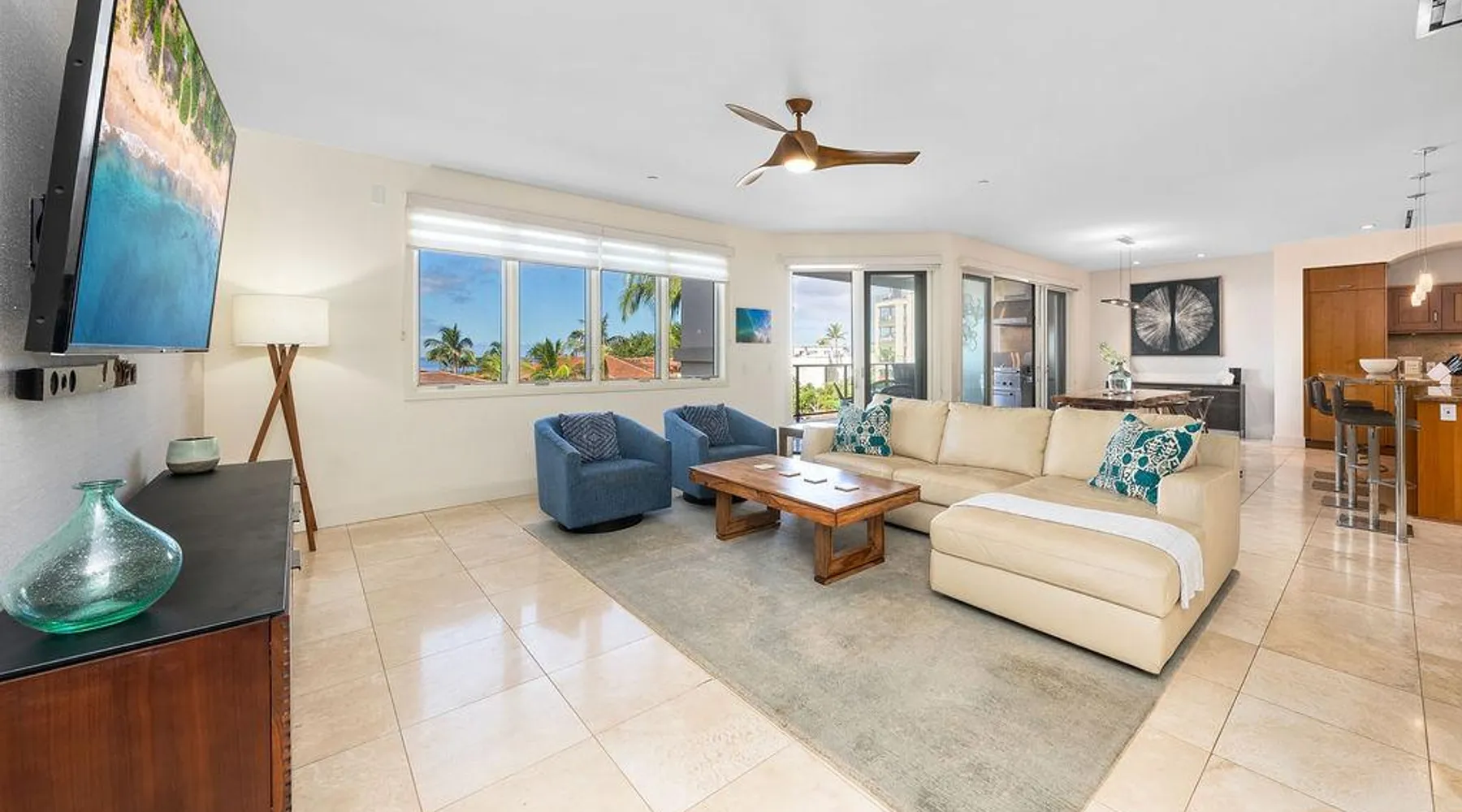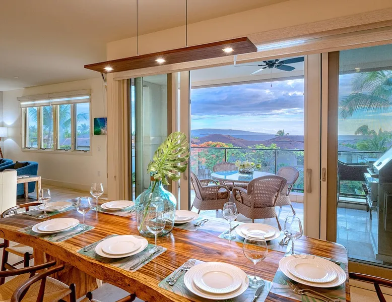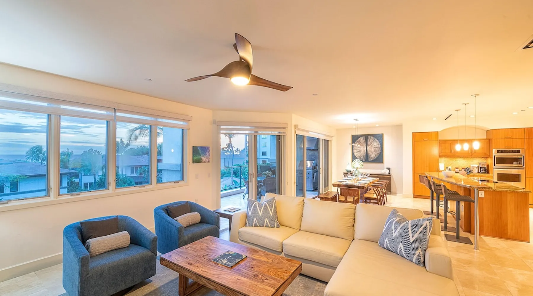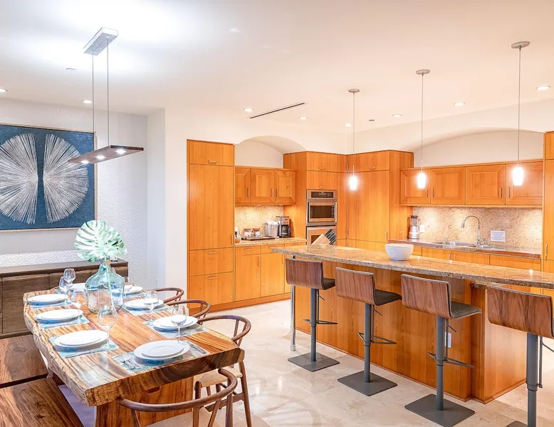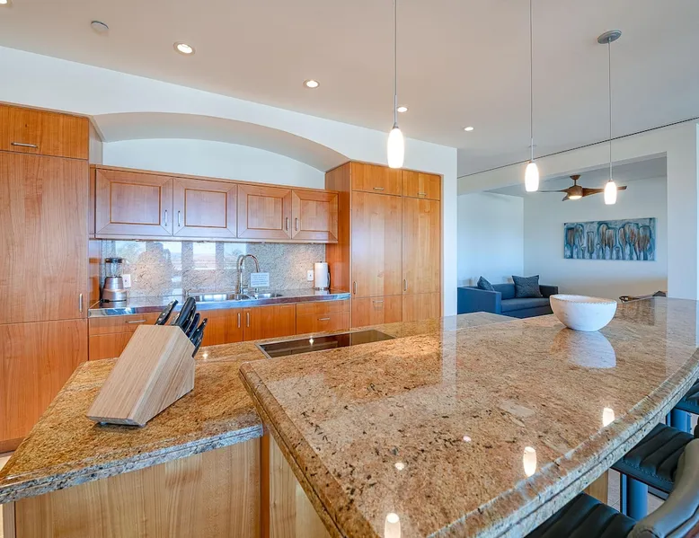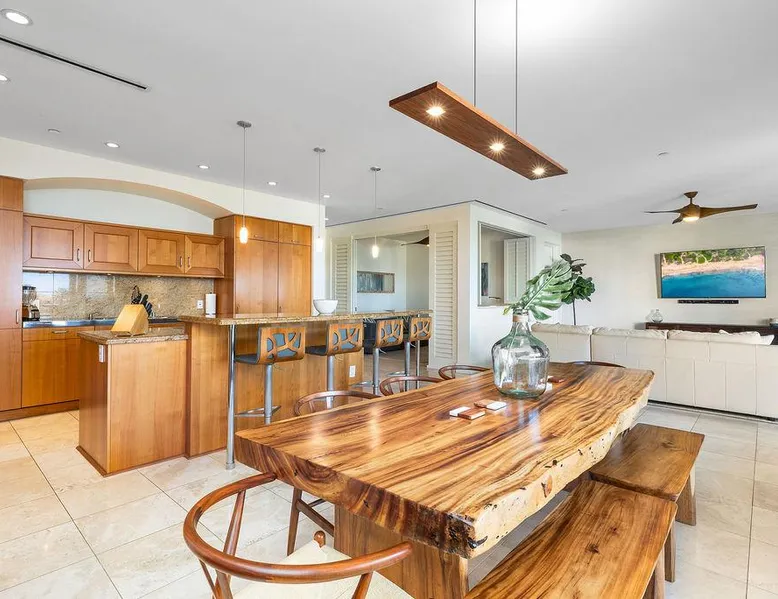 Hawaii Life Rentals Presents Wailea Beach Villas Penthouse 206 Located in South Maui’s luxury resort town of Wailea, this penthouse villa is situated on one of Hawaii's most beautiful sprawling golden sandy beaches. The space Wailea Beach Villas is simply the best of the best! Enter the community through the 24hr private guarded gate & drive down to the complimentary self parking in the indoor garage. Check-in and receive your key card from the lobby you'll be able to access your own elevator to your villa and enjoy cool comfort as you arrive at the elegant 2,000 sq ft penthouse with central A/C. 9 foot ceilings, open floor plan, travertine flooring and large sliding glass doors make for a bright and airy interior that is tastefully furnished. 2 spacious bedrooms, a den with a fold out couch and 2 full baths, it can comfortably accommodate up to 6 guests. European gourmet kitchen features top of the line stainless steel appliances including a glass ceramic top stove, convection oven and microwave, as well as large refrigerator/freezer and dishwasher, granite countertops and all of the small appliances you will need for those times when you prefer dining in. Kitchen is fully stocked with all kitchen utensils for preparing your own meals to enjoy at the dining table or out on the spacious 376 square foot private covered lanai with built-in Viking grill and seating for 6. Living room offers a plush and comfortable couch, large flat screen TV, DVD player with digital cable box and MP3/iPod player as well as a small office space with complimentary high speed WI-FI. The master bedroom features a king size bed, flat screen TV, generous dresser and closet space, dual bedside tables, a standing full length mirror and black out blinds. The en-suite master bathroom has a deep soaking tub, separate glass shower with seating, double vanity with granite counter tops and custom cabinetry and a private water closet. The large walk-in closet is stocked with hangers, extra pillows, blankets and down duvet, 100% cotton waffle weave bath robes and luxurious toiletries. Make up mirror, hairdryer, scale and security safe are also provided. Second bedroom includes 2 twin beds (can be made into one king size bed upon request) with close access to full bathroom including a tub/shower combination and double vanity. Signature amenities include bathrobes, luxurious plush bath towels and personal cleansing products. *We are using enhanced cleaning protocols and rigorous cleaning standards in our units which include; allowing more time for cleaners to utilize our enhanced room by room cleaning checklist, sanitizing high touch surfaces, using disinfecting cleaning products approved by health experts, washing all linens at a high heat setting, and more. Luxury Services Include: - Personalized Concierge Services - Activities Recommendations - One complimentary mid-stay clean for stays of 7 nights or more - Complimentary Self Parking (1 Parking Stall) Additional luxuries include: - Tommy Bahama Beach Chairs - Plush Beach Towels - Coffee Station with complimentary coffee, tea, sugar and creamer - Welcome amenities - Luxurious toiletries like shampoo, conditioner and body wash Full Concierge services available. TA-141-216-5632-01 Rates do not include taxes, cleaning and applicable fees. Registration Details 210080910018, TA-141-216-5632-01