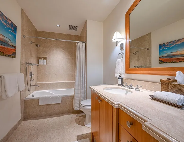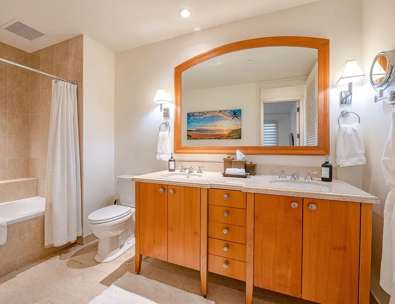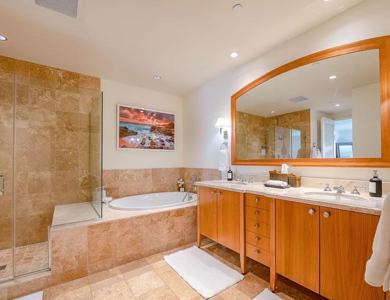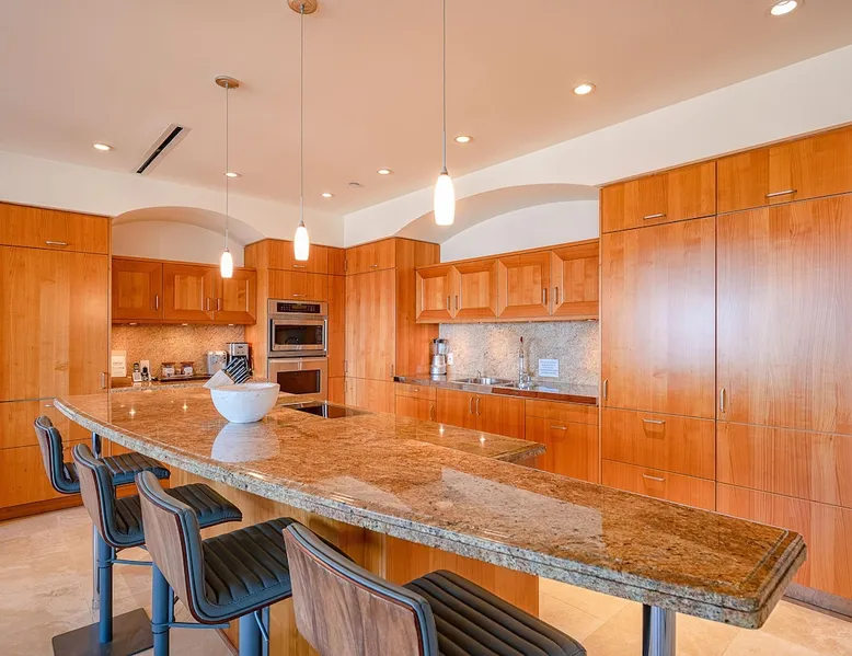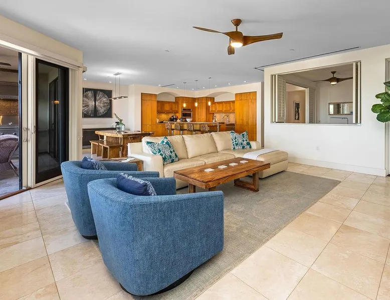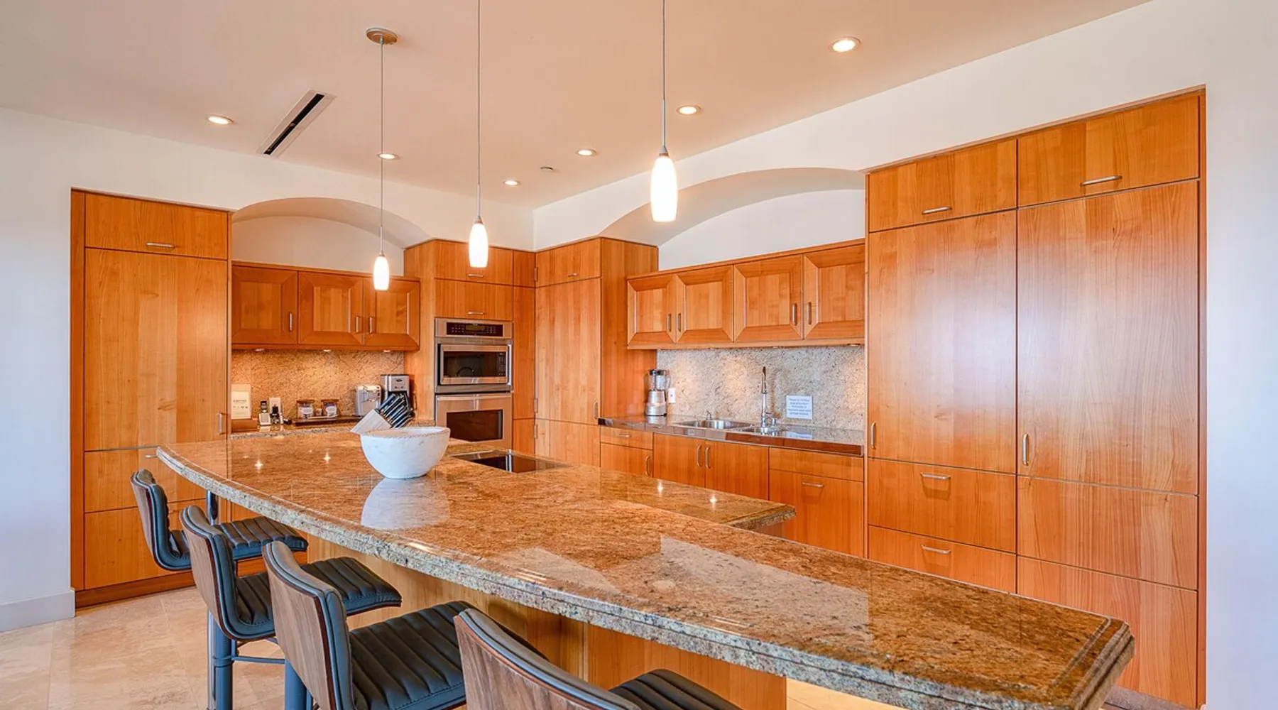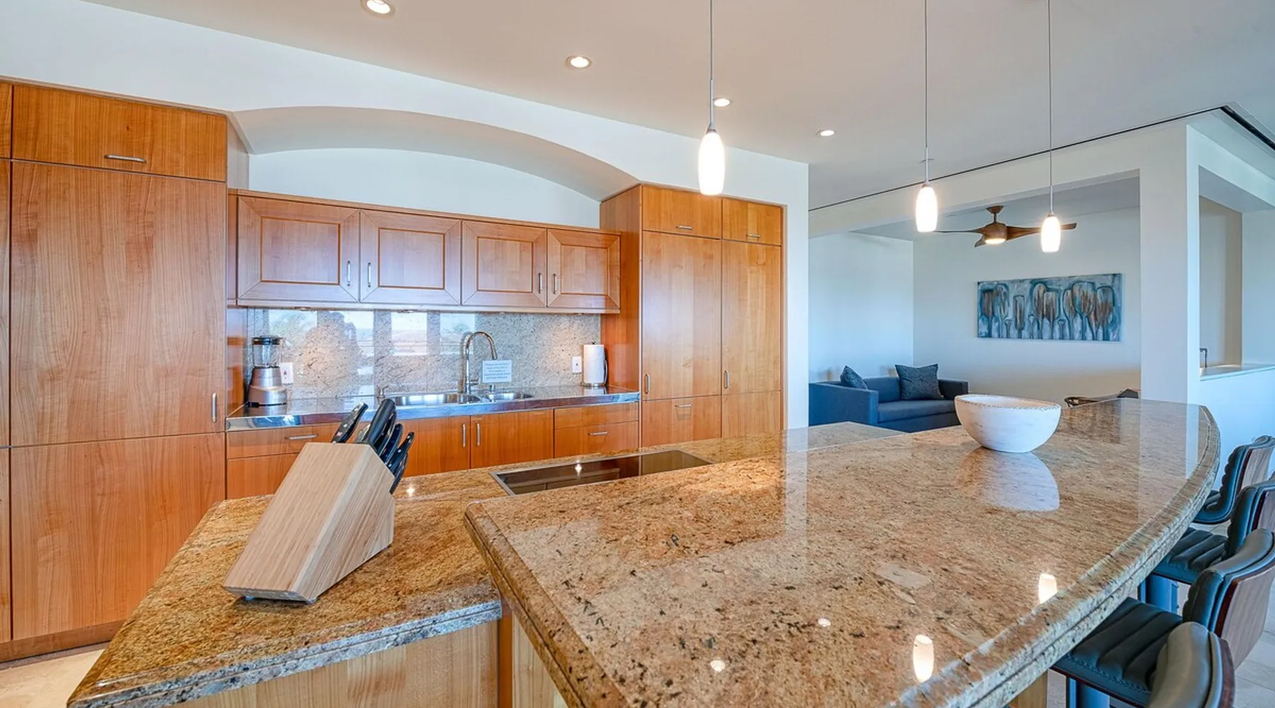 Hawaii Life Rentals Presents Wailea Beach Villas Penthouse 206 Located in South Maui’s luxury resort town of Wailea, this penthouse villa is situated on one of Hawaii's most beautiful sprawling golden sandy beaches. The space Wailea Beach Villas is simply the best of the best! Enter the community through the 24hr private guarded gate & drive down to the complimentary self parking in the indoor garage. Check-in and receive your key card from the lobby you'll be able to access your own elevator to your villa and enjoy cool comfort as you arrive at the elegant 2,000 sq ft penthouse with central A/C. 9 foot ceilings, open floor plan, travertine flooring and large sliding glass doors make for a bright and airy interior that is tastefully furnished. 2 spacious bedrooms, a den with a fold out couch and 2 full baths, it can comfortably accommodate up to 6 guests. European gourmet kitchen features top of the line stainless steel appliances including a glass ceramic top stove, convection oven and microwave, as well as large refrigerator/freezer and dishwasher, granite countertops and all of the small appliances you will need for those times when you prefer dining in. Kitchen is fully stocked with all kitchen utensils for preparing your own meals to enjoy at the dining table or out on the spacious 376 square foot private covered lanai with built-in Viking grill and seating for 6. Living room offers a plush and comfortable couch, large flat screen TV, DVD player with digital cable box and MP3/iPod player as well as a small office space with complimentary high speed WI-FI. The master bedroom features a king size bed, flat screen TV, generous dresser and closet space, dual bedside tables, a standing full length mirror and black out blinds. The en-suite master bathroom has a deep soaking tub, separate glass shower with seating, double vanity with granite counter tops and custom cabinetry and a private water closet. The large walk-in closet is stocked with hangers, extra pillows, blankets and down duvet, 100% cotton waffle weave bath robes and luxurious toiletries. Make up mirror, hairdryer, scale and security safe are also provided. Second bedroom includes 2 twin beds (can be made into one king size bed upon request) with close access to full bathroom including a tub/shower combination and double vanity. Signature amenities include bathrobes, luxurious plush bath towels and personal cleansing products. *We are using enhanced cleaning protocols and rigorous cleaning standards in our units which include; allowing more time for cleaners to utilize our enhanced room by room cleaning checklist, sanitizing high touch surfaces, using disinfecting cleaning products approved by health experts, washing all linens at a high heat setting, and more. Luxury Services Include: - Personalized Concierge Services - Activities Recommendations - One complimentary mid-stay clean for stays of 7 nights or more - Complimentary Self Parking (1 Parking Stall) Additional luxuries include: - Tommy Bahama Beach Chairs - Plush Beach Towels - Coffee Station with complimentary coffee, tea, sugar and creamer - Welcome amenities - Luxurious toiletries like shampoo, conditioner and body wash Full Concierge services available. TA-141-216-5632-01 Rates do not include taxes, cleaning and applicable fees. Registration Details 210080910018, TA-141-216-5632-01