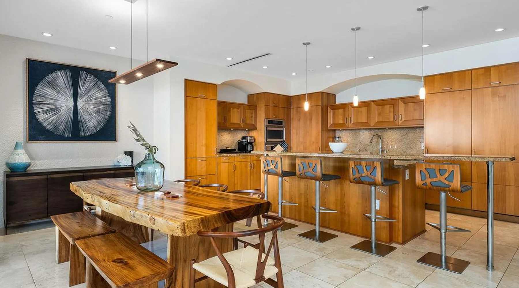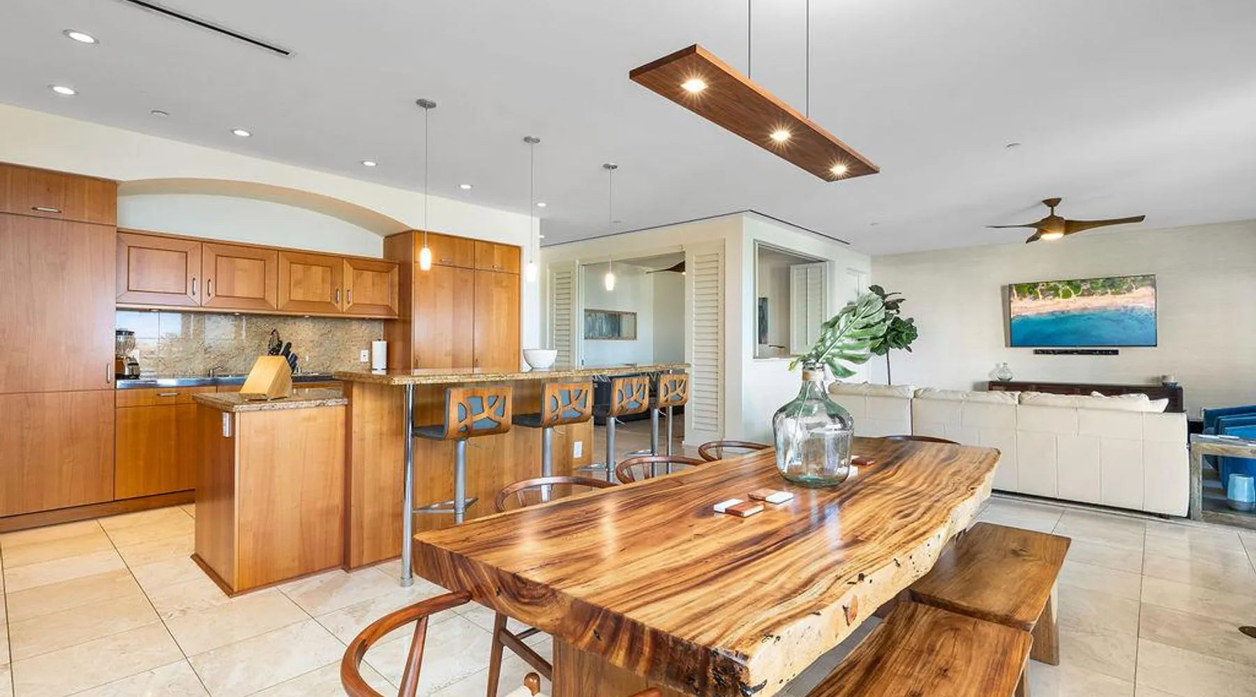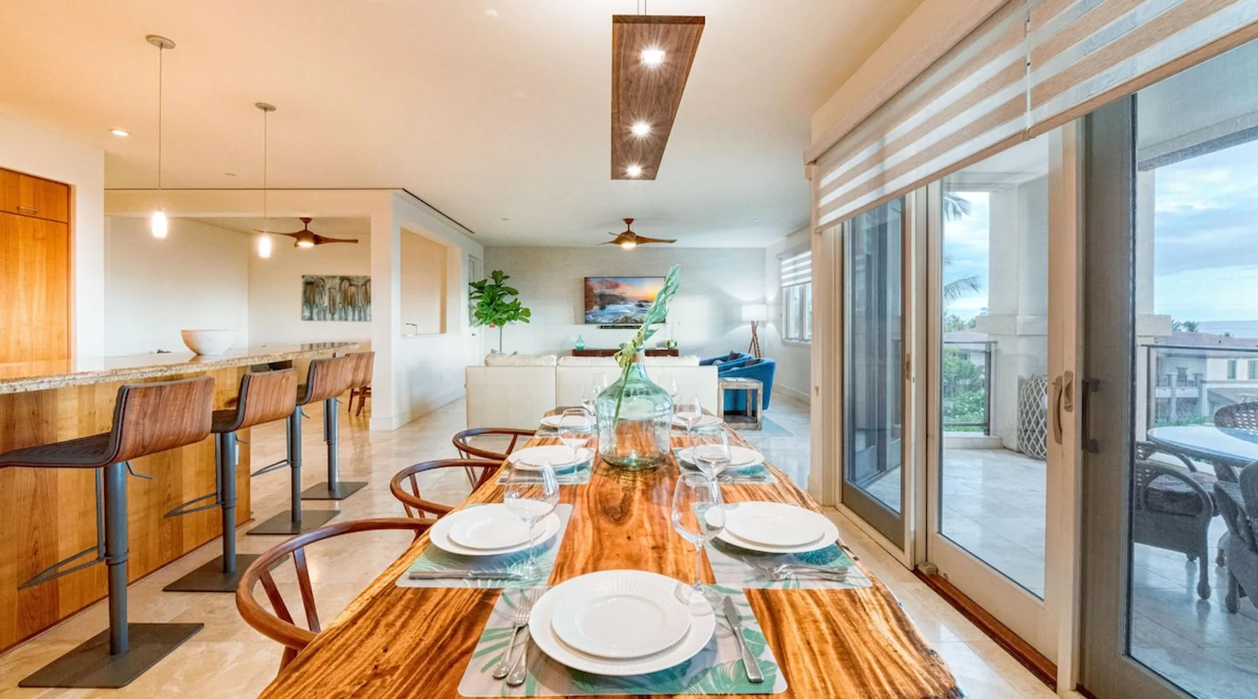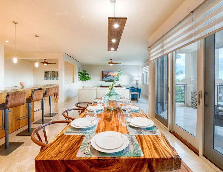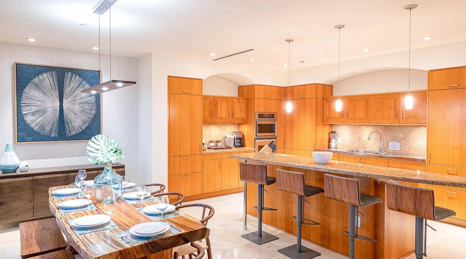 Hawaii Life Rentals Presents Wailea Beach Villas Penthouse 206 Located in South Maui’s luxury resort town of Wailea, this penthouse villa is situated on one of Hawaii's most beautiful sprawling golden sandy beaches. The space Wailea Beach Villas is simply the best of the best! Enter the community through the 24hr private guarded gate & drive down to the complimentary self parking in the indoor garage. Check-in and receive your key card from the lobby you'll be able to access your own elevator to your villa and enjoy cool comfort as you arrive at the elegant 2,000 sq ft penthouse with central A/C. 9 foot ceilings, open floor plan, travertine flooring and large sliding glass doors make for a bright and airy interior that is tastefully furnished. 2 spacious bedrooms, a den with a fold out couch and 2 full baths, it can comfortably accommodate up to 6 guests. European gourmet kitchen features top of the line stainless steel appliances including a glass ceramic top stove, convection oven and microwave, as well as large refrigerator/freezer and dishwasher, granite countertops and all of the small appliances you will need for those times when you prefer dining in. Kitchen is fully stocked with all kitchen utensils for preparing your own meals to enjoy at the dining table or out on the spacious 376 square foot private covered lanai with built-in Viking grill and seating for 6. Living room offers a plush and comfortable couch, large flat screen TV, DVD player with digital cable box and MP3/iPod player as well as a small office space with complimentary high speed WI-FI. The master bedroom features a king size bed, flat screen TV, generous dresser and closet space, dual bedside tables, a standing full length mirror and black out blinds. The en-suite master bathroom has a deep soaking tub, separate glass shower with seating, double vanity with granite counter tops and custom cabinetry and a private water closet. The large walk-in closet is stocked with hangers, extra pillows, blankets and down duvet, 100% cotton waffle weave bath robes and luxurious toiletries. Make up mirror, hairdryer, scale and security safe are also provided. Second bedroom includes 2 twin beds (can be made into one king size bed upon request) with close access to full bathroom including a tub/shower combination and double vanity. Signature amenities include bathrobes, luxurious plush bath towels and personal cleansing products. *We are using enhanced cleaning protocols and rigorous cleaning standards in our units which include; allowing more time for cleaners to utilize our enhanced room by room cleaning checklist, sanitizing high touch surfaces, using disinfecting cleaning products approved by health experts, washing all linens at a high heat setting, and more. Luxury Services Include: - Personalized Concierge Services - Activities Recommendations - One complimentary mid-stay clean for stays of 7 nights or more - Complimentary Self Parking (1 Parking Stall) Additional luxuries include: - Tommy Bahama Beach Chairs - Plush Beach Towels - Coffee Station with complimentary coffee, tea, sugar and creamer - Welcome amenities - Luxurious toiletries like shampoo, conditioner and body wash Full Concierge services available. TA-141-216-5632-01 Rates do not include taxes, cleaning and applicable fees. Registration Details 210080910018, TA-141-216-5632-01