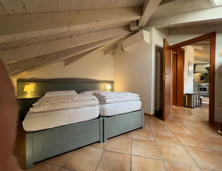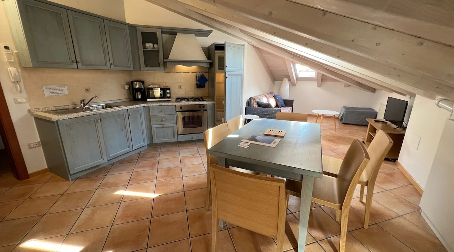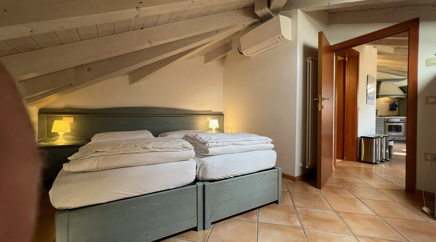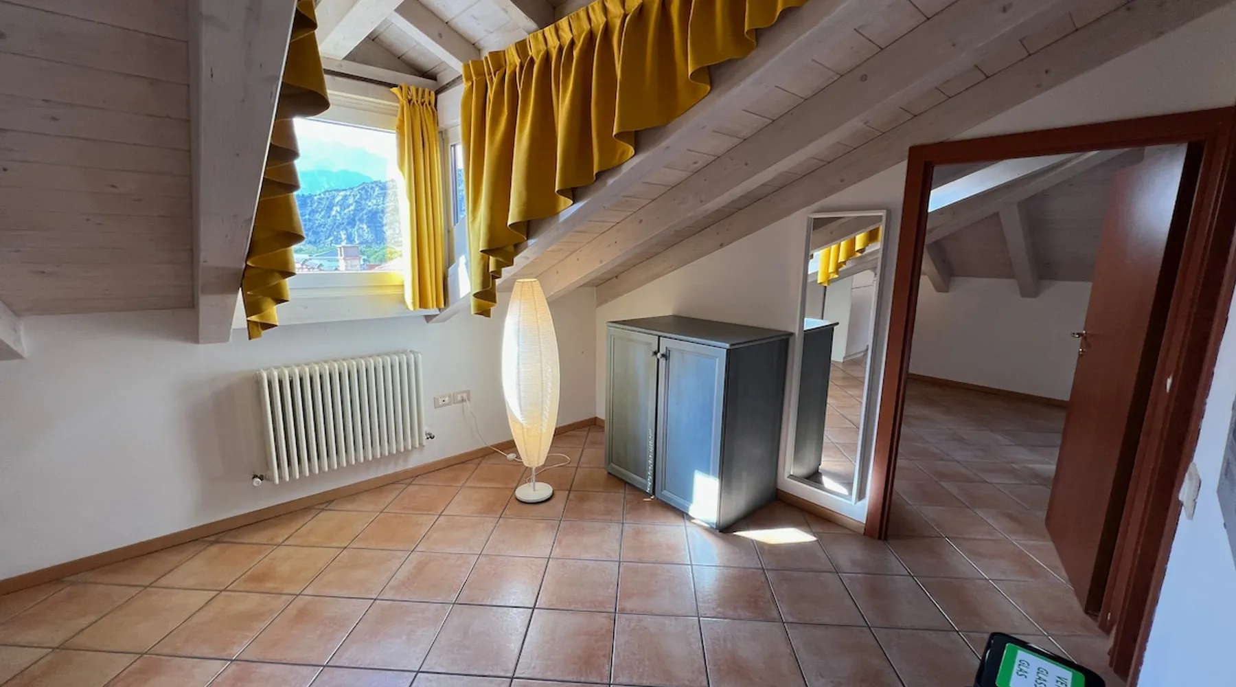 The apartment is cozy "Mansarda" under the roof, on the 4th floor of a nice building right in the centre of Torbole 50 mt from the beach. The apt is 45 sqm with a big kitchen/living room with double bed and a separate bathroom. The space The apt is 45 sqm with a big kitchen/living room with double bed and a separate bathroom, no elevator unfortunately. There is air-con, free wi-fi, garage for bikes and other equipments and private parking 500mt away. The apartment has a fully furnished kitchen, a big bathroom with shower. Guest access In the building there are other six apartments. Other things to note Before departure it is necessary to pay the accommodation tax of €1.5 per person per day. Check-in is automated and requires you to upload a photo of your ID. Registration Details IT022124B4IAIPU4Q2