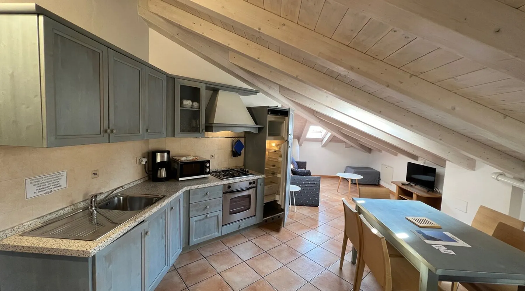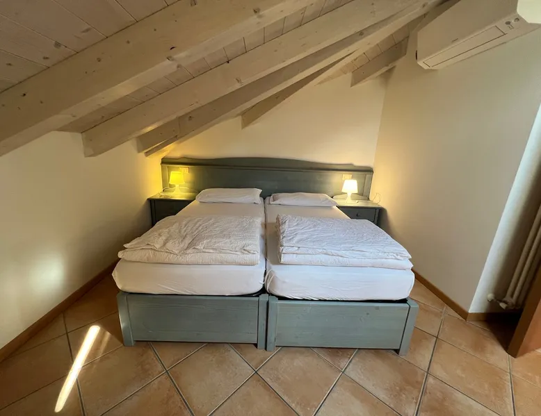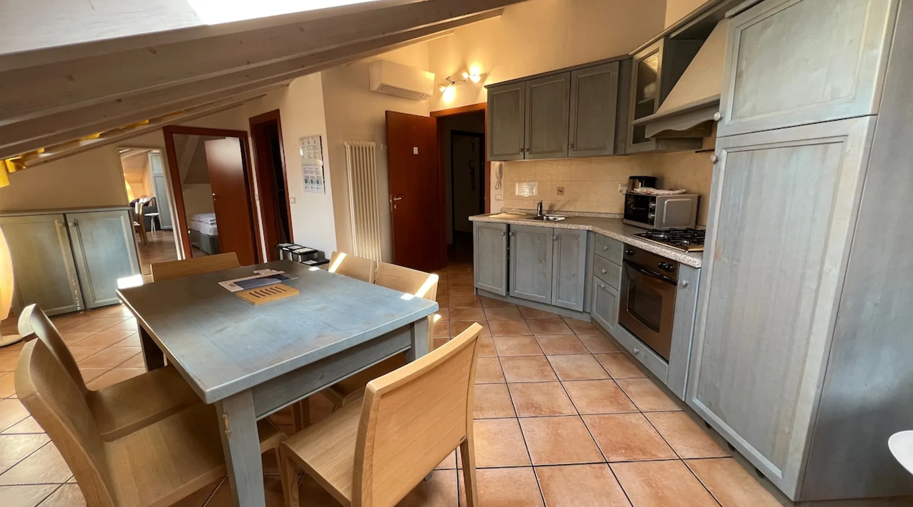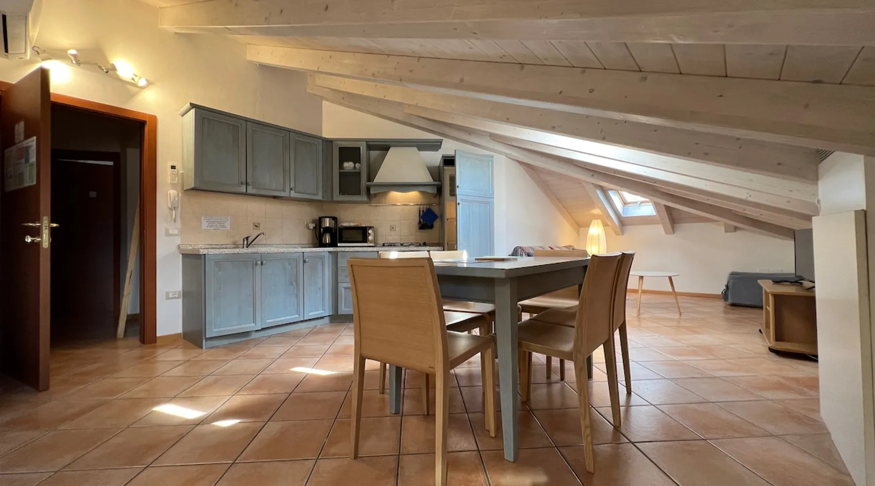 The apartment is cozy "Mansarda" under the roof, on the 4th floor of a nice building right in the centre of Torbole 50 mt from the beach. The apt is 45 sqm with a big kitchen/living room with double bed and a separate bathroom. The space The apt is 45 sqm with a big kitchen/living room with double bed and a separate bathroom, no elevator unfortunately. There is air-con, free wi-fi, garage for bikes and other equipments and private parking 500mt away. The apartment has a fully furnished kitchen, a big bathroom with shower. Guest access In the building there are other six apartments. Other things to note Before departure it is necessary to pay the accommodation tax of €1.5 per person per day. Check-in is automated and requires you to upload a photo of your ID. Registration Details IT022124B4IAIPU4Q2