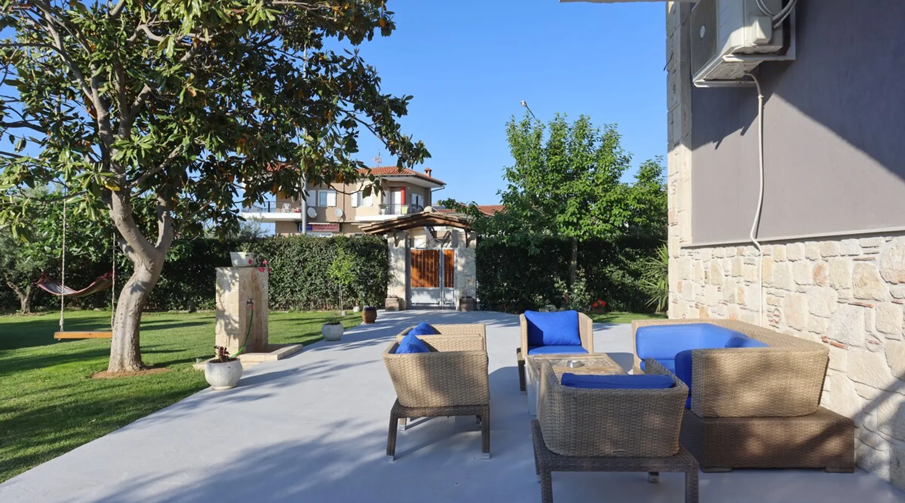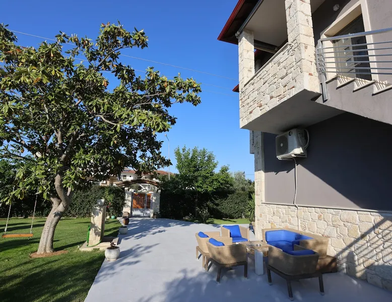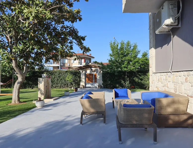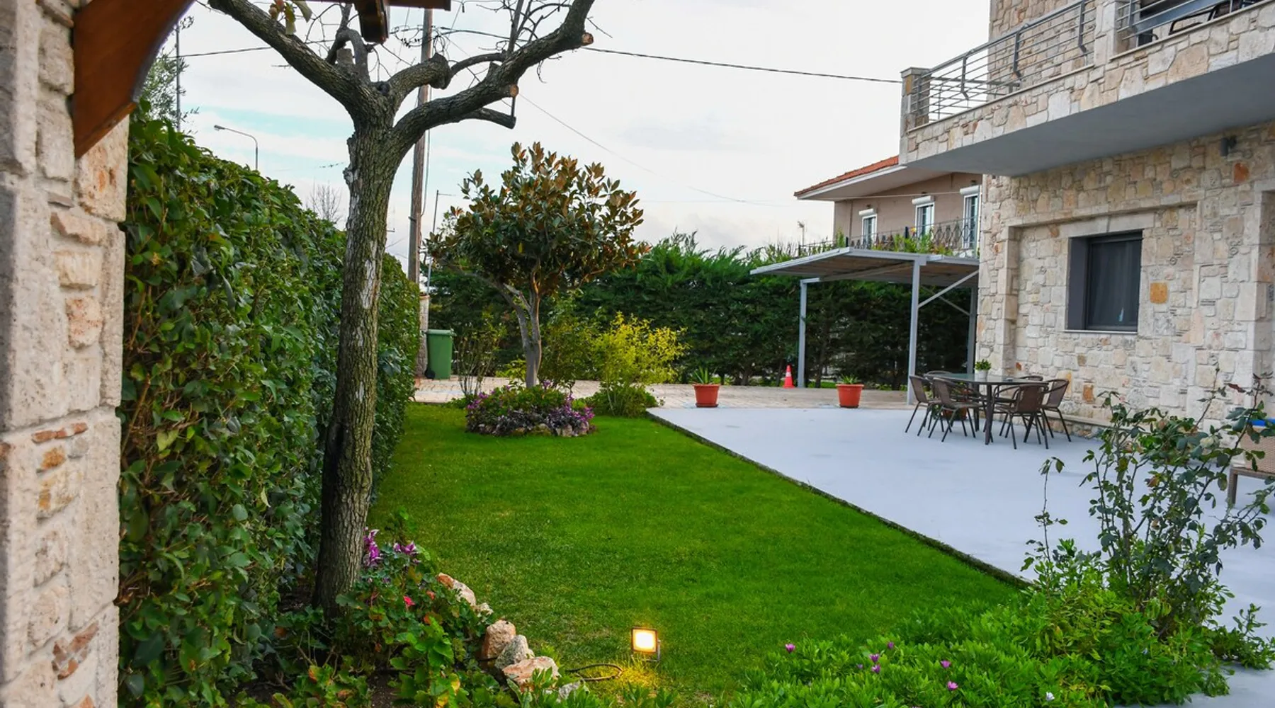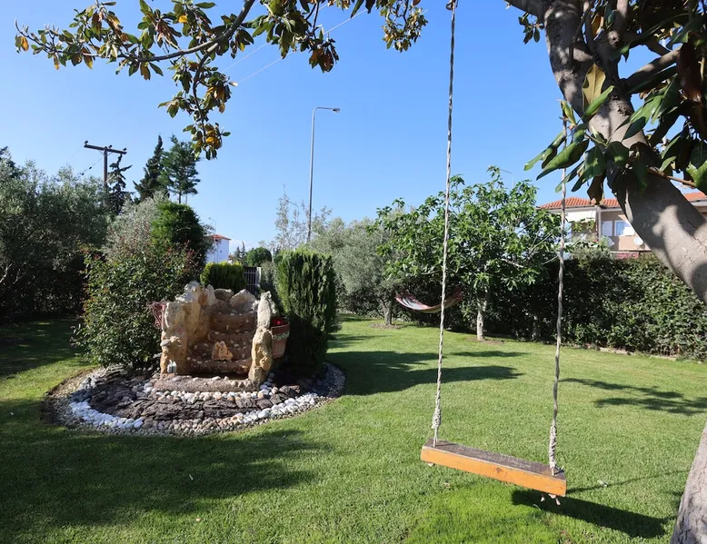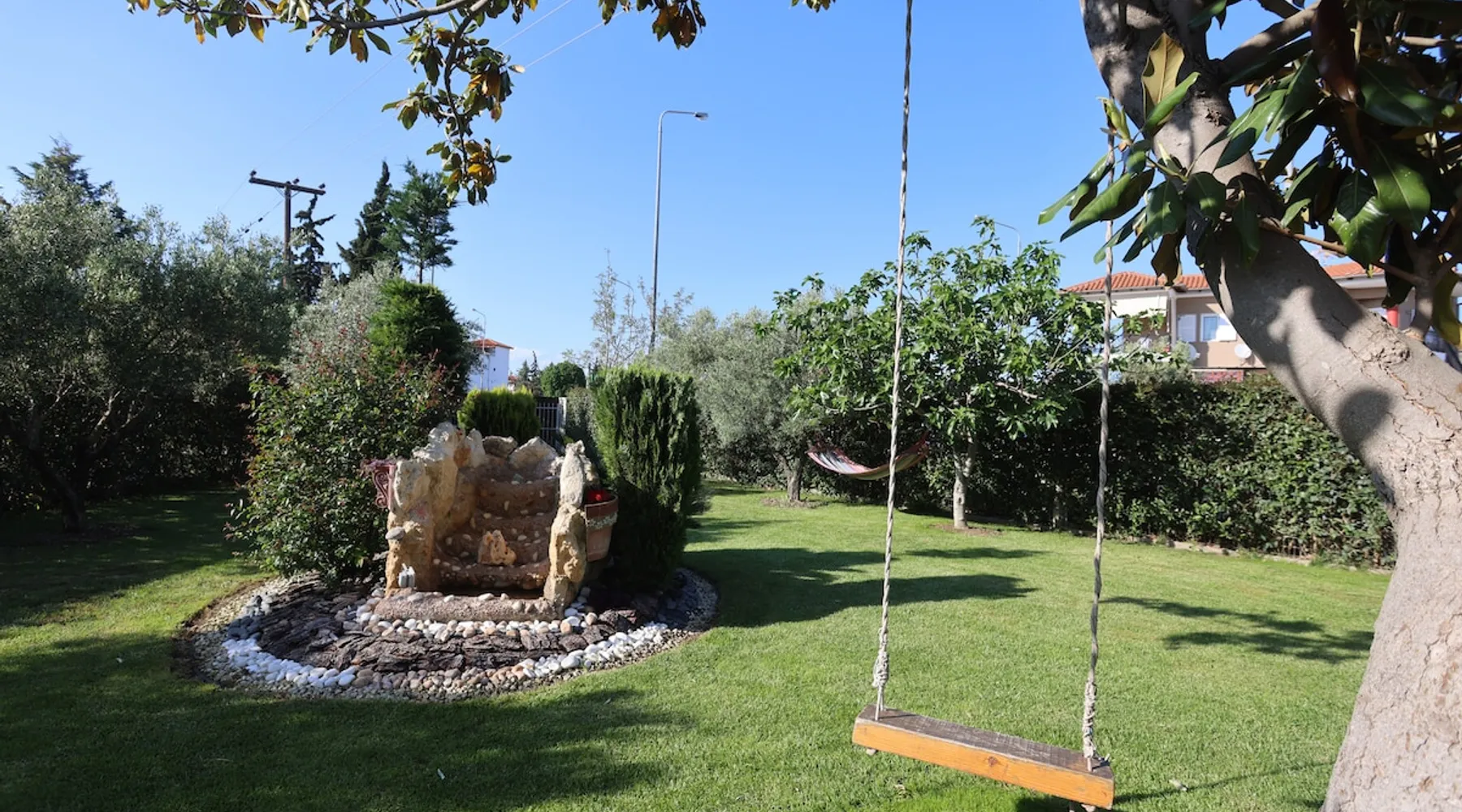 A beatiful private villa apparted by a huge yard, ideal for family moments and relaxation. It is located just 300m from the center of Afytos and 700m from the beach, a beautiful traditional village with wonderful views. The space The villa features a kiosk with a barbecue, a huge yard and private parking. Registration Details 00000588930