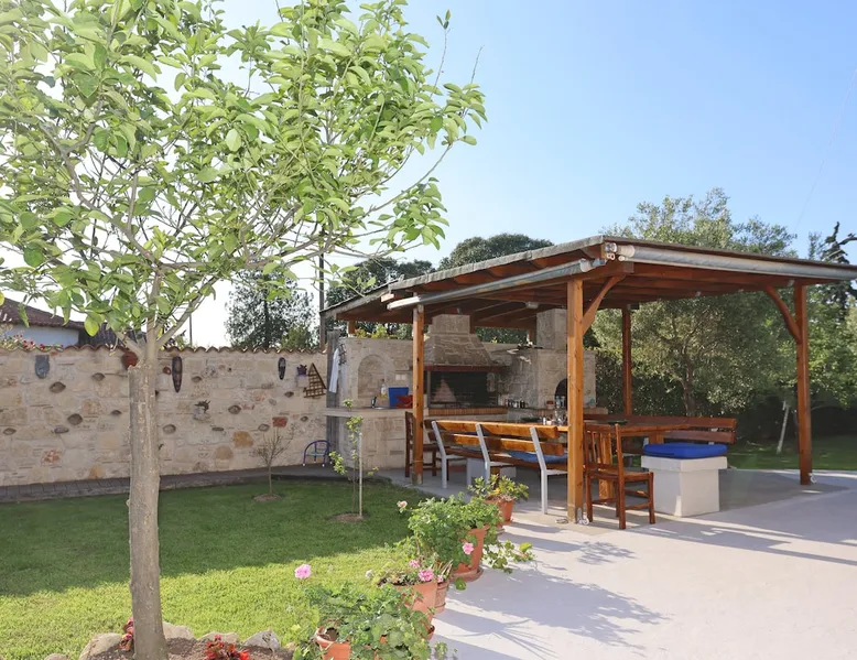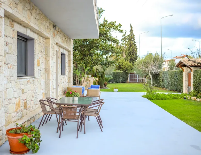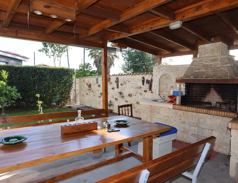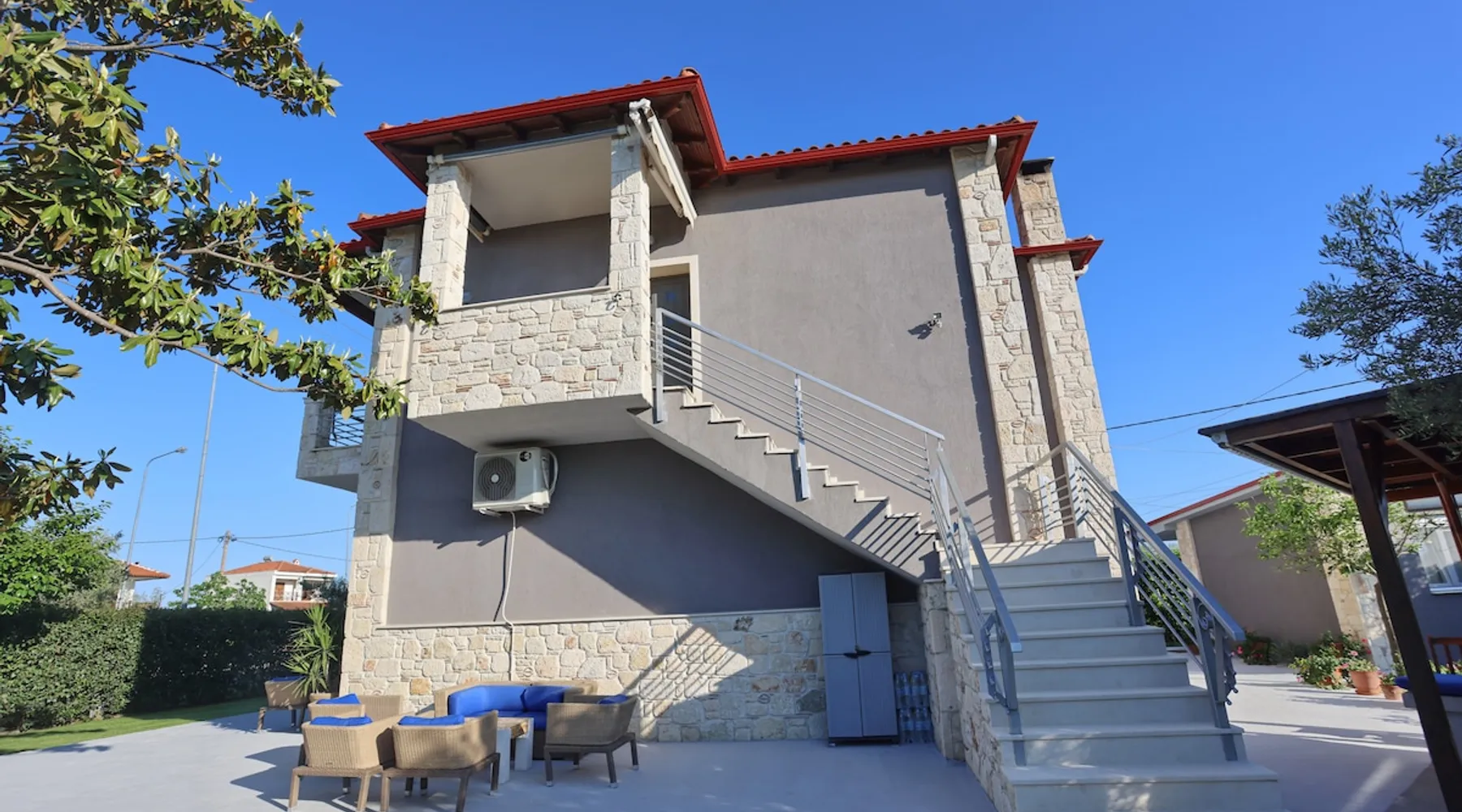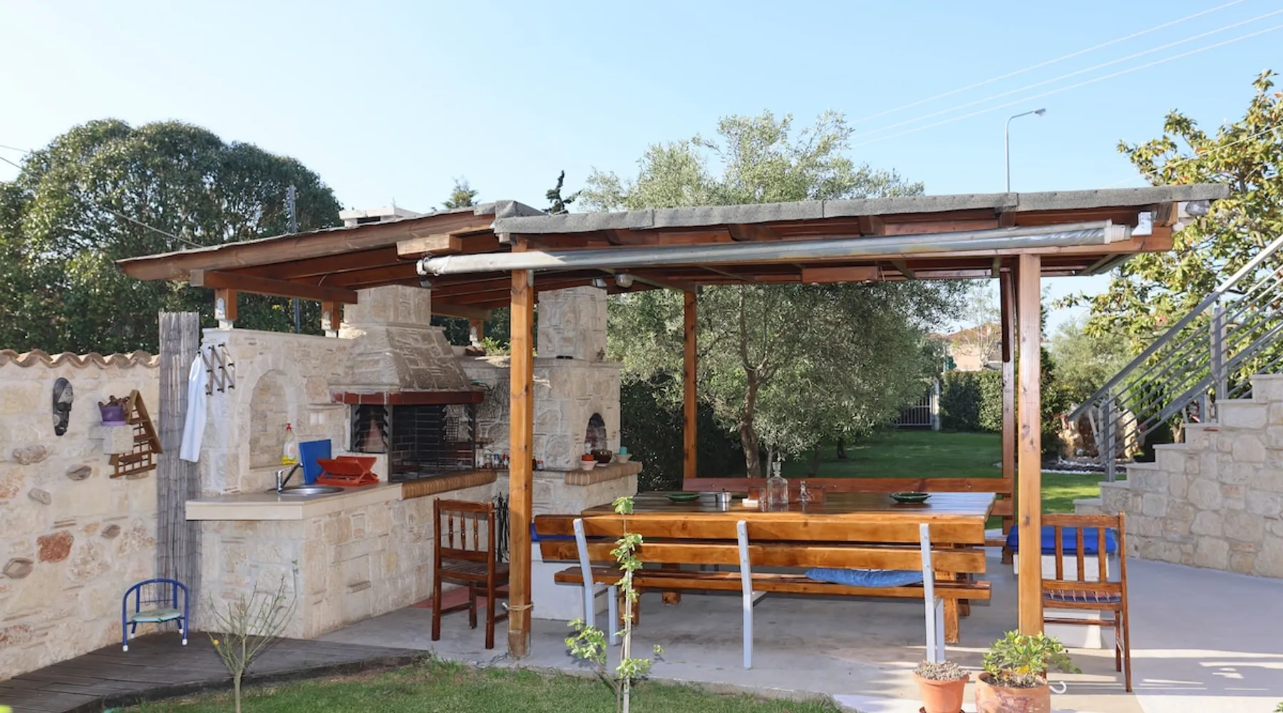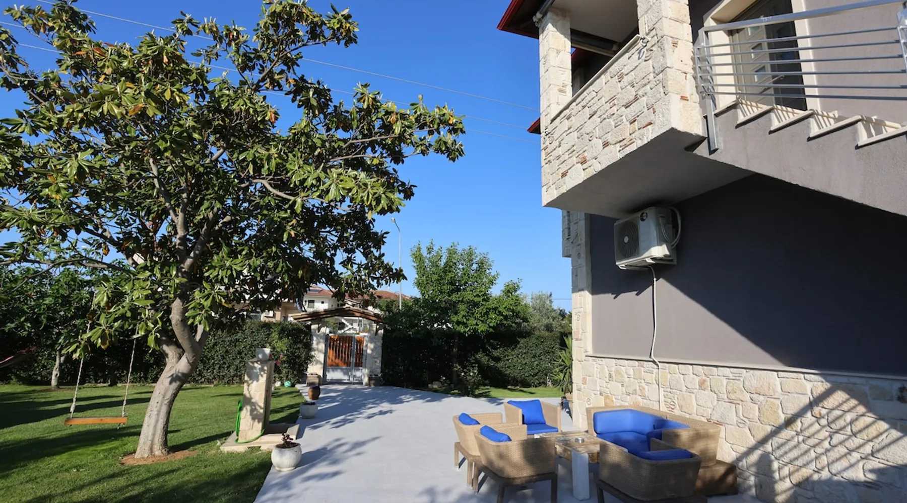 A beatiful private villa apparted by a huge yard, ideal for family moments and relaxation. It is located just 300m from the center of Afytos and 700m from the beach, a beautiful traditional village with wonderful views. The space The villa features a kiosk with a barbecue, a huge yard and private parking. Registration Details 00000588930