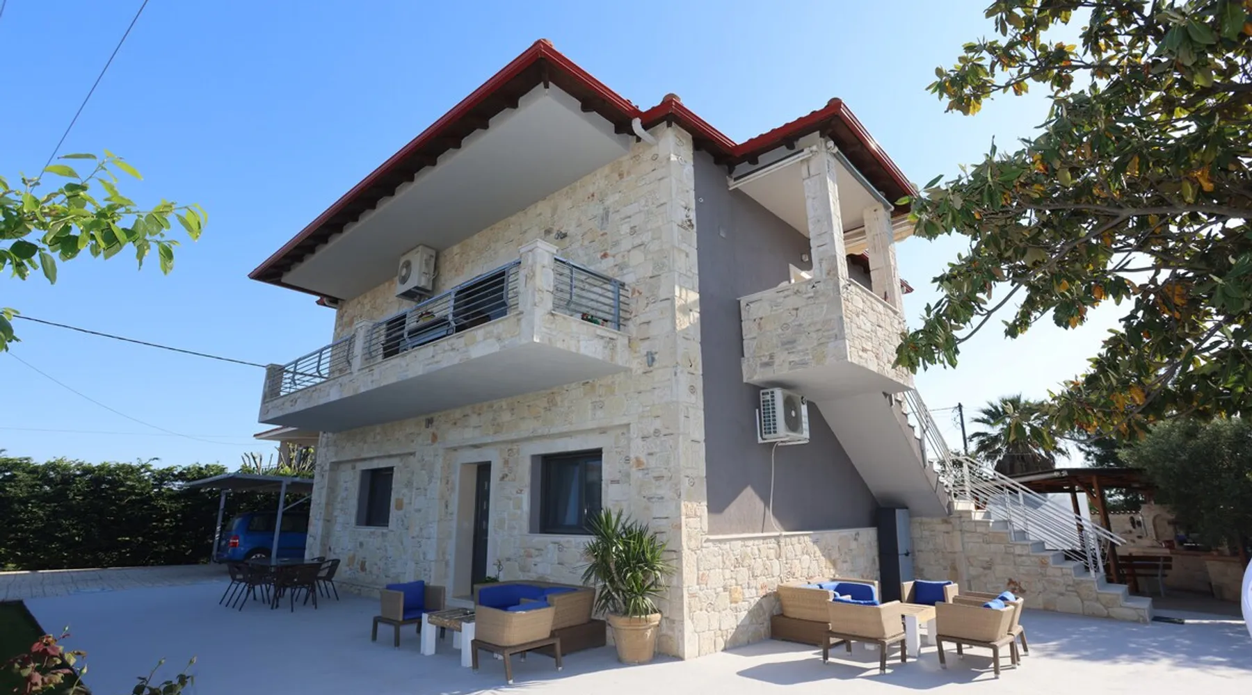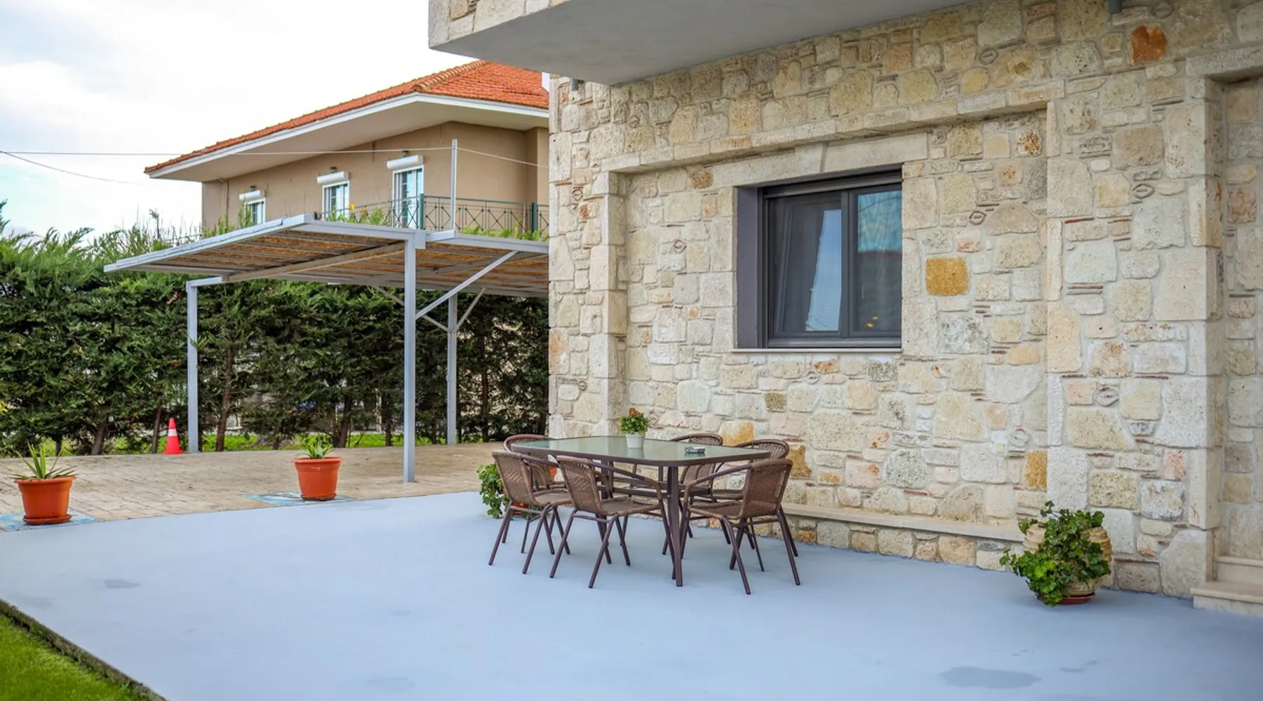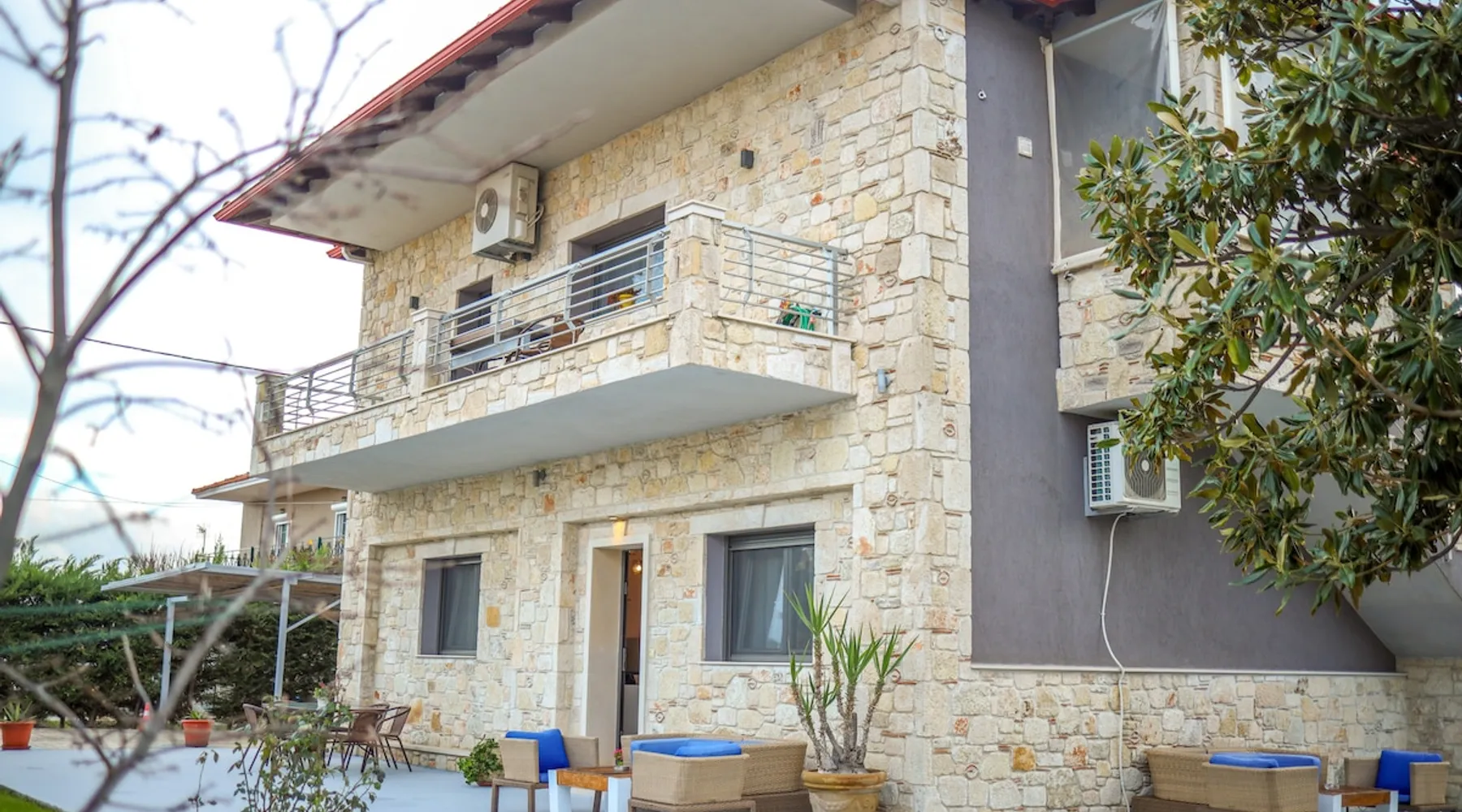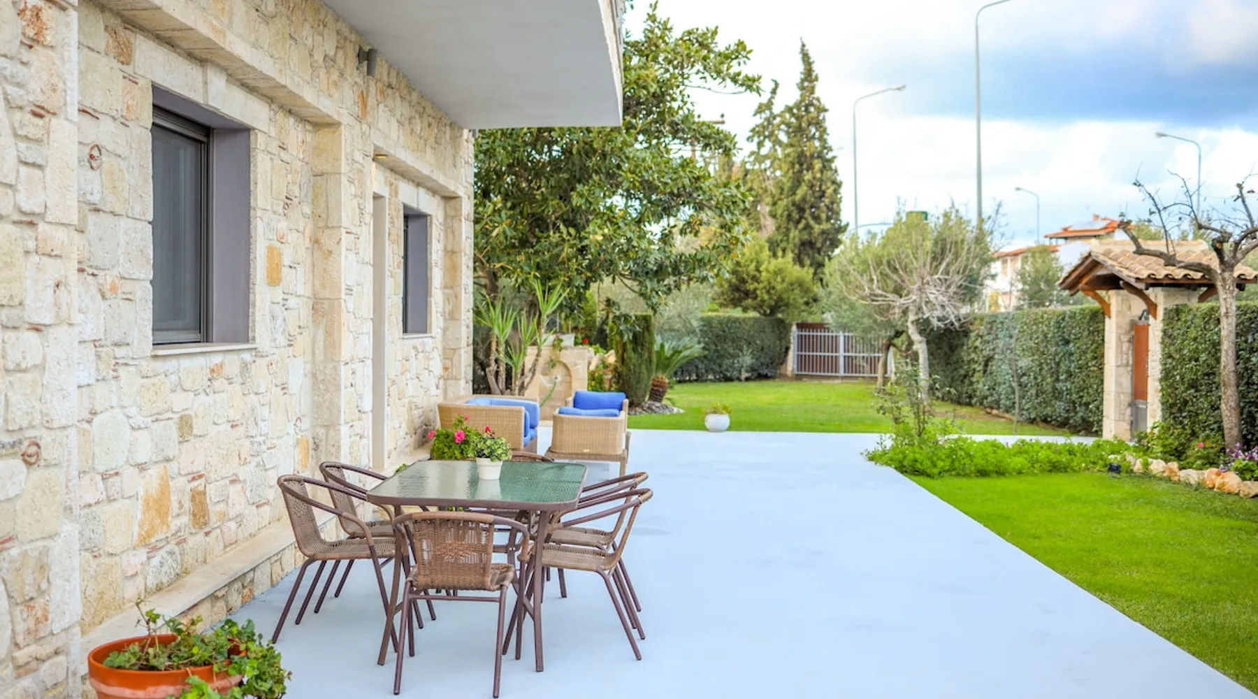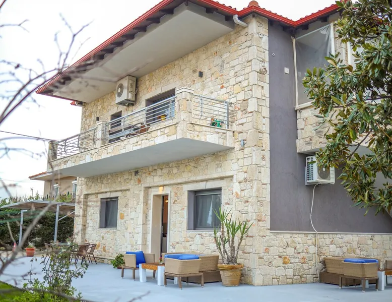 A beatiful private villa apparted by a huge yard, ideal for family moments and relaxation. It is located just 300m from the center of Afytos and 700m from the beach, a beautiful traditional village with wonderful views. The space The villa features a kiosk with a barbecue, a huge yard and private parking. Registration Details 00000588930
