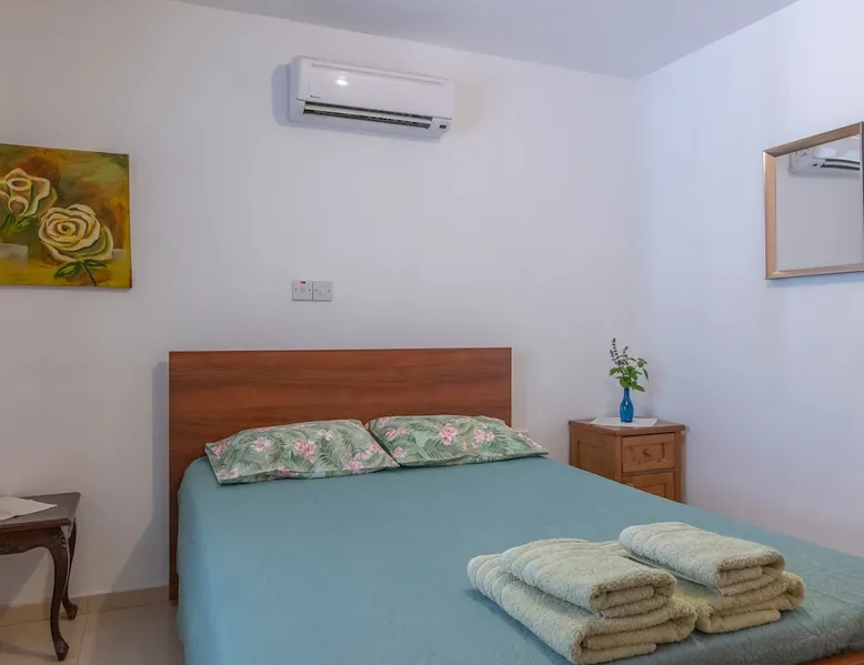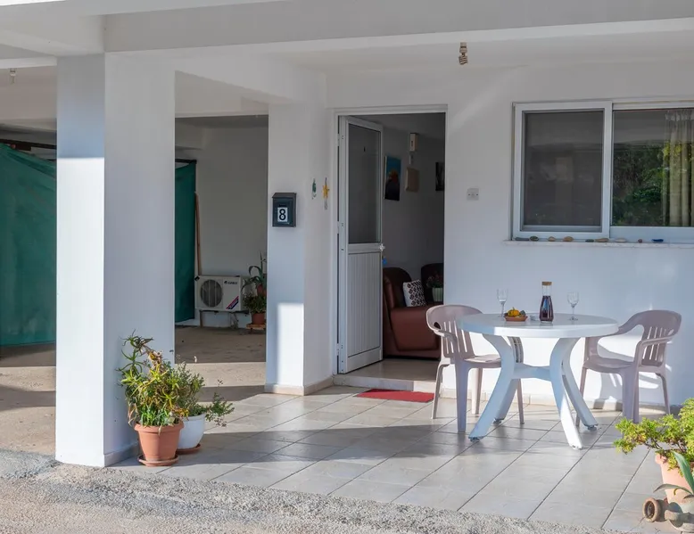 Enjoy your stay in a cozy and peaceful ground-floor apartment in the heart of Latchi, just a short walk from the beautiful La Plage beach. The apartment offers the perfect balance of tranquility and convenience, with a nearby bus stop, shops, and two car rental agencies all within easy reach. It’s an ideal spot for couples or solo travelers looking for a relaxing base to explore the natural beauty of Polis Chrysochous and the stunning Akamas National Park. The space This quiet ground-floor apartment offers privacy and comfort, as it does not face the main road. It features: A fully equipped kitchen 1 bedroom with a comfortable double bed 1 fully equipped bathroom A bright living area that opens to an outdoor space A private covered parking spot available for guests The outdoor patio, surrounded by greenery, is perfect for enjoying your morning coffee or a glass of wine in the evening.