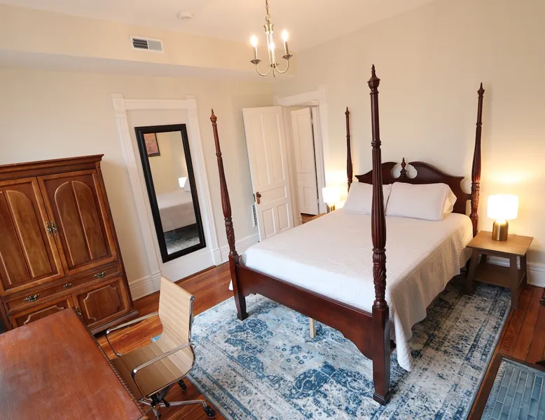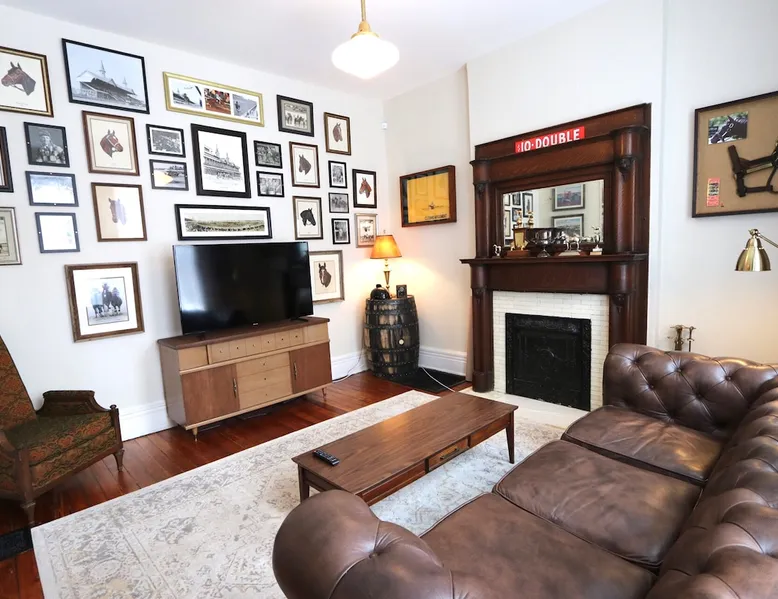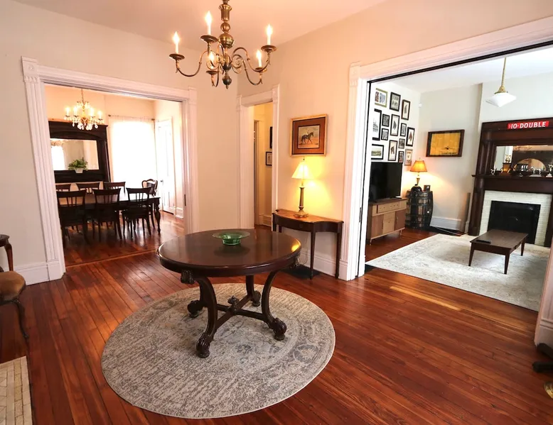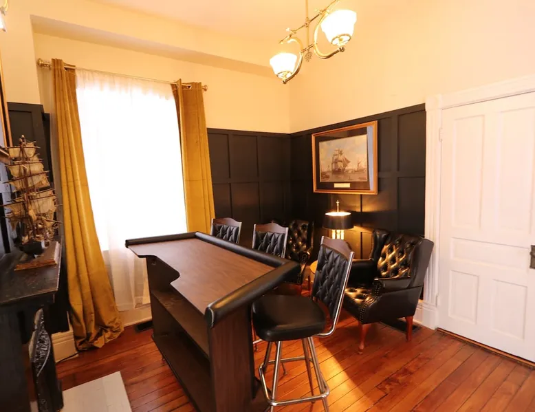 - Full home in Old Louisville, 3 stories at over 3,000 Sq Ft. - 5 bedrooms (4 queen, 1 king beds) - Full kitchen - Washer/dryer - WiFi - Dining room table and seating for 10 - "Captain's Room" lounge with retro bar and tufted furniture - A Derby-themed entertainment room to marvel at - Dual air conditioning and heating systems - Back patio / deck and full backyard - Ample street parking & off-street parking available The space Old Louisville Gem - Cozy, Historic & Updated! Located directly between downtown Louisville and Churchill Downs - less than 2 miles away to each! Beautiful historic home in Old Louisville built in 1901. Our home was fully renovated and outfitted beautifully with historic local pieces as well as all new appliances and furniture. At over 3,000 square feet with 5 beds and 2.5 baths, our home is the perfect place for your group during your stay in Louisville! Please note that in early April 2022 we will be replacing the deck behind our home. We anticipate a completion by the end of April and apologize in advance for any inconvenience that this may cause. Rest assured, our crews will not be at work during your stay for your enjoyment and peace and quiet. ****** For stays 30+ days in length ****** Our space is the perfect place for professionals in town for more than 30 days of work. This fully furnished unit is fully supplied with linens and towels for your stay. The unit has central heating and AC, adjustable within a reasonable comfort range. Stays over 30 days include the furnished home, gas, electricity, water and wifi as well as access to a fenced back yard space including a deck. Street parking is available in front and there are 3 private parking spaces on a parking pad in the rear. We provide essentials like toilet paper and paper towels, coffee pods etc for up to a week. After that, guests are expected to purchase their essentials. Guests should plan to provide their own shower essentials (shampoo, conditioner, soap, etc) for the duration of their stay. We have a stacked washer/dryer within the unit. It is our guests responsibility to supply their own detergent, fabric softener, dryer sheets, etc. Cleaning costs within the listing are for the final exit clean. We require our guests to have the home professionally light-cleaned on a monthly basis for upkeep. We, your hosts, will coordinate with our guests and trusted cleaners to come out and perform monthly light-cleanings and a final exit clean on the property upon departure. Inclusive of the final cleaning, the base fee does not include monthly cleanings and it is the guest's responsibility for those costs. Throughout their stay, it is the guests' responsibility to maintain a clean environment within the unit. A vacuum, mop and cleaning supplies are provided so guests are able to perform routine cleanings themselves. Our home is a three story home. There are 5 steps to get into the home and 18 steps between the floors. Our home is fully furnished, very comfortable and professionally cleaned prior to each stay. Inside our unit you will find: • Fully furnished rooms with period and modern furniture; details like bed side reading lights, cozy plush throws (seasonal) for the living area and bedrooms. • FULL KITCHEN - microwave, oven, stovetop, coffee maker, and kitchen ware - all you need to bring is food and YOU. • 2.5 BATHROOMS (2 full showers) – adjustable shower nozzle with essentials like - hairdryer, towels and washcloths, etc. • Parking is ample and available through street parking and 3 private parking spaces in the rear. • 48 inch smart TV with over the air channels and access to login to your own Netflix, Hulu, HBO, Amazon, etc accounts. • 4 new QUEEN SIZED beds, 1 KING SIZED bed all on 4 poster bed frames with over sized pillows. • Less than a 5 minute drive to downtown Louisville and easy walking distance to some great bars and restaurants in Old Louisville and surrounding neighborhoods. Please note, we strive to be good neighbors and respectful to those who live with us. Quiet hours are STRICTLY ENFORCED from 9PM to 9AM inside and outside of our home. Parties, group gatherings, etc are not permitted in the home or on the property. There is no smoking within our home and no weapons or illegal substances are permitted on the property. Guests will receive one warning for any noise complaints and will be required to vacate upon failure to comply and/or a second incident. We have a no-tolerance policy for parties, group gatherings, smoking, weapons and illegal substances. Guests found in violation of these policies will be required to vacate immediately upon request. Guest access You will have access to the entire home (3 floors). The home consists of an entry room, living room, dining room, lounge room, kitchen and half bath on the first floor; three bedrooms and a full bathroom with washer/dryer on the second floor; two bedrooms and a full Jack & Jill bathroom on the third floor. Registration Details LIC-STL-19-00298