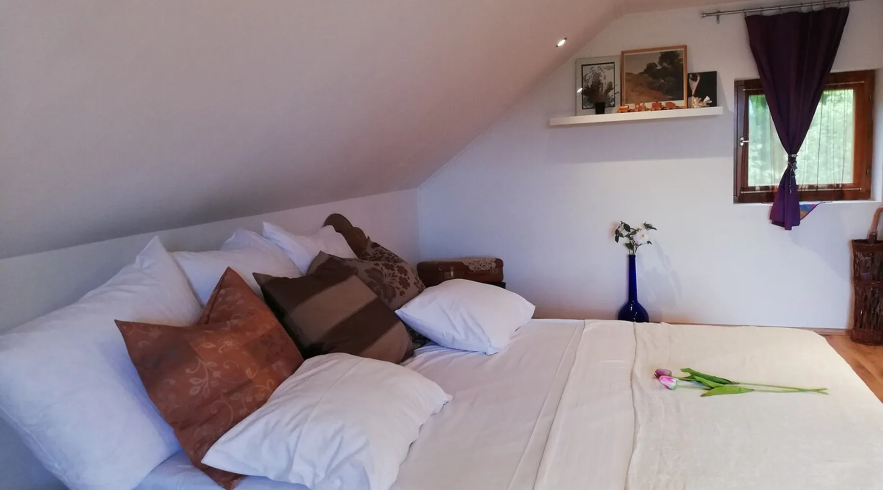 The Forest House for meditators, hikers, romantic couples. Those who are not looking for luxury, just want to try simple, puritanical things, to go back in time a little, to relax without extra demands. NO WIFI, NO TV! Just relax. /There's reception./ There's conversation and there's smiles. We have prepared some exciting books for you to read with confidence. We encourage everyone to have lots of natural experiences, excursions, forest bathing, conversation and relaxation! The space Relax with amazing mountain views, focus on yourself, and find new energy! Forest edge, atmosphere, close to nature, hiking, calming, lazy, romantic, bird pounding, retreating, resting, medicine for the soul, physical soul refreshing, rejuvenating active movement, garden baker. Nothing fancy, no TV, no WIFI. Simple. Stress free. House in the woods with a 1,500 sqm garden at the top of the hill that's all yours. A place to hide for couples. For couples, families, groups of friends, hikers, relaxation. For lovers of the forest and hiking who want a quiet place, birds chirping, relaxing, retreating, loving the smell of the forest, the campfire, and the romantic evening outdoors. 💖 Put on your sneakers, run, hike, or walk, breathe in the fresh oxygenated air, take in the scenery. God bring me... we look forward to seeing you! Guest access The entire house and garden are available. Everything is usable. Other things to note There is no drinking water in the taps!!! We use filtered rainwater! Drinking water is provided separately in cans. Registration Details MA20012877