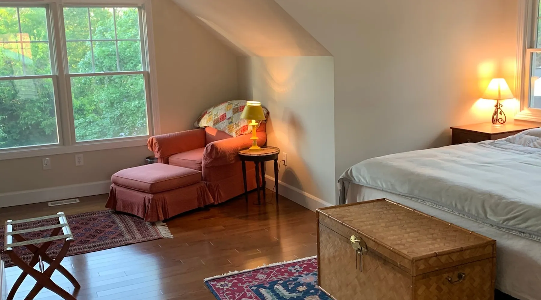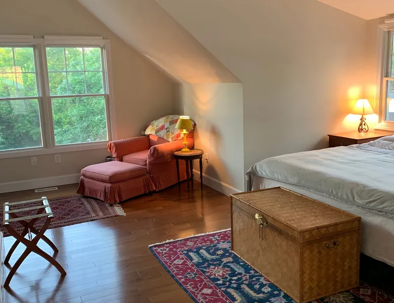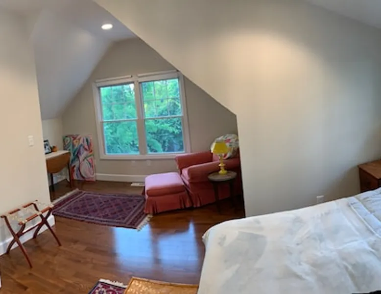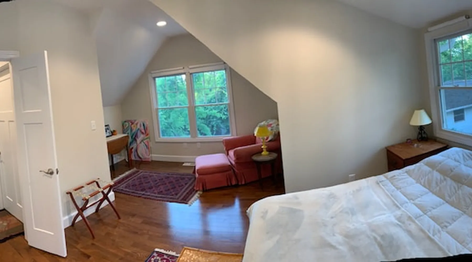 This guest suite is *one mile* from campus and downtown and located in a safe, quiet residential neighborhood! Here you will be walking distance to Kirkwood and steps away from a local coffee shop, restaurant, and 2 parks! The space is complete with ample natural lighting (+ custom blinds for privacy), premium features like heated floors, and privacy for guests to enjoy a quiet, relaxing stay steps away from Btown's best nestled into a quiet backyard (often with deer!). No idiots. The space The Cottage House is located above our garage at the end of our driveway. Guests can pull into the driveway to unload their cars and bring their items up the stairs to their private entrance. We have a safe with a key by the door for you to let yourselves in with a contact-less entry. Guest access On-street parking or park in the school parking lot (1 house away!) Other things to note Please note the space is set up for 2 but can accommodate 3 with an air mattress - it is close quarters if you choose that option! :)