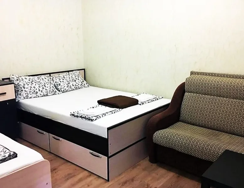 Guest house "Arina" is located in the village of Vityazevo in a 25-minute drive from Anapa. Vityazevo beach is 15 minutes by walk down a shady alley. Nearby grocery stores, pharmacies, hairdressers, dining rooms, there is also a paid parking lot nearby. It offers economy and standard class family rooms, free WI-FI, shared kitchen, playground. The distance to the airport is 8 km, to the railway station Anapa 7 km. For an additional fee, we provide airport and train station transportation services. The space 3-bed standard: double bed, single bed, sofa bed, coffee table, ironing dresser board, window air conditioning, TV with 18 TV channels+1 children's TV (carousel), wardrobe, mini fridge, mugs, shower, toilet, sink, mirror. We also provide bed linen, pillows, towels and hand soap in each room. Guest access An equipped playground, shared summer kitchen-dining room for all guests, barbecue and barbecue facilities, paid laundry, accommodation in rooms for up to 5 people(from three people extra charge). Other things to note The room can comfortably accommodate 5 people for an additional fee.