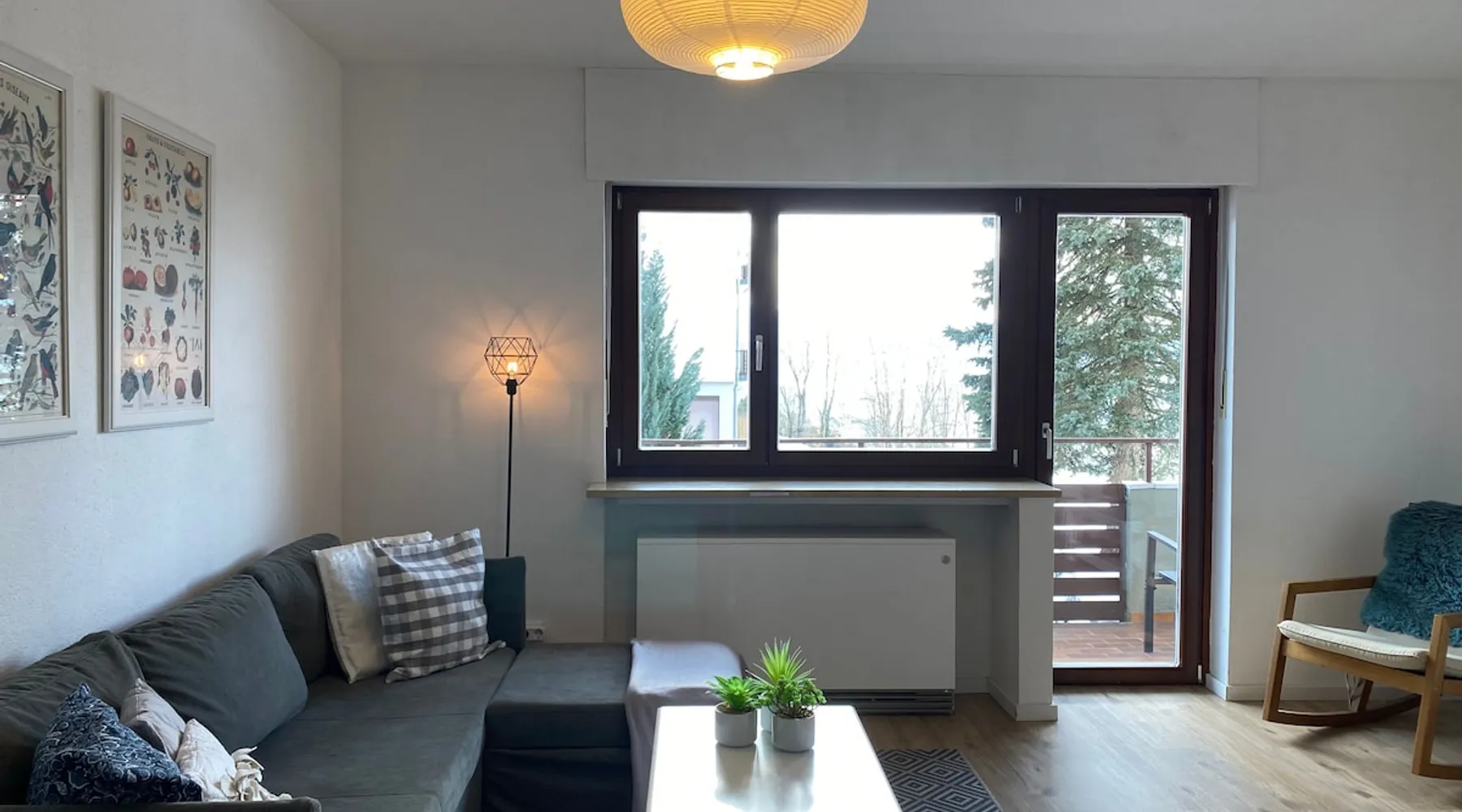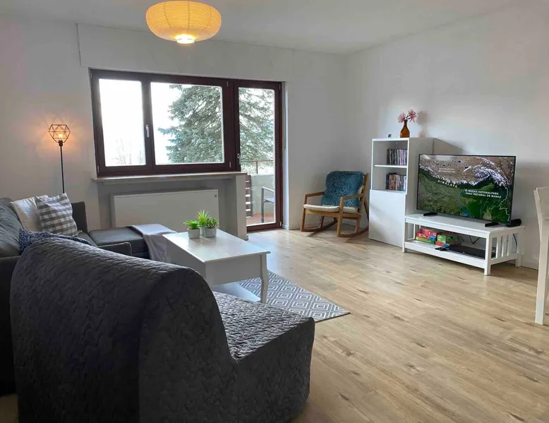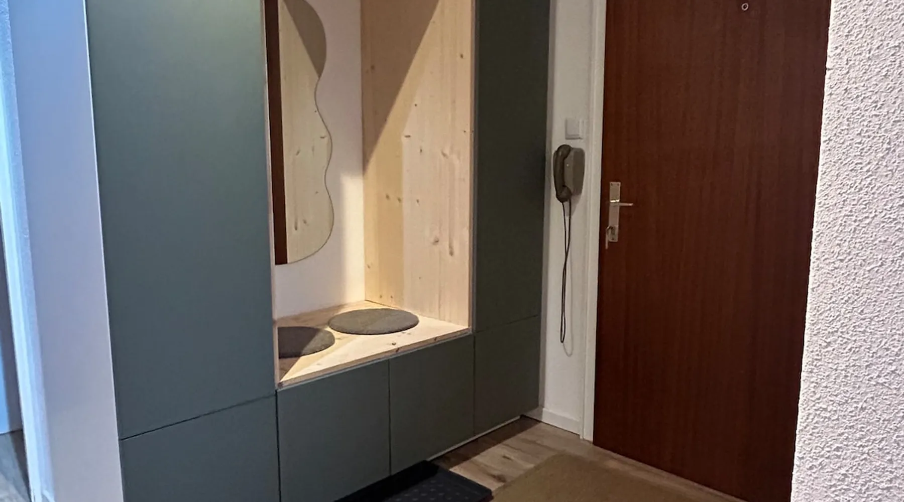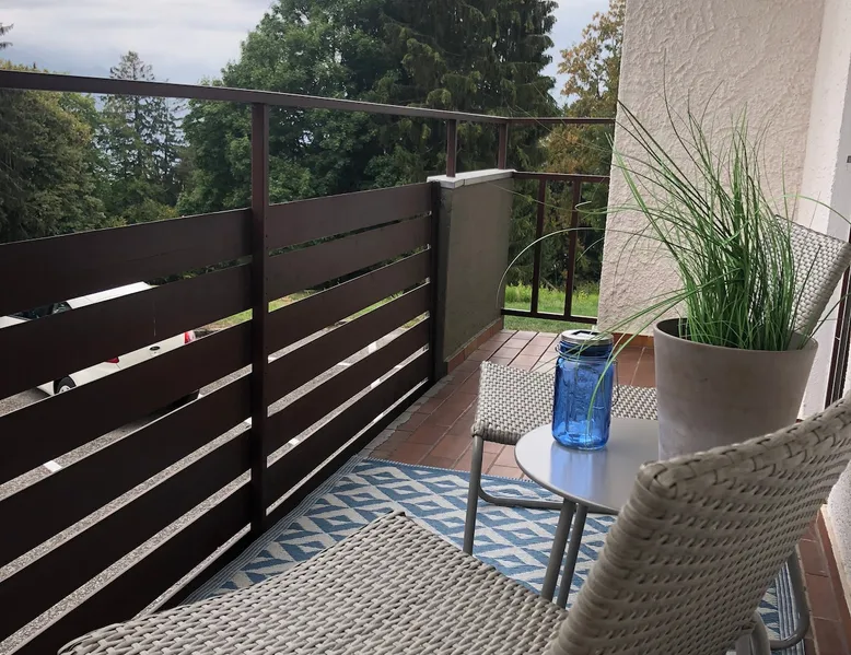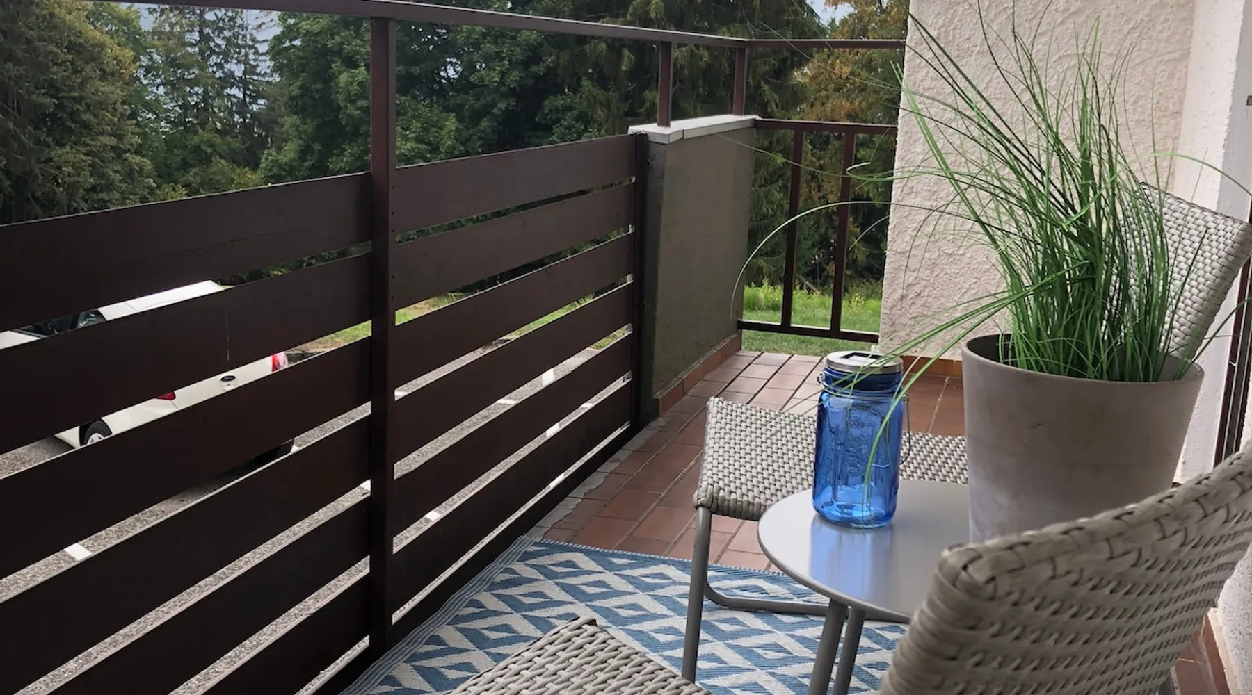 Our apartment in an apartment complex is embedded in nature with a breathtaking view of the Austrian and Swiss mountains. Despite the quiet location (car strongly recommended!), you are only about 10 minutes in the valley. The Laterns ski resort is only 10 minutes away by car. Our gem is also perfect as a starting point for hikes. We always strive to improve our offerings and want to provide our guests with a nice and affordable vacation The space We paid attention to a loving but also functional furnishing of the apartment. We completely modernized the apartment at the beginning of 2018 and have been renovating it ever since. In the bedroom there is a large double bed (180 × 200 cm). The spacious kitchen-living room with access to the balcony invites you to linger. In this room, a sofa bed (approx. 140 x 190 cm bed surface) is available. The kitchen has good basic equipment. A dishwasher is available as well as a Nespresso coffee machine and a kettle. If anyone needs more detailed information about the kitchen amenities, we're happy to answer questions in advance. In addition to a smart TV, there are also some games. Guest access Our guests can feel at home with us and use everything. Other things to note It is a vacation apartment complex on the mountain where some people live permanently. It's a house from the 70s, so it's a little noisy. It is basically a quiet complex - just because of the location - but if, for example, a dog barks in the stairwell, you can hear it in the apartment. Please note that the apartment may not be suitable for very sensitive people. We have renewed the electrics in the apartment, but there is still a night storage heater and a flow heater (due to the lack of a fireplace, we only have a limited alternative here). This no longer corresponds to the current standard. Washing machine and dryer are available for all residents of the house in the basement. The use must be paid separately with 50 cent coins.