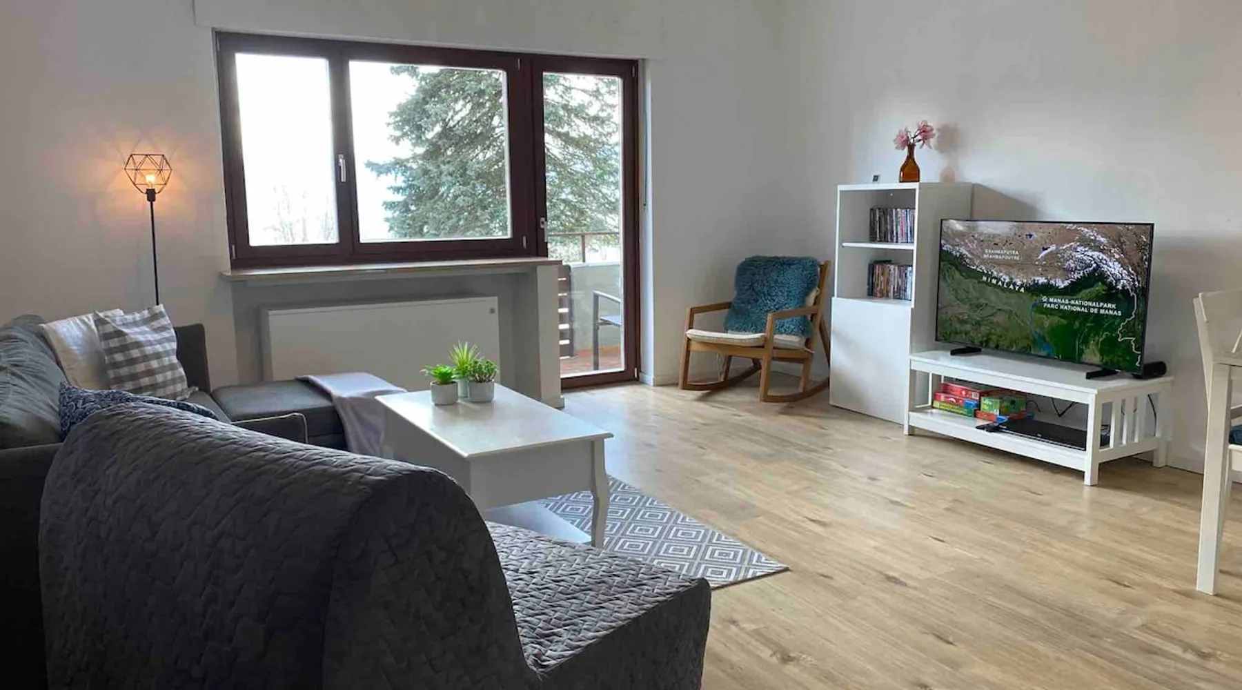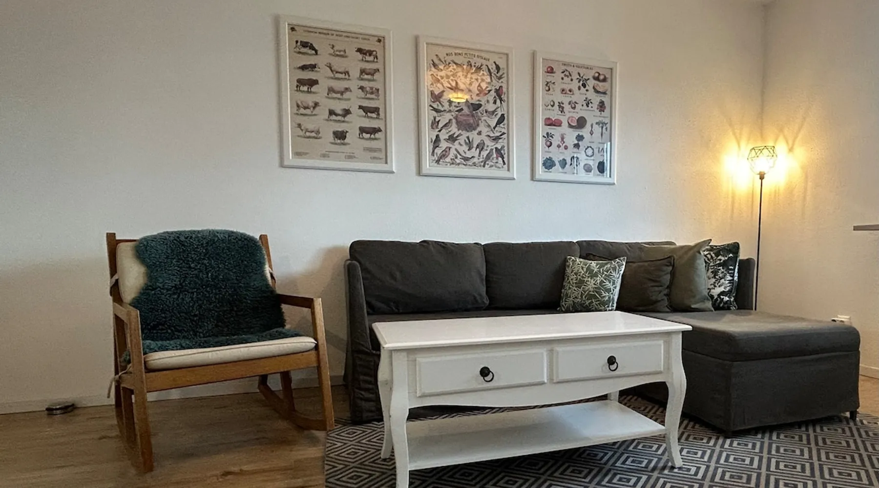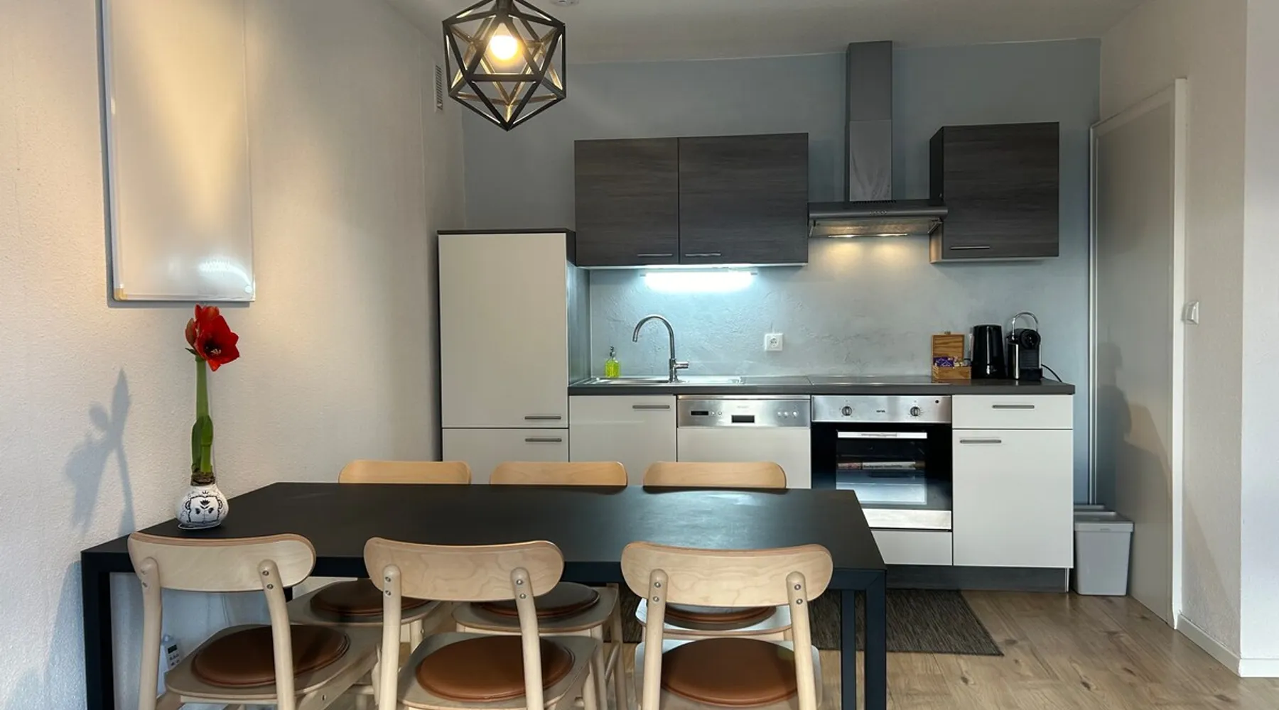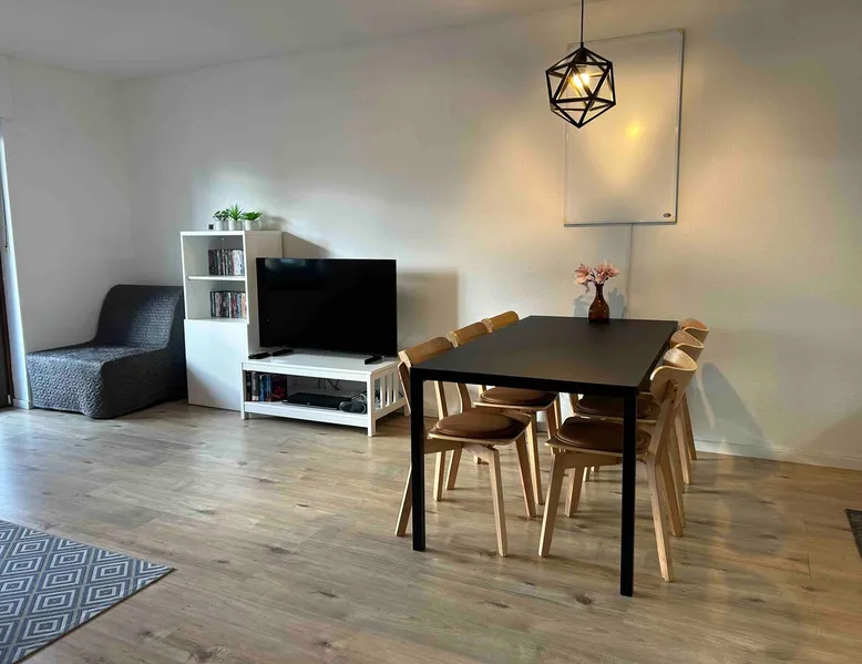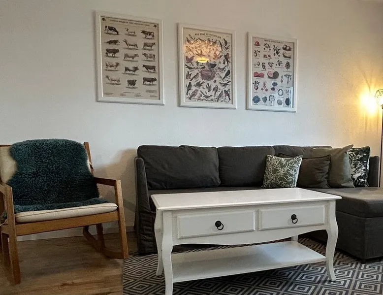 Our apartment in an apartment complex is embedded in nature with a breathtaking view of the Austrian and Swiss mountains. Despite the quiet location (car strongly recommended!), you are only about 10 minutes in the valley. The Laterns ski resort is only 10 minutes away by car. Our gem is also perfect as a starting point for hikes. We always strive to improve our offerings and want to provide our guests with a nice and affordable vacation The space We paid attention to a loving but also functional furnishing of the apartment. We completely modernized the apartment at the beginning of 2018 and have been renovating it ever since. In the bedroom there is a large double bed (180 × 200 cm). The spacious kitchen-living room with access to the balcony invites you to linger. In this room, a sofa bed (approx. 140 x 190 cm bed surface) is available. The kitchen has good basic equipment. A dishwasher is available as well as a Nespresso coffee machine and a kettle. If anyone needs more detailed information about the kitchen amenities, we're happy to answer questions in advance. In addition to a smart TV, there are also some games. Guest access Our guests can feel at home with us and use everything. Other things to note It is a vacation apartment complex on the mountain where some people live permanently. It's a house from the 70s, so it's a little noisy. It is basically a quiet complex - just because of the location - but if, for example, a dog barks in the stairwell, you can hear it in the apartment. Please note that the apartment may not be suitable for very sensitive people. We have renewed the electrics in the apartment, but there is still a night storage heater and a flow heater (due to the lack of a fireplace, we only have a limited alternative here). This no longer corresponds to the current standard. Washing machine and dryer are available for all residents of the house in the basement. The use must be paid separately with 50 cent coins.