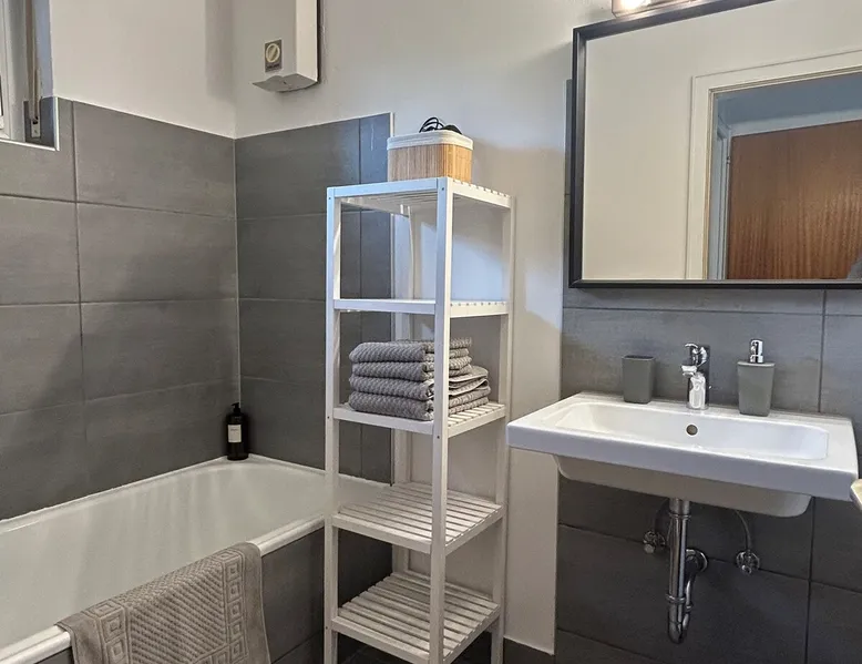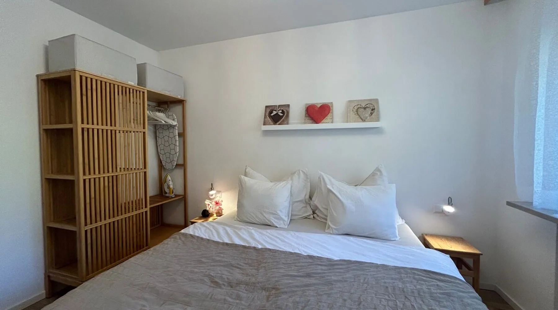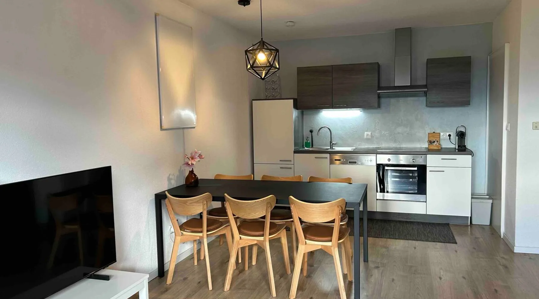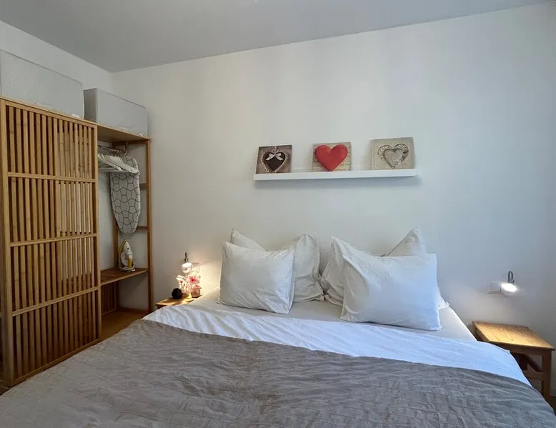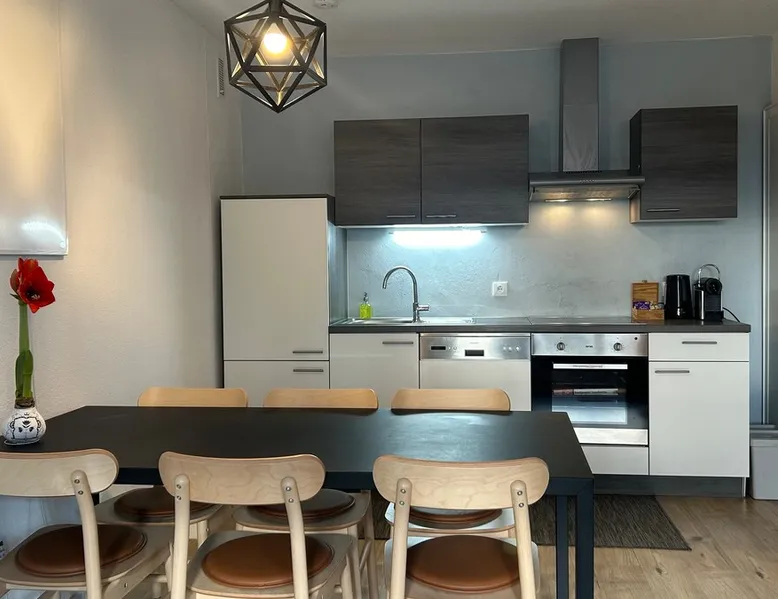 Our apartment in an apartment complex is embedded in nature with a breathtaking view of the Austrian and Swiss mountains. Despite the quiet location (car strongly recommended!), you are only about 10 minutes in the valley. The Laterns ski resort is only 10 minutes away by car. Our gem is also perfect as a starting point for hikes. We always strive to improve our offerings and want to provide our guests with a nice and affordable vacation The space We paid attention to a loving but also functional furnishing of the apartment. We completely modernized the apartment at the beginning of 2018 and have been renovating it ever since. In the bedroom there is a large double bed (180 × 200 cm). The spacious kitchen-living room with access to the balcony invites you to linger. In this room, a sofa bed (approx. 140 x 190 cm bed surface) is available. The kitchen has good basic equipment. A dishwasher is available as well as a Nespresso coffee machine and a kettle. If anyone needs more detailed information about the kitchen amenities, we're happy to answer questions in advance. In addition to a smart TV, there are also some games. Guest access Our guests can feel at home with us and use everything. Other things to note It is a vacation apartment complex on the mountain where some people live permanently. It's a house from the 70s, so it's a little noisy. It is basically a quiet complex - just because of the location - but if, for example, a dog barks in the stairwell, you can hear it in the apartment. Please note that the apartment may not be suitable for very sensitive people. We have renewed the electrics in the apartment, but there is still a night storage heater and a flow heater (due to the lack of a fireplace, we only have a limited alternative here). This no longer corresponds to the current standard. Washing machine and dryer are available for all residents of the house in the basement. The use must be paid separately with 50 cent coins.