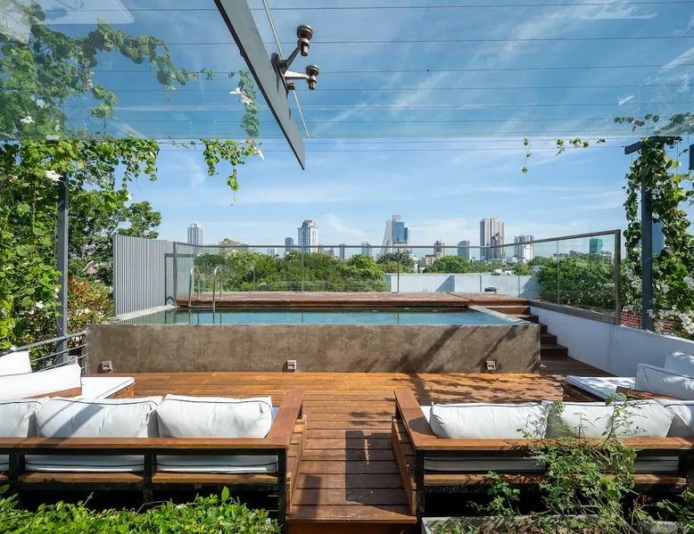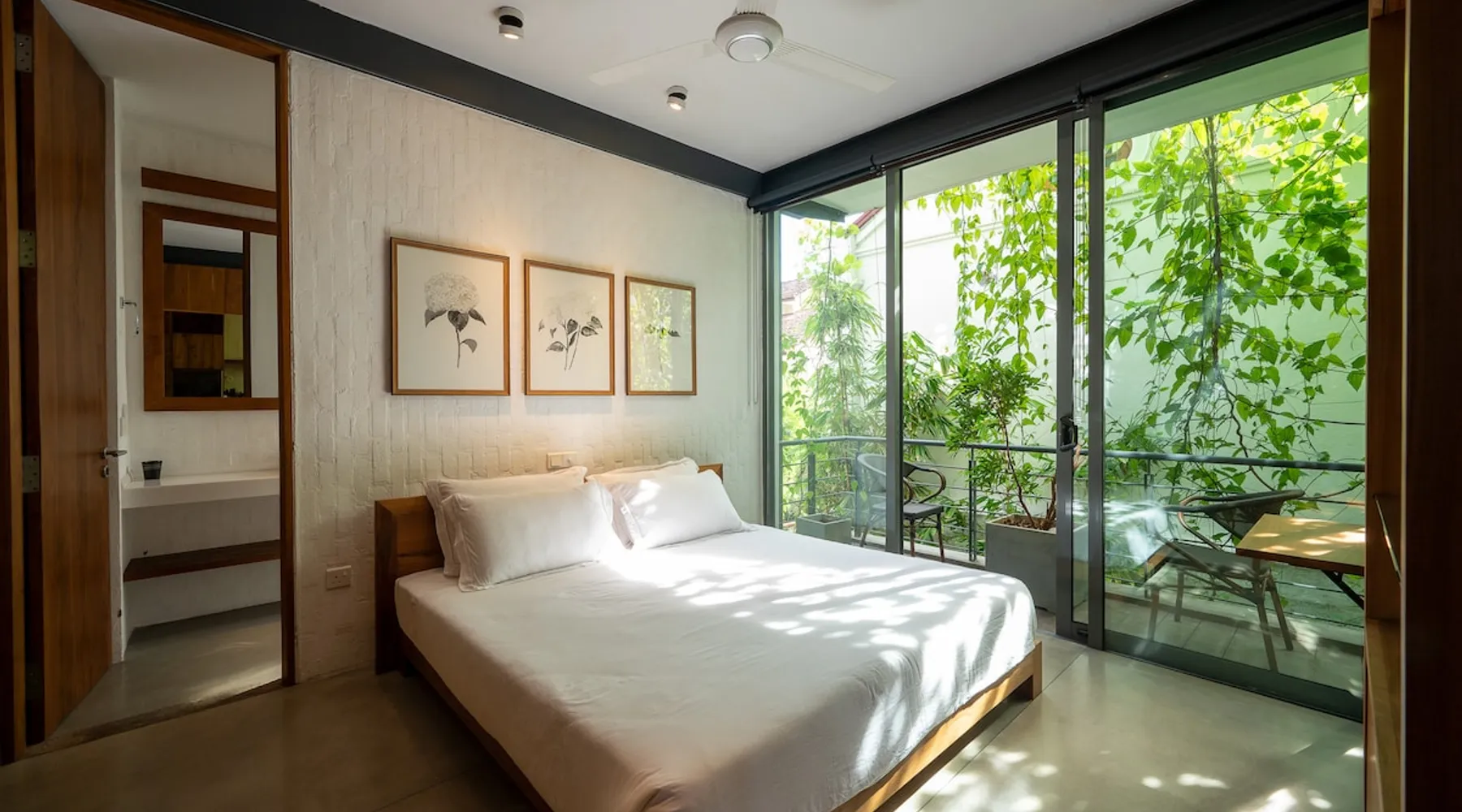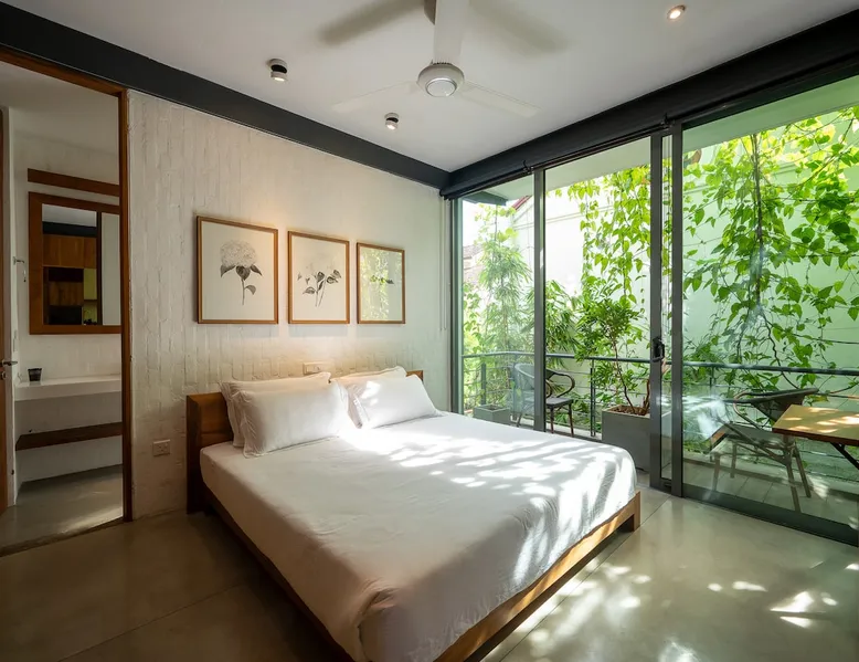 classy. contemporary. cosmopolitan. 55 FLOWERROAD has 3 turn-key 2BR apartments and two tiny houses, with spaces aimed to make your stay with us feel like home. Located in the heart of Colombo's most desirable residential area, 55FLOWERROAD promises you a perfect Colombo home with a class and character of its own. GF - THE NOOK & Parking for Units A, B, C 1st floor: Unit A 2 floor: Unit B 3rd floor: Unit C 4th floor: THE LOFT Rooftop: pool, micro gym, terrace The space 55 FLOWERROAD - Units A, B, & C Each apartment has been designed to maximise the use of its ~1000sqft floor area. The double-glazed glass sliding doors that open out from the bedrooms, living, and dining areas to the balconies allow cross-ventilation and natural light throughout, and also act as noise and heat barriers during the hotter and busier times of the day. Privacy is maintained with roller blinds, with additional blackout blinds in bedrooms to ensure restful sleep. The open-plan living spaces have been thoughtfully appointed to meet your every need. THE LOFT & THE NOOK Embracing tiny house dwelling features, THE LOFT @FIFTYFIVE and THE NOOK @FIFTYFIVE offer a unique adventure seeped in comfort, convenience, and character. Guest access Each independent apartment has a private entrance. The street-level covered parking space takes you directly to the entrance lobby with the elevator and stairs that serve the apartments, rooftop terrace, pool and micro gym, and service areas. Other things to note A 40kva back-up generator gives uninterrupted power supply. Especially in times when the country is experiencing an extended period of dry weather, it's not unusual for the island to have power outages. Two bottles of drinking water are supplied to the apartment and a water dispenser is located in an easy to access location within the building for topping up. The rooftop pool (L20 feet x W6.5 feet x D3.25 feet) and the rooftop area are shared with other guests in the building. The building has five units with a combined maximum capacity of 15 guests.