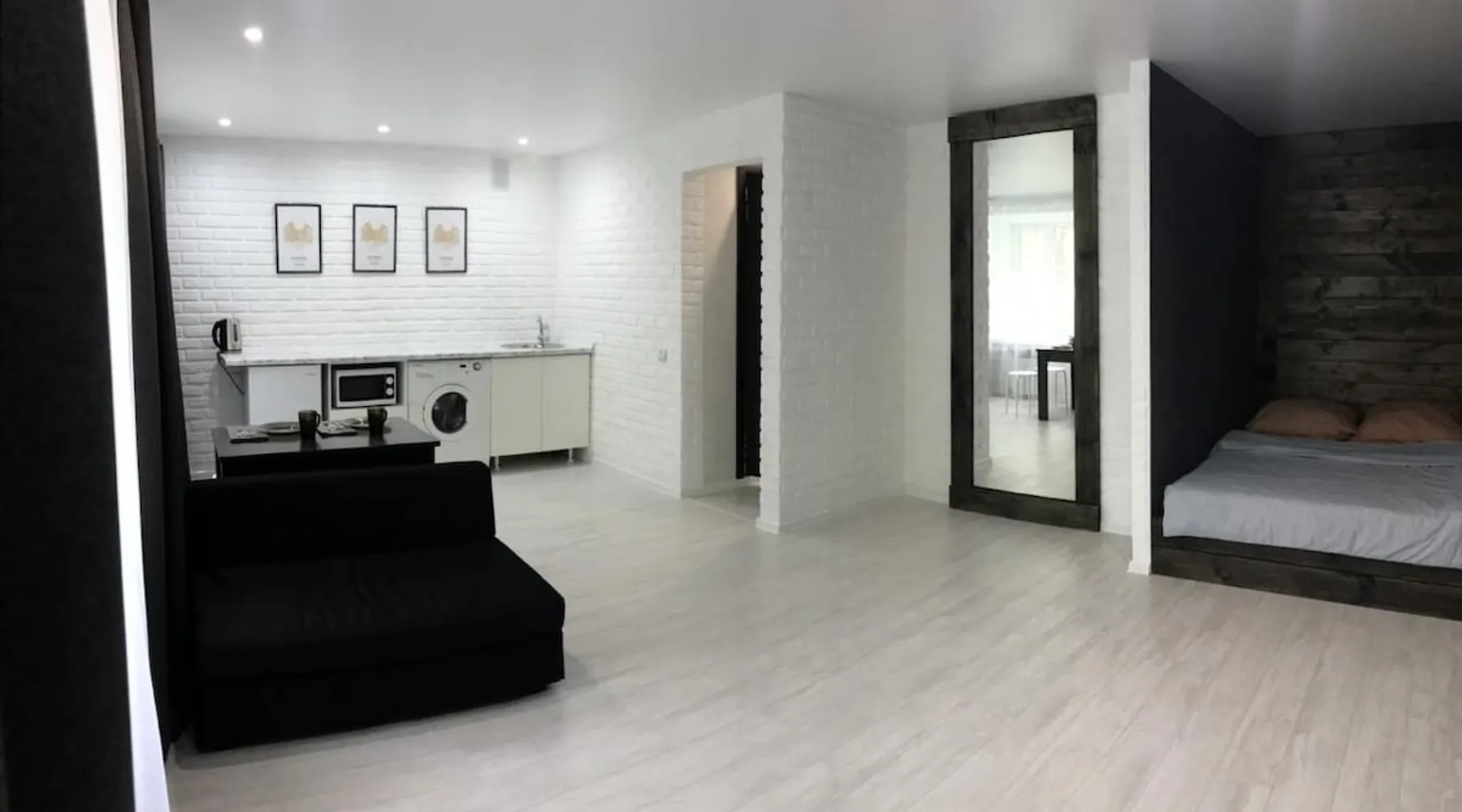 Great,very clean,cozy apartment equipped with all the necessary household appliances. The apartment is located in the very heart of a city with developed infrastructure. In close proximity to the apartment: pharmacy, parking, banks, ATM ,park, cinema, restaurant,cafes. Payment is accepted by bank transfer and cash. The accommodation includes high-speed wi-fi, cable TV, bedding, towels. Reporting documents. Not available for celebrations or parties.