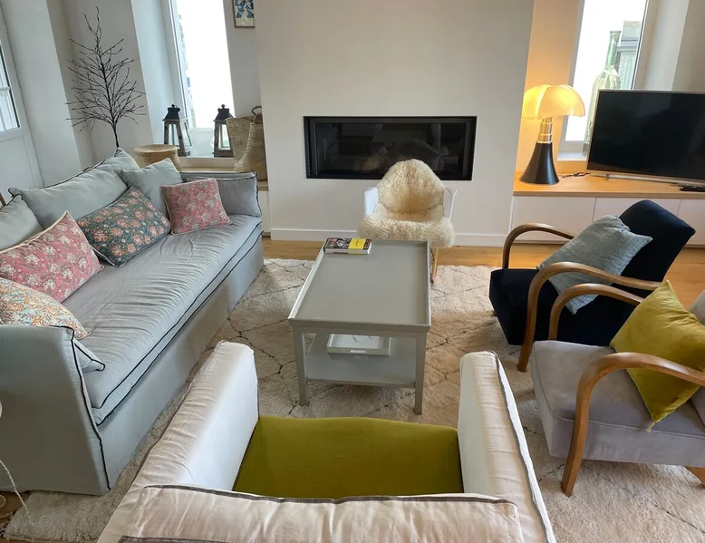 House close to shops, restaurants, beaches, historic center. House built in the 50s, 140 m2, renovated in 2020, located in the quiet area and on the side of the Frugy. You can reach the city center on foot in 8 minutes by the pedestrian path of Mount Frugy. The nearest restaurants are a 5-minute walk to Place de Locmaria and the best bakery in Quimper is at the end of the street. You park on the street, parking is free. The space The house is bright with 7 double glazed windows overlooking the living room. The kitchen is separate, with fridge, freezer, oven, induction stove, espresso machine, kettle, coffee maker. You will find a washing machine and dryer in the laundry room on the ground floor. The 3 bedrooms are upstairs with a bathroom and shower room in the master suite. Very well insulated and soundproofed house. It is furnished with antique pieces mixed with a few designer pieces. You will find my personal belongings in the closets but I will of course leave you space to store your suitcase. I prefer that you don't use the fireplace because I don't have much wood. I hope you have a pleasant stay. Guest access House with free parking, Other things to note I am concerned about the quality and cleanliness of the bed linen so I use a specialized laundry workshop to clean and iron the duvet covers, sheets, mattress protectors, pillowcases and bath towels. Registration Details 292320000540R