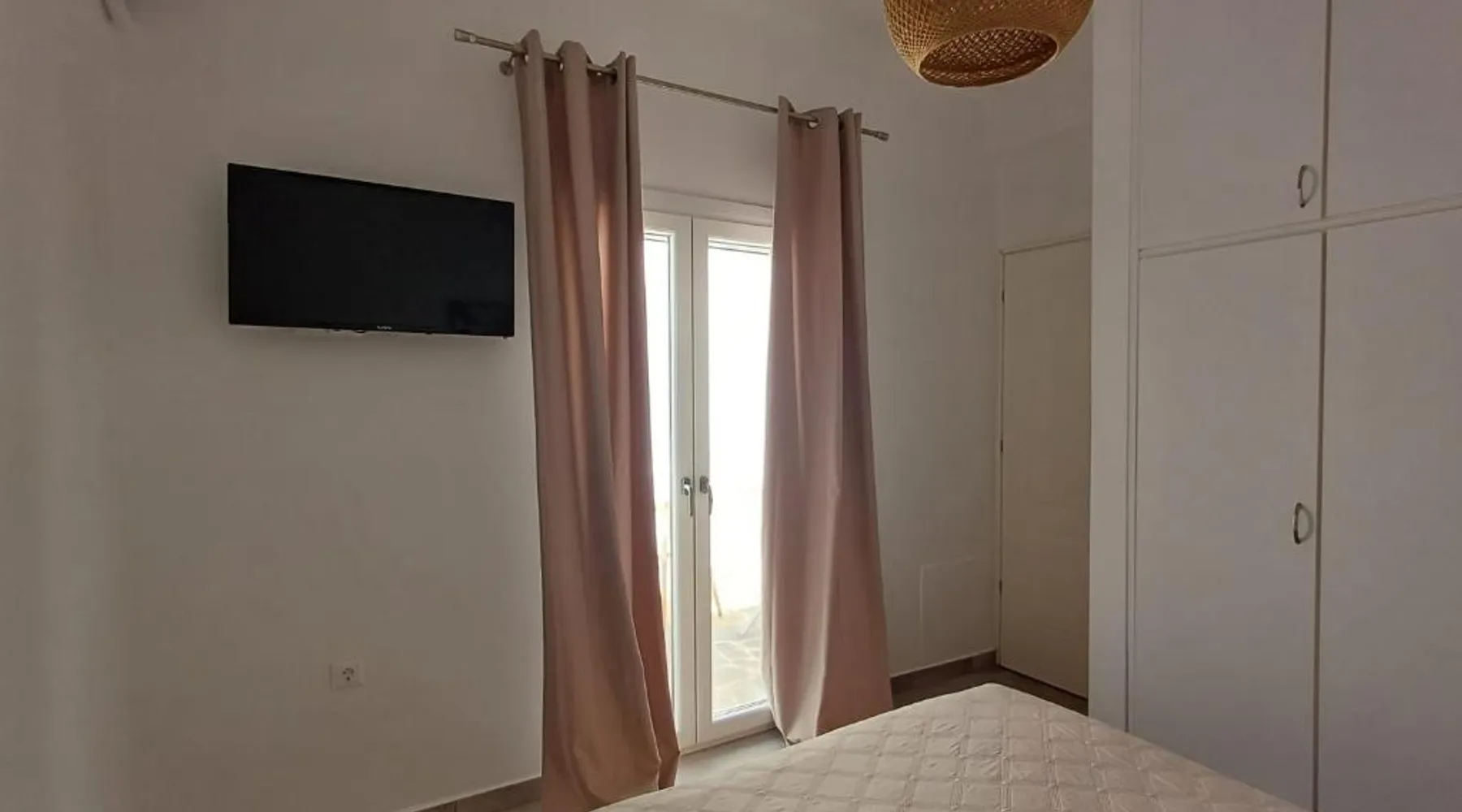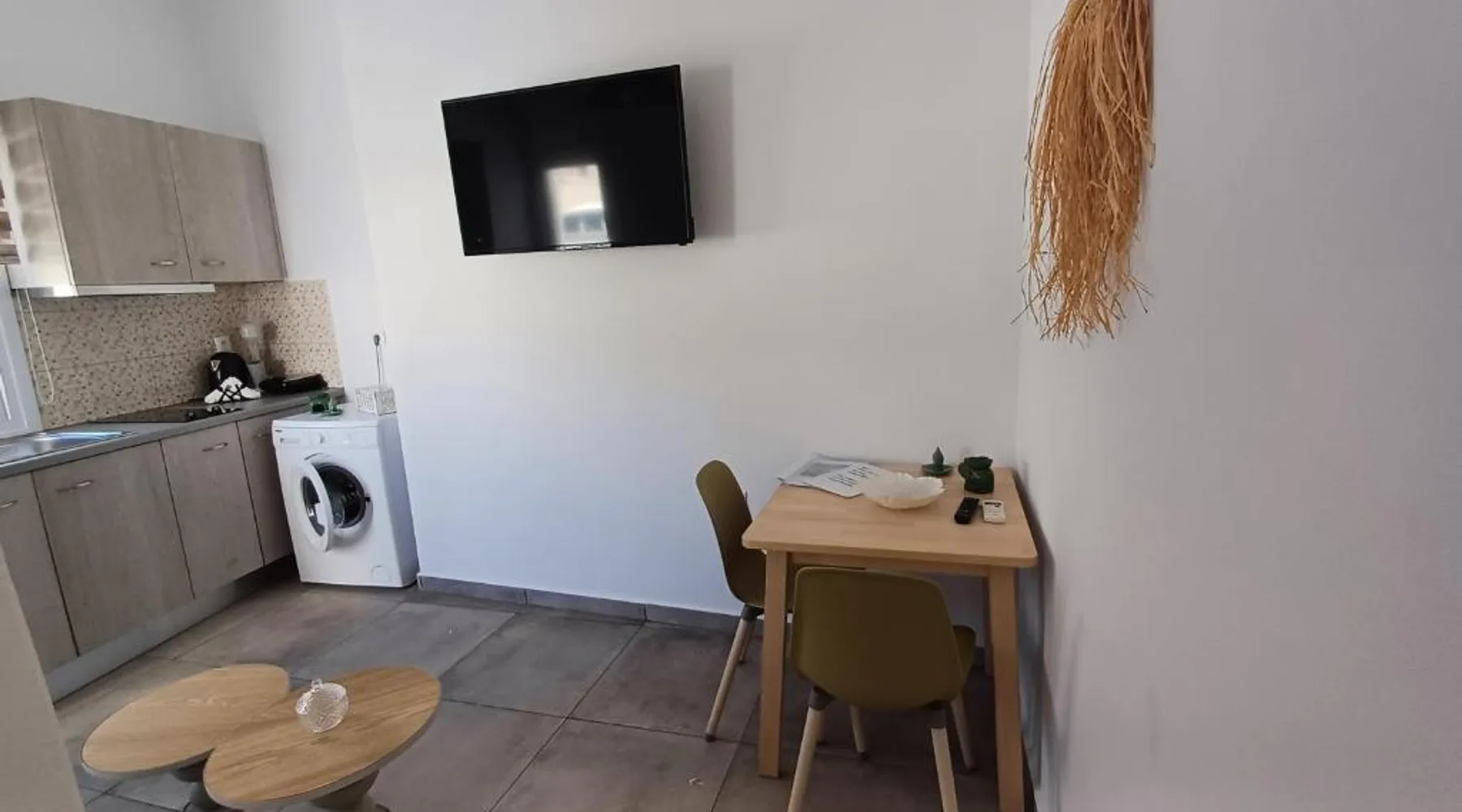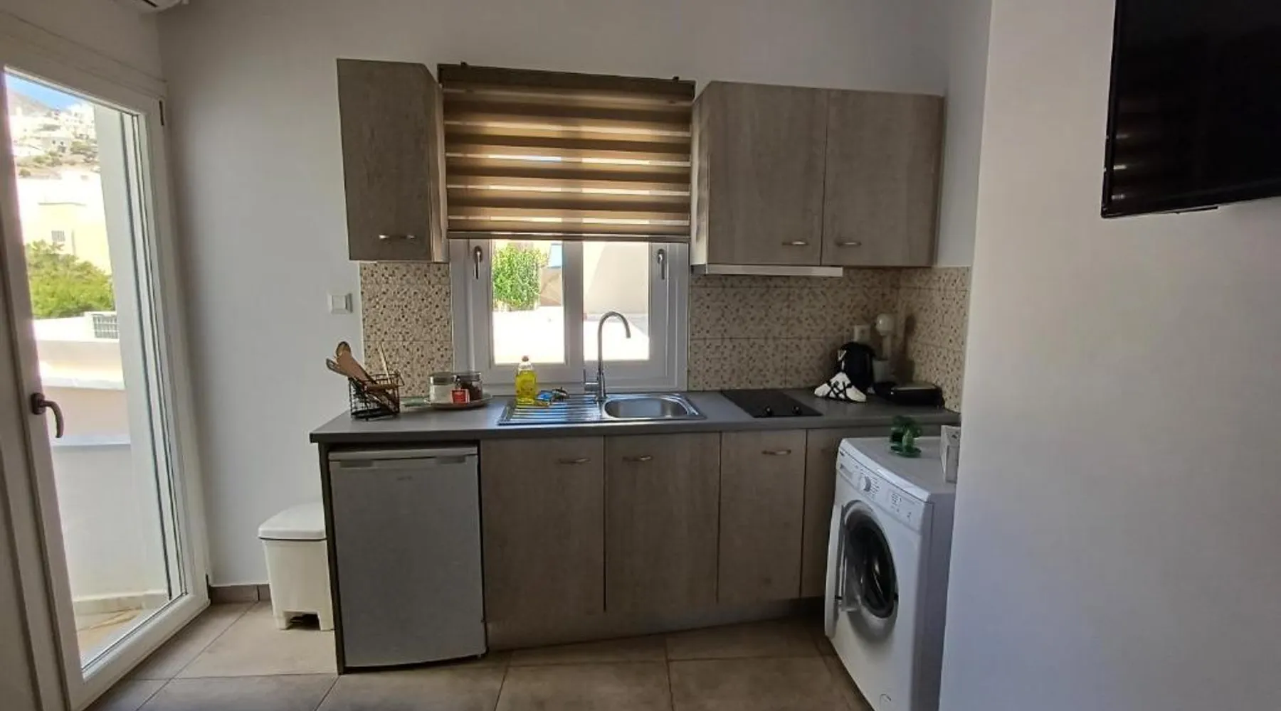 Comfortable Accommodations: Smyrnis Apartments in Ermoupoli offers a sun terrace and free WiFi. Each apartment includes air-conditioning, a private bathroom, and a fully equipped kitchen. Convenient Facilities: Guests benefit from private and express check-in and check-out services, car hire, and luggage storage. Additional amenities include a washing machine, dining table, and a balcony with a view. Prime Location: Located 2.5 mi from Syros Island National Airport, the property is close to Asteria Beach (less than 0.6 mi) and Saint Nicholas Church (8-minute walk). Nearby attractions include the Industrial Museum of Ermoupoli and Miaouli Square. Guests can make meals in the kitchen that comes with a stovetop, a refrigerator, kitchenware and an oven. The studio provides air conditioning, a washing machine, as well as a private bathroom featuring a walk-in shower and a hairdryer. The unit offers 2 beds.