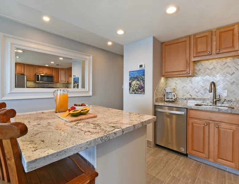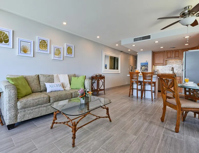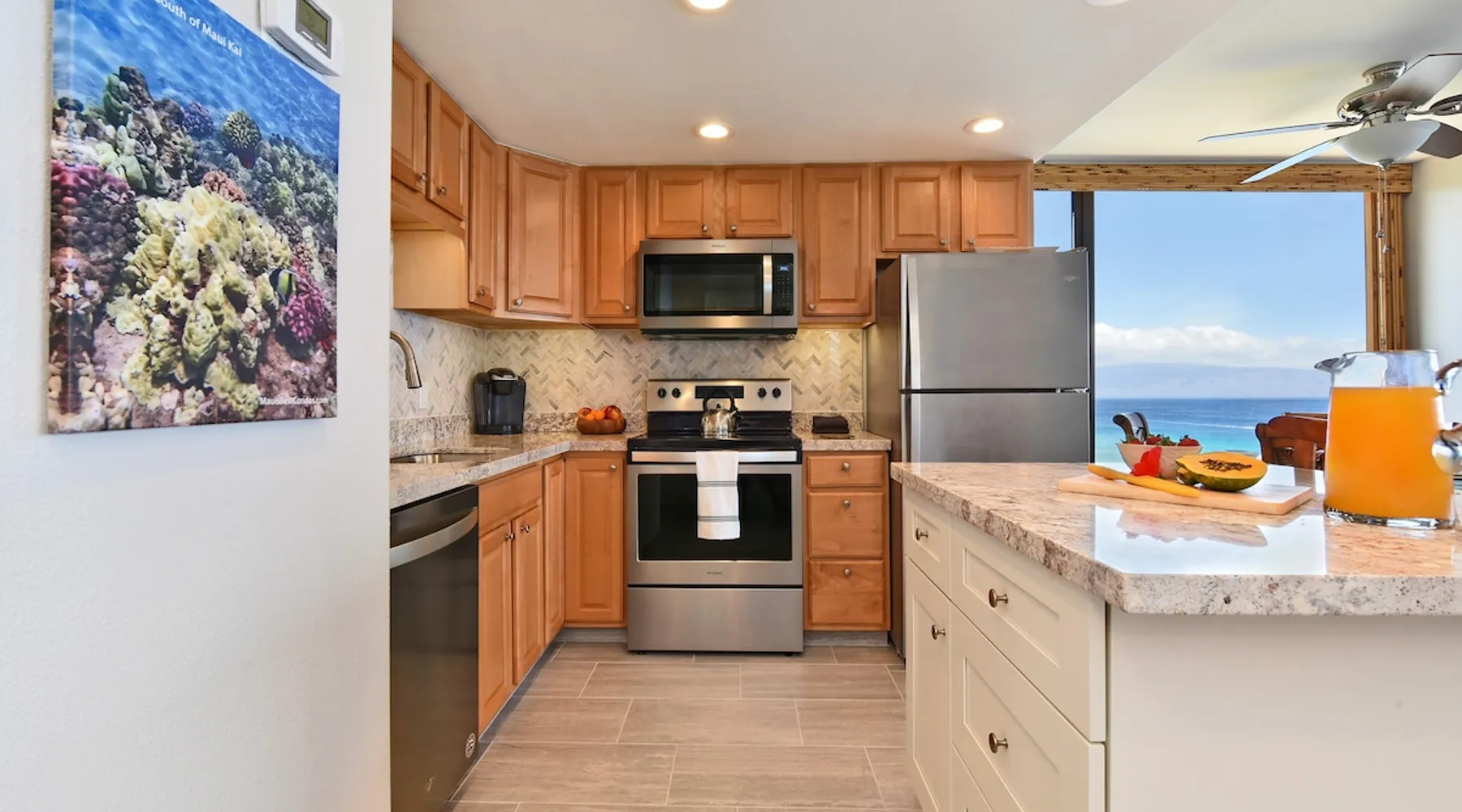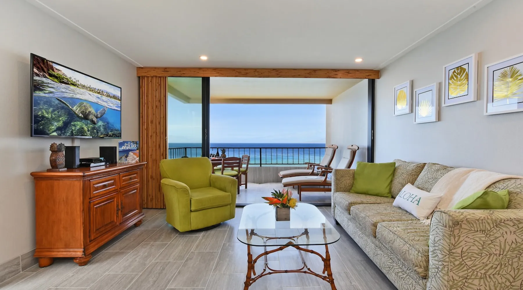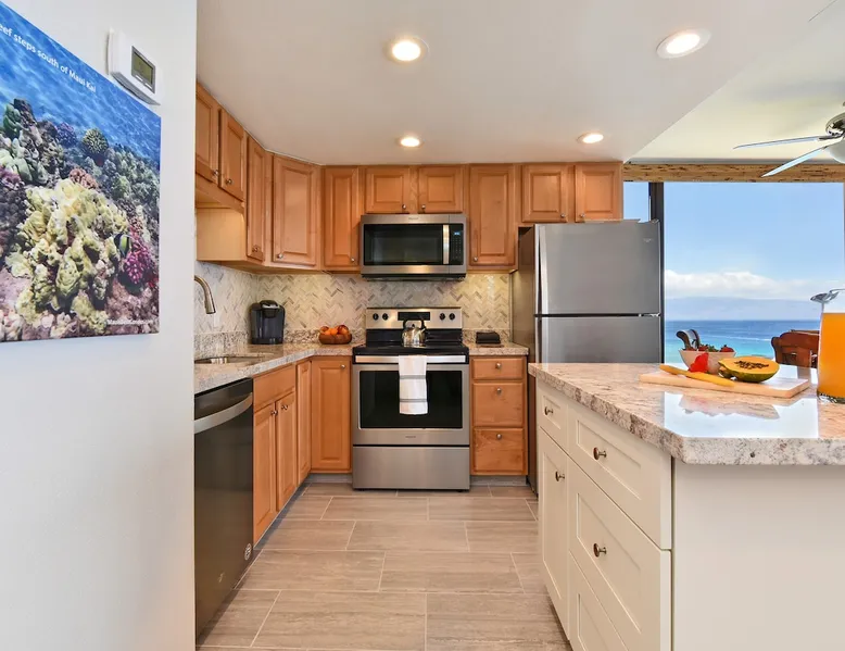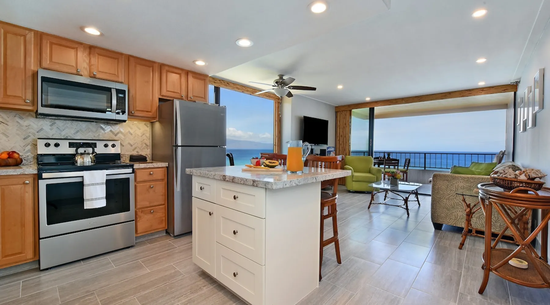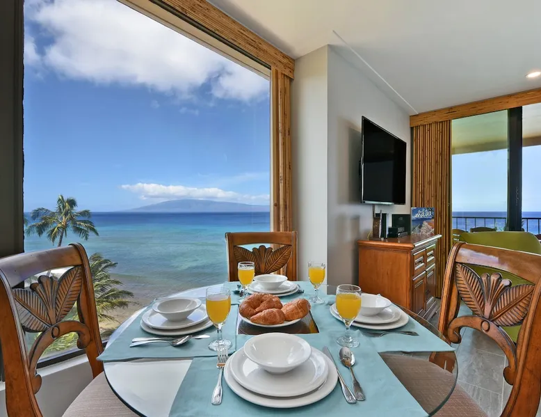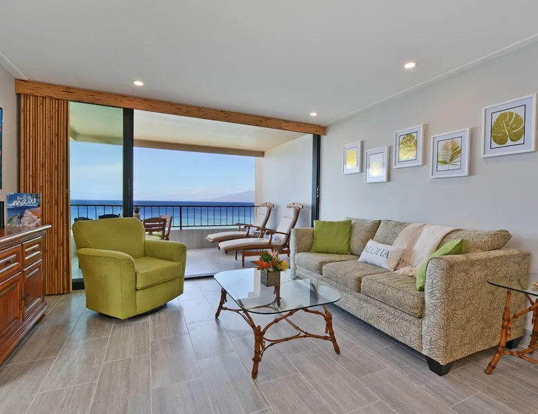 Maui Kai 601 Beautiful Spacious & Remodeled 1BR 1BA Unit with Amazing Oceanfront Views The space FREE daily activities included with your stay value up to $570! Complimentary admission, every day of your stay:* Whale Watch (seasonal), Dinner Sunset Sail, Snorkel Sail, Alpaca Farm Tour, Pineapple Farm Tour, and All Day Electric Bike Rental. (W1) *One ticket per activity per day. Additional details provided after confirmed booking. Enjoy unbeatable panoramic views from this highly desirable 6th floor oceanfront corner unit on the Kaanapali coast. Watch gorgeous sunsets over Moloka’i and Lana’i every day from the comfort of your living room. Enjoy the brand new lanai, luxurious tile throughout the condo, gorgeous granite counters and all new appliances in the kitchen. Your vacation home comes equipped with everything you will need. Just pack your suitcase and that’s it! Condo Highlights: -1 Bedroom, 1 Bathroom, Sleeps 4 guests -Central AC throughout -Direct oceanfront corner lanai furnished with an outdoor dining table and lounge chairs -King size bed -Sleeper-sofa in living room -Flat-screen TV -Fully equipped kitchen with dishwasher -Kitchen island with seating for 2 -Interior dining table with seating for 4 -Spacious bathroom with walk-in shower The Maui Kai Resort allows for ultimate enjoyment of the breathtaking direct ocean and outer island views off Honokowai Point. Positioned on the northwest coastline of Maui you can spend your days snorkeling, scuba diving, or just lounging on the shore. Maui Kai’s convenient central location is just a five minute drive north to the Napili and Kapalua Bay beach areas, or five minutes south to the Kaanapali Beach Resort area for non-stop fun in the sun! Within a short walking distance you can stop by the Honokowai Marketplace to stock up at Times Supermarket, or visit the many delicious Food Trucks set up every night just outside of the resort. Resort Highlights: -Direct ocean front with unobstructed panoramic view of the ocean and nearby islands -Heated pool and jacuzzi tub -Shared poolside gas BBQ grills & shared cabana with kitchen appliances -On-site parking included -Elevators -On-site coin operated washers and dryers on every floor for your convenience -Amazing central location -Walking distance to fabulous food truck court -Walking distance to shopping center, groceries, and urgent care facility (Doctors On Call) -Short drive to Kaanapali Beach, Napili Bay, and Kapalua Bay Minimum age of primary renter: 25 All of our guests have complimentary access to our Maui specialist and support team during their stay. We provide the following in every unit: -High Speed Internet -Linens & Towels -Iron & Board -Hair Dryer -Beach Towels -Beach Chairs -Hard Sided Cooler -Starter Kit: Starter supply of Shampoo, Conditioner, Body Wash, Lotion, Hand Soap, Dish Soap, Laundry Detergent, Dishwasher Tabs, Toilet Paper, Paper Towels, Trash Bags Arrival PRE-CHECKS: To ensure that our homes meet our standards, just prior to each check-in, our Auditors do a final inspection and a comprehensive video recording to verify the property condition will meet our guest 5 star expectations. If by chance the cleaners missed a small detail, please contact our 24x7 support line so we have an opportunity to resolve. Our continued commitment to SAFETY includes: -Monthly and annual safety audits and reviews to ensure the upkeep of all our safety standards -Our Service Managers are "Certified Short-Term Rental Safety Inspectors" through Dwell Safe -We are the only company in Hawaii and one of a few in the USA that has certified its inspectors **Safety and cleanliness procedures implemented may be adjusted in consideration of local practices, government requirements and guidance, and the situation where the condo is located. BEACHES & CRITTERS: The beach size in Hawaii varies month to month due to heavy surf, strong currents and tides. Due to Maui’s rural atmosphere you may experience the occasional rooster, as well as harmless geckos. Geckos are friendly, eat insects, and are considered good luck in Hawaii. Please don’t kill them. IMPORTANT: Although the HOA schedules regular professional pest control services, pests such as ants, roaches and rodents simply cannot be completely controlled in the tropics. Hawaii is located in a tropical climate, and insects, rodents and lizards flourish in this environment. If our guest spot more than the normal expected pests, we always make our best efforts to contact and work with the HOA to minimize your interactions with these pests. Any contact with such pests within or outside the unit does not constitute a breach of this Agreement or give Guest any right to any refund or rental adjustment. **We make no guarantee that properties adjacent to the Unit will be free from disturbances, including but not limited to noise or inconvenience from construction, traffic or other guests or neighbors. Any such disturbance shall not constitute a breach of this Agreement or give Guest any right to any refund or rental adjustment. Registration Details 440011000041, TA-030-013-8496-01