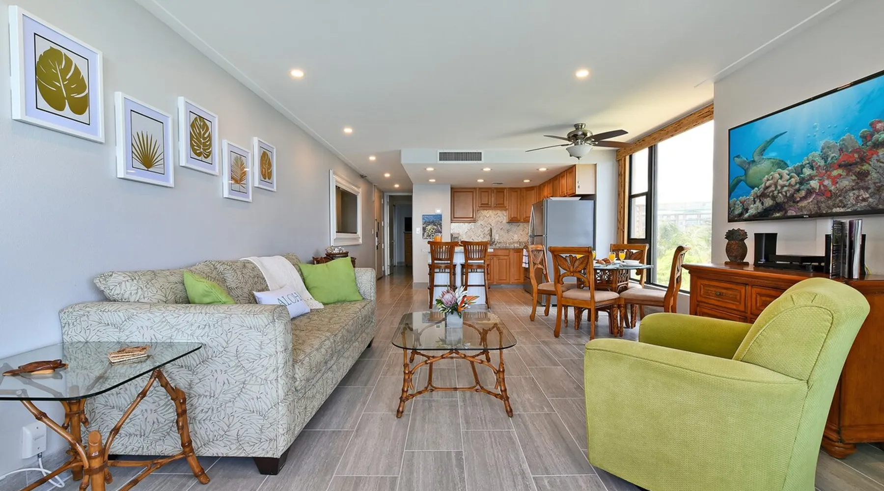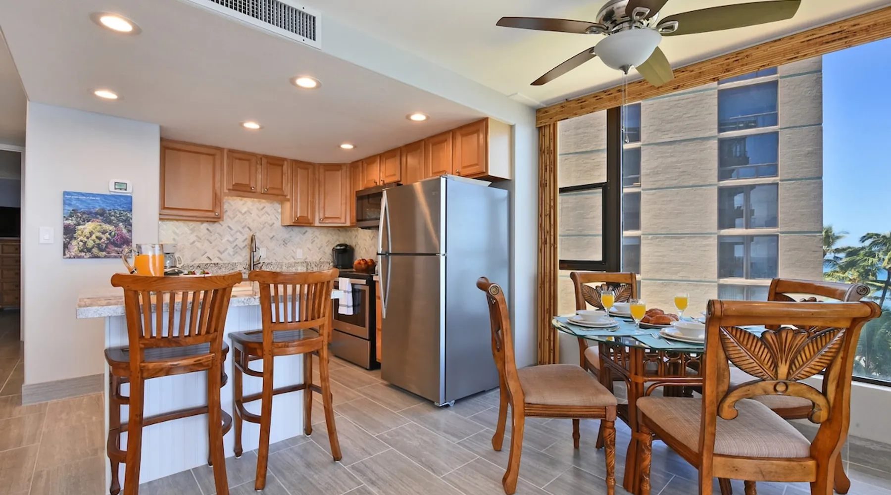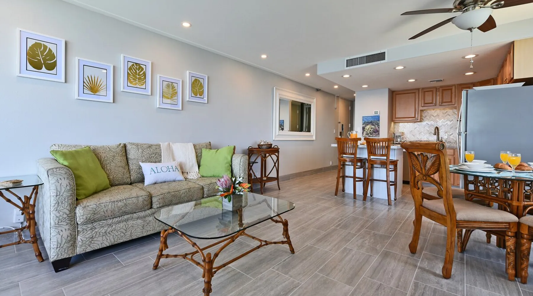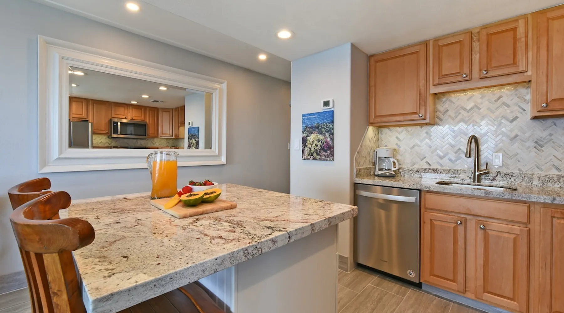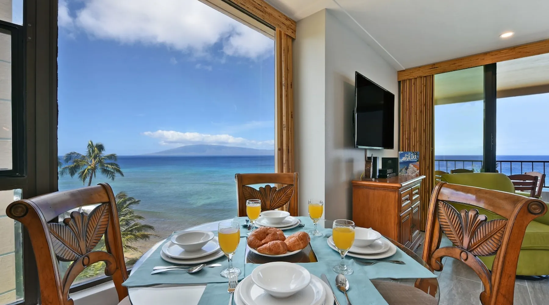 Maui Kai 601 Beautiful Spacious & Remodeled 1BR 1BA Unit with Amazing Oceanfront Views The space FREE daily activities included with your stay value up to $570! Complimentary admission, every day of your stay:* Whale Watch (seasonal), Dinner Sunset Sail, Snorkel Sail, Alpaca Farm Tour, Pineapple Farm Tour, and All Day Electric Bike Rental. (W1) *One ticket per activity per day. Additional details provided after confirmed booking. Enjoy unbeatable panoramic views from this highly desirable 6th floor oceanfront corner unit on the Kaanapali coast. Watch gorgeous sunsets over Moloka’i and Lana’i every day from the comfort of your living room. Enjoy the brand new lanai, luxurious tile throughout the condo, gorgeous granite counters and all new appliances in the kitchen. Your vacation home comes equipped with everything you will need. Just pack your suitcase and that’s it! Condo Highlights: -1 Bedroom, 1 Bathroom, Sleeps 4 guests -Central AC throughout -Direct oceanfront corner lanai furnished with an outdoor dining table and lounge chairs -King size bed -Sleeper-sofa in living room -Flat-screen TV -Fully equipped kitchen with dishwasher -Kitchen island with seating for 2 -Interior dining table with seating for 4 -Spacious bathroom with walk-in shower The Maui Kai Resort allows for ultimate enjoyment of the breathtaking direct ocean and outer island views off Honokowai Point. Positioned on the northwest coastline of Maui you can spend your days snorkeling, scuba diving, or just lounging on the shore. Maui Kai’s convenient central location is just a five minute drive north to the Napili and Kapalua Bay beach areas, or five minutes south to the Kaanapali Beach Resort area for non-stop fun in the sun! Within a short walking distance you can stop by the Honokowai Marketplace to stock up at Times Supermarket, or visit the many delicious Food Trucks set up every night just outside of the resort. Resort Highlights: -Direct ocean front with unobstructed panoramic view of the ocean and nearby islands -Heated pool and jacuzzi tub -Shared poolside gas BBQ grills & shared cabana with kitchen appliances -On-site parking included -Elevators -On-site coin operated washers and dryers on every floor for your convenience -Amazing central location -Walking distance to fabulous food truck court -Walking distance to shopping center, groceries, and urgent care facility (Doctors On Call) -Short drive to Kaanapali Beach, Napili Bay, and Kapalua Bay Minimum age of primary renter: 25 All of our guests have complimentary access to our Maui specialist and support team during their stay. We provide the following in every unit: -High Speed Internet -Linens & Towels -Iron & Board -Hair Dryer -Beach Towels -Beach Chairs -Hard Sided Cooler -Starter Kit: Starter supply of Shampoo, Conditioner, Body Wash, Lotion, Hand Soap, Dish Soap, Laundry Detergent, Dishwasher Tabs, Toilet Paper, Paper Towels, Trash Bags Arrival PRE-CHECKS: To ensure that our homes meet our standards, just prior to each check-in, our Auditors do a final inspection and a comprehensive video recording to verify the property condition will meet our guest 5 star expectations. If by chance the cleaners missed a small detail, please contact our 24x7 support line so we have an opportunity to resolve. Our continued commitment to SAFETY includes: -Monthly and annual safety audits and reviews to ensure the upkeep of all our safety standards -Our Service Managers are "Certified Short-Term Rental Safety Inspectors" through Dwell Safe -We are the only company in Hawaii and one of a few in the USA that has certified its inspectors **Safety and cleanliness procedures implemented may be adjusted in consideration of local practices, government requirements and guidance, and the situation where the condo is located. BEACHES & CRITTERS: The beach size in Hawaii varies month to month due to heavy surf, strong currents and tides. Due to Maui’s rural atmosphere you may experience the occasional rooster, as well as harmless geckos. Geckos are friendly, eat insects, and are considered good luck in Hawaii. Please don’t kill them. IMPORTANT: Although the HOA schedules regular professional pest control services, pests such as ants, roaches and rodents simply cannot be completely controlled in the tropics. Hawaii is located in a tropical climate, and insects, rodents and lizards flourish in this environment. If our guest spot more than the normal expected pests, we always make our best efforts to contact and work with the HOA to minimize your interactions with these pests. Any contact with such pests within or outside the unit does not constitute a breach of this Agreement or give Guest any right to any refund or rental adjustment. **We make no guarantee that properties adjacent to the Unit will be free from disturbances, including but not limited to noise or inconvenience from construction, traffic or other guests or neighbors. Any such disturbance shall not constitute a breach of this Agreement or give Guest any right to any refund or rental adjustment. Registration Details 440011000041, TA-030-013-8496-01