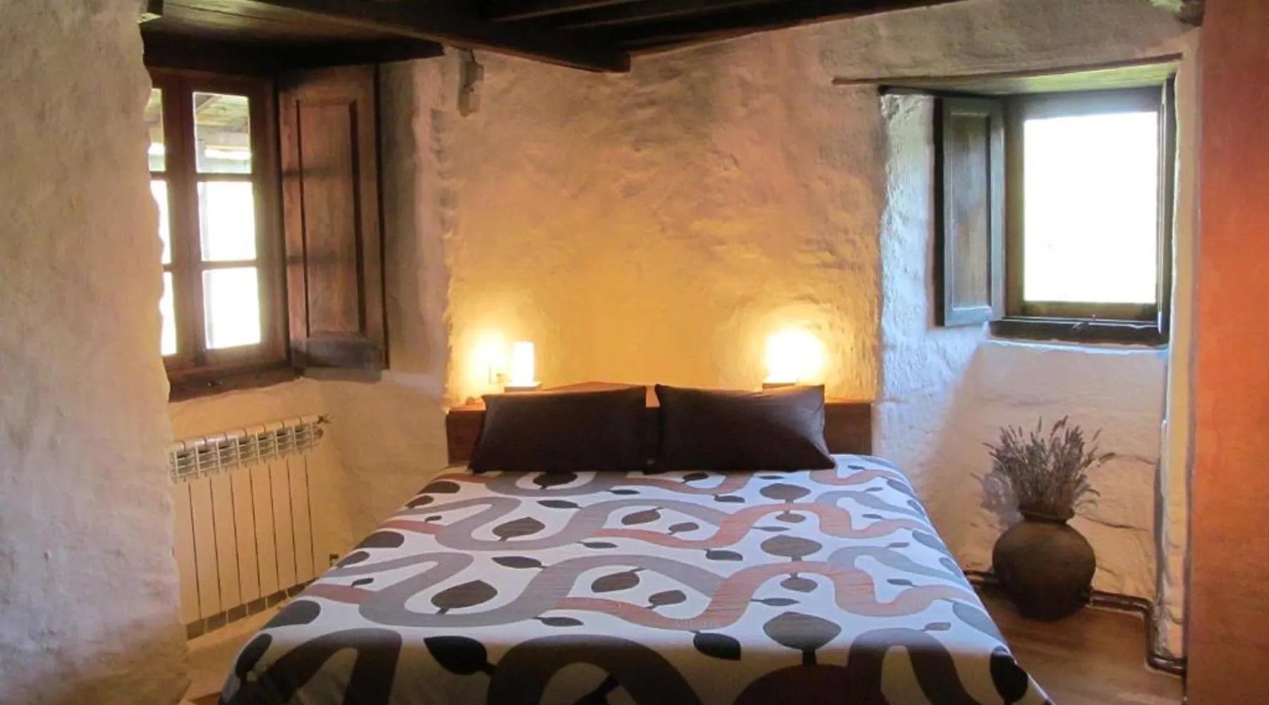 Elegant Country House in La Teijeira: Casa do Solpor offers a serene country house experience in La Teijeira, Spain. Guests enjoy a beautiful garden and a spacious terrace, perfect for relaxation. Comfortable Accommodations: The property features family rooms with parquet floors and soundproofing. Each room includes a balcony or patio, ensuring stunning garden and mountain views. Modern Amenities: Free WiFi is available throughout the property. The kitchen is equipped with a refrigerator, microwave, and coffee machine. Additional amenities include a TV, soundproofing, and a wardrobe. Activities and Nearby Attractions: Guests can participate in yoga classes or simply unwind in the outdoor dining area. Sil Canyon is 7.5 mi away, Manzaneda Ski & Mountain Resort 29 mi, and the Auditorium - Exhibition Center 31 mi from the property. Vigo Airport is 88 mi distant. This holiday home consists of 1 living room, 1 separate bedroom and 1 bathroom with a shower and a bidet. The well-fitted kitchen features a refrigerator, kitchenware, a microwave and a tea and coffee maker. Featuring a terrace with garden views, this holiday home also provides soundproof walls and a flat-screen TV. The unit offers 3 beds.