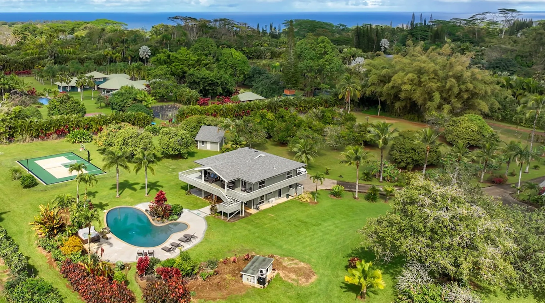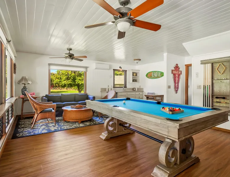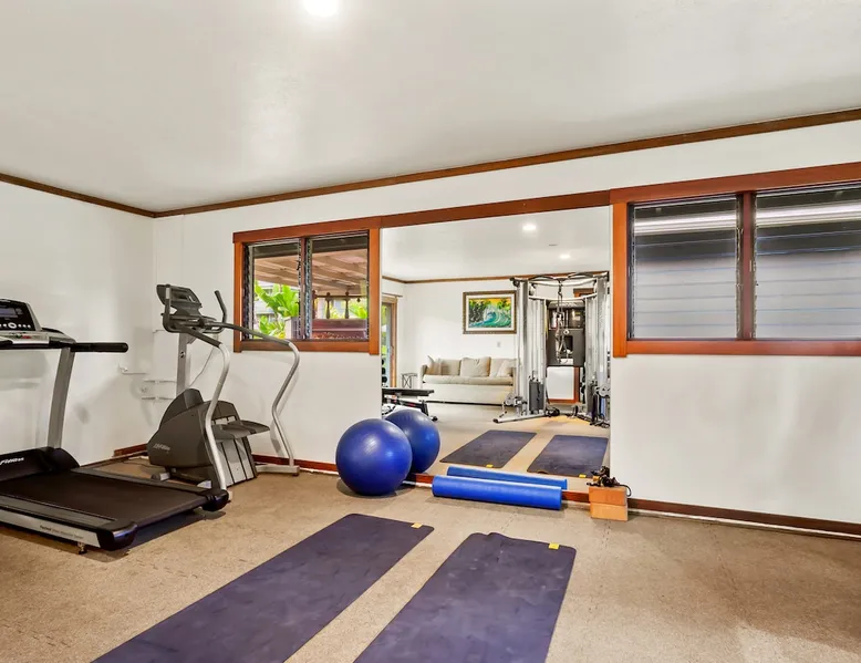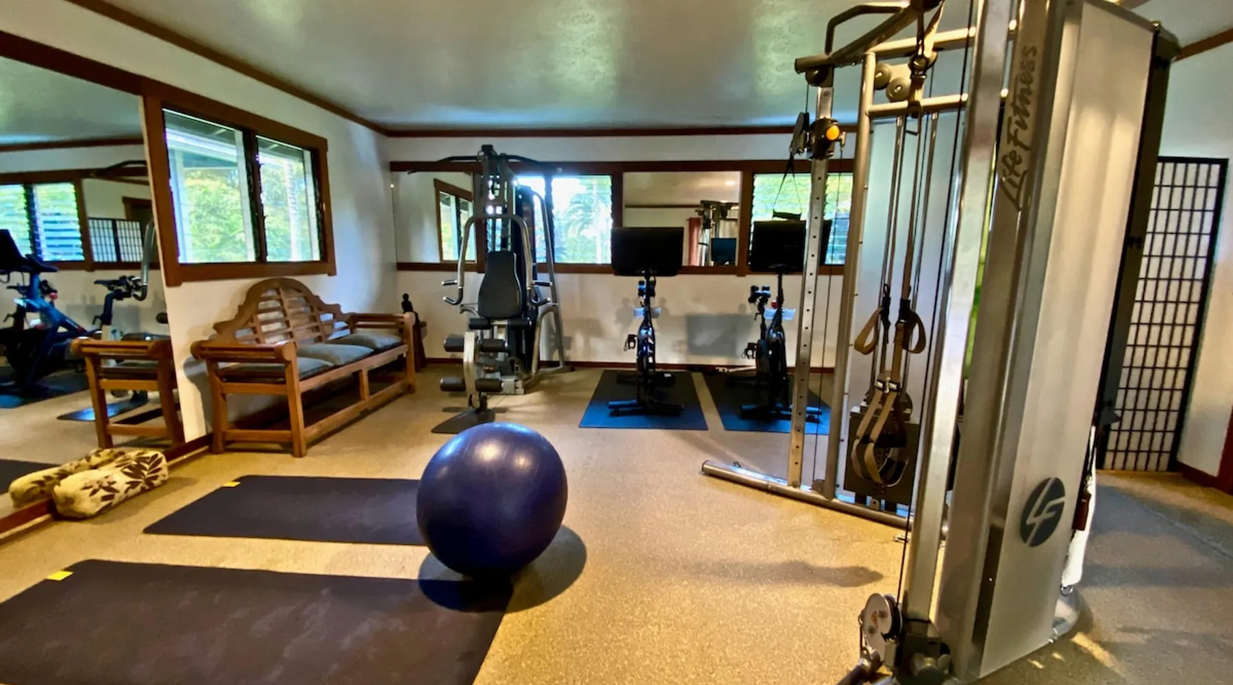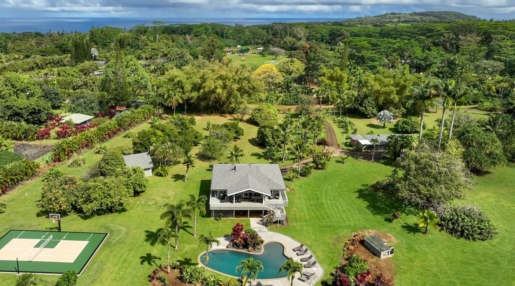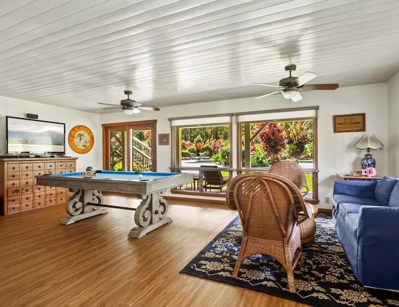 Kauai's #1 Rental for large groups. Huge Pool, Hot Springs Hot Tub, Full Private Gym, Peloton, Air Conditioning in Every Room, Pool Table, Ping Pong, 5 Acres, Fruit Trees, 5+ Bedrooms, Sleeps 10 - 15, Miles Of Trails Directly Behind Home...Minutes From Kalihiwai Bay, Secret Beach, Anini beach and Hanalei Bay. Exclusively Managed by "House Of Dreams Kauai" with over 60 FIVE STAR Reviews online. Look up House Of Dreams Kauai and read our many reviews. The space Because of the many features Ke Aloha offers, all guests that reserve Ke Aloha Estate on Airbnb must sign our rental agreement which indemnifies owners and agents and describes all terms and conditions governing this Kauai vacation home. Guest must also comply with all terms and conditions and supply House Of Dreams Kauai with the names of all occupants as well as a valid email address, on island phone contact and home address. Feel free to contact us prior to reserving if you wish to review the agreement. Rates are based on 10 guests. Additional fees are charged for larger groups. The fee is $75 per person, per night plus tax. Kauai’s #1 rental is now even better. The current photos do not show the newest upgrades, which include brand new multi-level decking with shaded areas, refinished pool decking, and resurfaced garage, kitchen renovation, 2 bathrooms converted to walk-in showers, new furniture, and new art provided by Aaron Feinberg Gallery in Hanalei. Photos should be coming soon. Peak Holiday and Summer Seasons have a 7 night minimum. We will consider shorter stays when it aligns with our calendar and surrounding reservations. Kauai County Requirements TVNC - 4267 - TA-105-498-4192-01 24/7 On Island PN-808-755,5869 Glenn **THIS HOME IS LOCATED IN A TSUNAMI ZONE** Ke Aloha is owned and managed by "House Of Dreams Kauai" rentals. Look us up so that you can read the many reviews we have about this home and our customer service. With 70 FIVE STAR reviews online, you will feel quite comfortable placing your trust in our hands. PRIVATE GYM with Peloton Bike, Precor/Icarian Smith Machine + 550 Pound Free Weights. Precor Icarian FTS Functional Training Workstation. These are the highest quality commercial machines available. From the moment you set foot on Ke Aloha's beautiful grounds, you will discover something truly special. Your five acres of paradise will envelop you in a warm embrace, inviting you to leave behind the hustle and bustle of everyday life and immerse yourself in the serenity of Kauai. In this private sanctuary, you will find the perfect backdrop for creating cherished memories together. The gentle sounds of the waterfall and the sight of Koi gracefully swimming in the pond will become the soundtrack to your days, while the breathtaking Namahana Mountain range serves as your backdrop. With each sunrise, you awaken in fully air-conditioned rooms, feeling like you were in a dream that you never wanted to end. The amenities are nothing short of extraordinary. The private gym, with Icarian Equipment, will become your invitation to stay active, while the spacious living areas provide the ideal setting for laughter and connection with loved ones. Whether a friendly game of ping pong and pool or a moment of stillness on the meditation platform, every corner of Ke Aloha Estate reverberates with joy and togetherness. As you explore the miles of hiking trails that seamlessly blend nature with adventure, you might feel invigorated and at peace. The Stone Dam and its stunning waterfall park will become a favorite retreat, where you can let your minds wander and reconnect with each other and the beauty of Kauai. A recent guest wrote the following. "Your estate has given us so much more than a place to stay; it has gifted us a sense of abundance and tranquility. You have created an oasis that serves as our “Home Away From Home,” providing a haven for our family to gather, celebrate, and simply be together, free from the crowded chaos of the outside world. As we reflect on our time spent within your magical embrace, we are filled with gratitude. Thank you for offering us a glimpse of the Aloha Spirit, for accommodating our every need, and for allowing us to make lasting memories in this special place. Your dedication to maintaining the highest standards shines through and is felt in every detail. We look forward to the day we can return to your enchanting paradise and continue our journey of love, laughter, and connection. Until then, we will carry the spirit of Ke Aloha in our hearts, reminding us of the beauty and abundance that awaits us." Ke Aloha's 5 acres provide everything you need to experience Kauai in your very own "Home Away From Home". We understand the importance of providing an alternative to crowded hotels or the risks of dining in jam-packed restaurants. What better way to travel safely than having your very own 5-acre private resort, pool, gym, pickleball, and miles of hiking trails, accessible from your very own backyard? Bedroom 1 - King and Ensuite Bathroom (Upstairs) Bedroom 2 - King Shared Full Bathroom with Bedroom 3 (Up) Bedroom 3 - King (Up) Additional Half Bath (Up) Bedroom 4 - Queen Shared Full Bathroom with Bedroom 5 (Lower) Bedroom 5 - Twin over Full Bunkbed (Lower) Additional Queen Bed in a separate area with adjacent Full Bathroom, extra queen sofa bed - Available By Request Only Outdoor Shower Larger groups of up to 16 may be considered pending owner approval. Additional fees apply. 7-night minimum peak & holiday • 5-night minimum all off-peak weeks WEDDINGS - For weddings, we require a 7-night rental. There is a $3500 site fee in addition to the rent. We allow weddings of up to 50 guests. Additional terms and conditions apply. POOL HEATING IS ADDITIONAL - Currently offered at $100 Per Day + Tax. A mid-stay cleaning at $50 per hour is required for stays over 8 nights. Mid-stay cleanings range between $140 to $280 + GET Tax. Fees are as follows... Hawaii State TAT/GET Taxes are 17.96% - 18.7