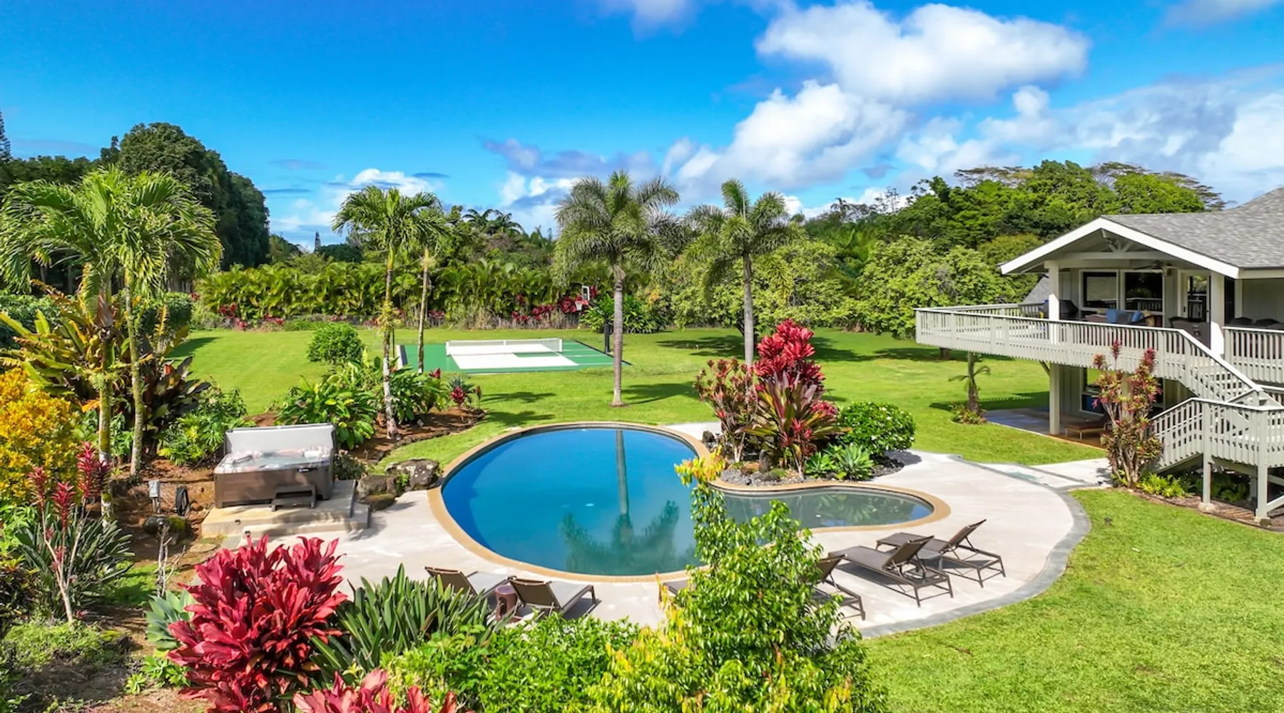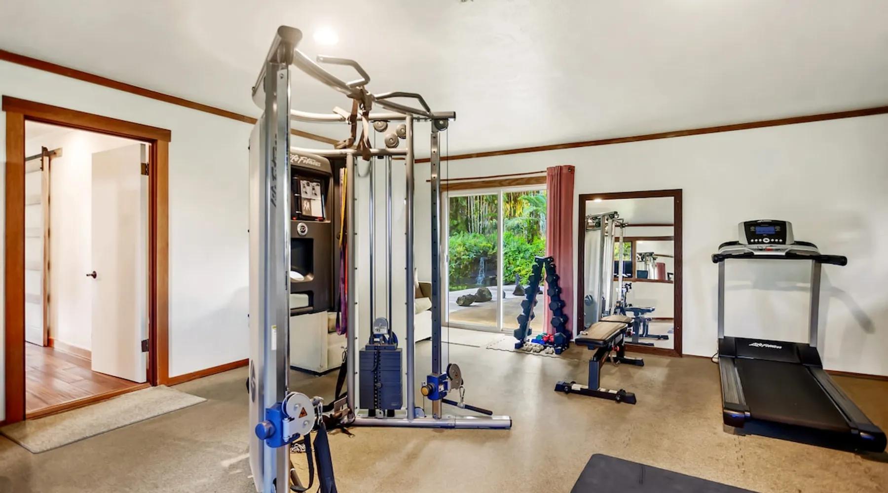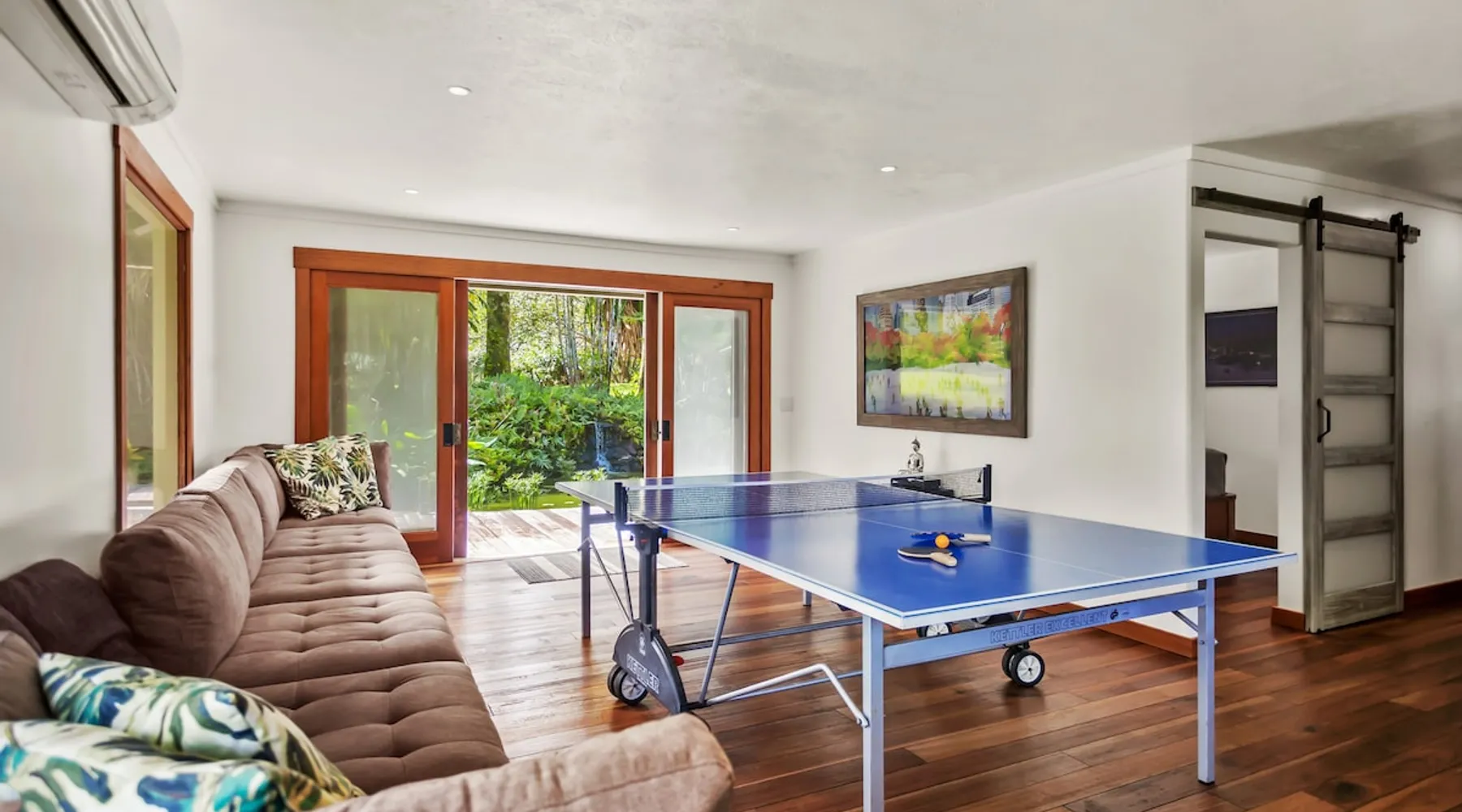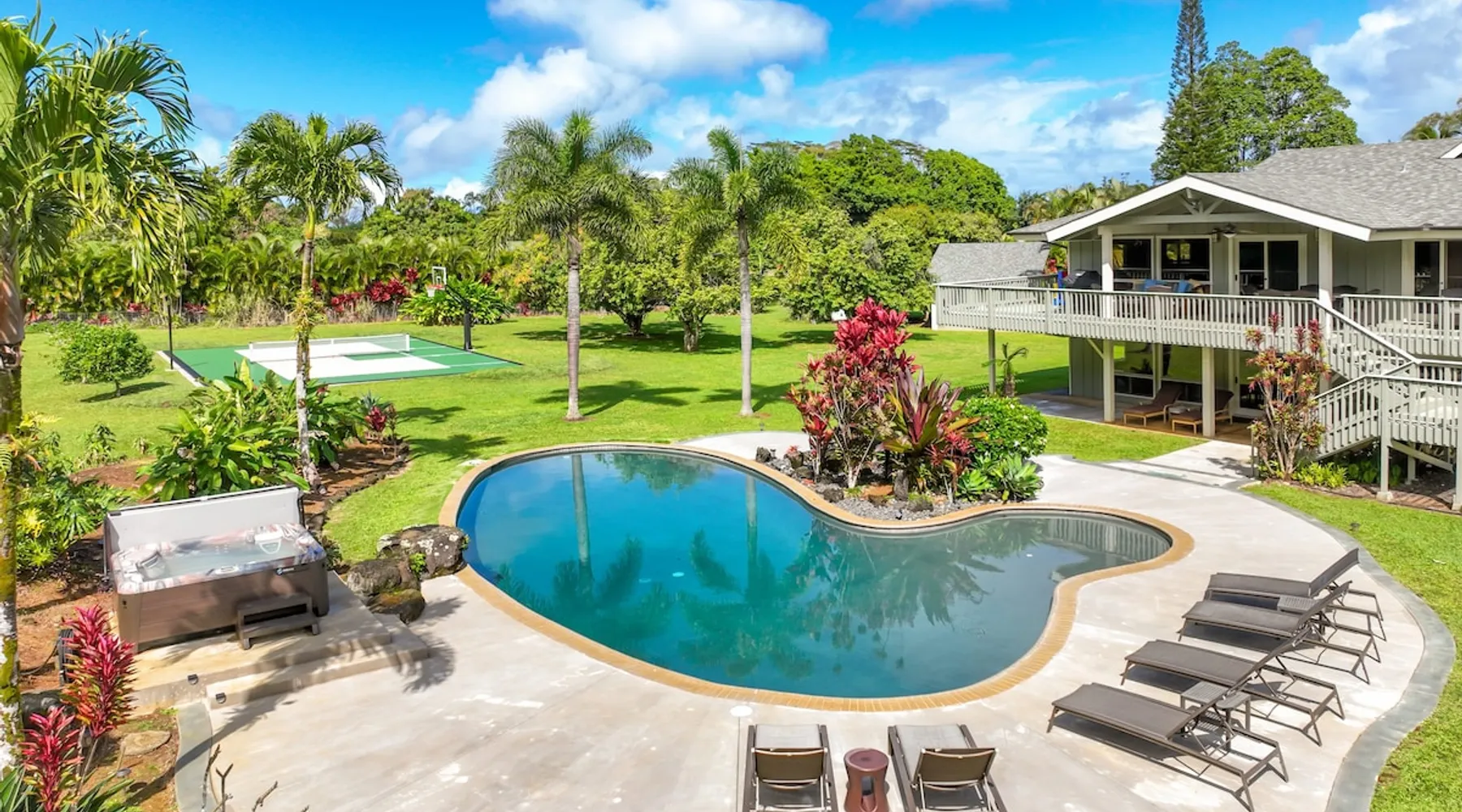Kauai's #1 Rental for large groups. Huge Pool, Hot Springs Hot Tub, Full Private Gym, Peloton, Air Conditioning in Every Room, Pool Table, Ping Pong, 5 Acres, Fruit Trees, 5+ Bedrooms, Sleeps 10 - 15, Miles Of Trails Directly Behind Home...Minutes From Kalihiwai Bay, Secret Beach, Anini beach and Hanalei Bay. Exclusively Managed by "House Of Dreams Kauai" with over 60 FIVE STAR Reviews online. Look up House Of Dreams Kauai and read our many reviews. The space Because of the many features Ke Aloha offers, all guests that reserve Ke Aloha Estate on Airbnb must sign our rental agreement which indemnifies owners and agents and describes all terms and conditions governing this Kauai vacation home. Guest must also comply with all terms and conditions and supply House Of Dreams Kauai with the names of all occupants as well as a valid email address, on island phone contact and home address. Feel free to contact us prior to reserving if you wish to review the agreement. Rates are based on 10 guests. Additional fees are charged for larger groups. The fee is $75 per person, per night plus tax. Kauai’s #1 rental is now even better. The current photos do not show the newest upgrades, which include brand new multi-level decking with shaded areas, refinished pool decking, and resurfaced garage, kitchen renovation, 2 bathrooms converted to walk-in showers, new furniture, and new art provided by Aaron Feinberg Gallery in Hanalei. Photos should be coming soon. Peak Holiday and Summer Seasons have a 7 night minimum. We will consider shorter stays when it aligns with our calendar and surrounding reservations. Kauai County Requirements TVNC - 4267 - TA-105-498-4192-01 24/7 On Island PN-808-755,5869 Glenn **THIS HOME IS LOCATED IN A TSUNAMI ZONE** Ke Aloha is owned and managed by "House Of Dreams Kauai" rentals. Look us up so that you can read the many reviews we have about this home and our customer service. With 70 FIVE STAR reviews online, you will feel quite comfortable placing your trust in our hands. PRIVATE GYM with Peloton Bike, Precor/Icarian Smith Machine + 550 Pound Free Weights. Precor Icarian FTS Functional Training Workstation. These are the highest quality commercial machines available. From the moment you set foot on Ke Aloha's beautiful grounds, you will discover something truly special. Your five acres of paradise will envelop you in a warm embrace, inviting you to leave behind the hustle and bustle of everyday life and immerse yourself in the serenity of Kauai. In this private sanctuary, you will find the perfect backdrop for creating cherished memories together. The gentle sounds of the waterfall and the sight of Koi gracefully swimming in the pond will become the soundtrack to your days, while the breathtaking Namahana Mountain range serves as your backdrop. With each sunrise, you awaken in fully air-conditioned rooms, feeling like you were in a dream that you never wanted to end. The amenities are nothing short of extraordinary. The private gym, with Icarian Equipment, will become your invitation to stay active, while the spacious living areas provide the ideal setting for laughter and connection with loved ones. Whether a friendly game of ping pong and pool or a moment of stillness on the meditation platform, every corner of Ke Aloha Estate reverberates with joy and togetherness. As you explore the miles of hiking trails that seamlessly blend nature with adventure, you might feel invigorated and at peace. The Stone Dam and its stunning waterfall park will become a favorite retreat, where you can let your minds wander and reconnect with each other and the beauty of Kauai. A recent guest wrote the following. "Your estate has given us so much more than a place to stay; it has gifted us a sense of abundance and tranquility. You have created an oasis that serves as our “Home Away From Home,” providing a haven for our family to gather, celebrate, and simply be together, free from the crowded chaos of the outside world. As we reflect on our time spent within your magical embrace, we are filled with gratitude. Thank you for offering us a glimpse of the Aloha Spirit, for accommodating our every need, and for allowing us to make lasting memories in this special place. Your dedication to maintaining the highest standards shines through and is felt in every detail. We look forward to the day we can return to your enchanting paradise and continue our journey of love, laughter, and connection. Until then, we will carry the spirit of Ke Aloha in our hearts, reminding us of the beauty and abundance that awaits us." Ke Aloha's 5 acres provide everything you need to experience Kauai in your very own "Home Away From Home". We understand the importance of providing an alternative to crowded hotels or the risks of dining in jam-packed restaurants. What better way to travel safely than having your very own 5-acre private resort, pool, gym, pickleball, and miles of hiking trails, accessible from your very own backyard? Bedroom 1 - King and Ensuite Bathroom (Upstairs) Bedroom 2 - King Shared Full Bathroom with Bedroom 3 (Up) Bedroom 3 - King (Up) Additional Half Bath (Up) Bedroom 4 - Queen Shared Full Bathroom with Bedroom 5 (Lower) Bedroom 5 - Twin over Full Bunkbed (Lower) Additional Queen Bed in a separate area with adjacent Full Bathroom, extra queen sofa bed - Available By Request Only Outdoor Shower Larger groups of up to 16 may be considered pending owner approval. Additional fees apply. 7-night minimum peak & holiday • 5-night minimum all off-peak weeks WEDDINGS - For weddings, we require a 7-night rental. There is a $3500 site fee in addition to the rent. We allow weddings of up to 50 guests. Additional terms and conditions apply. POOL HEATING IS ADDITIONAL - Currently offered at $100 Per Day + Tax. A mid-stay cleaning at $50 per hour is required for stays over 8 nights. Mid-stay cleanings range between $140 to $280 + GET Tax. Fees are as follows... Hawaii State TAT/GET Taxes are 17.96% - 18.7