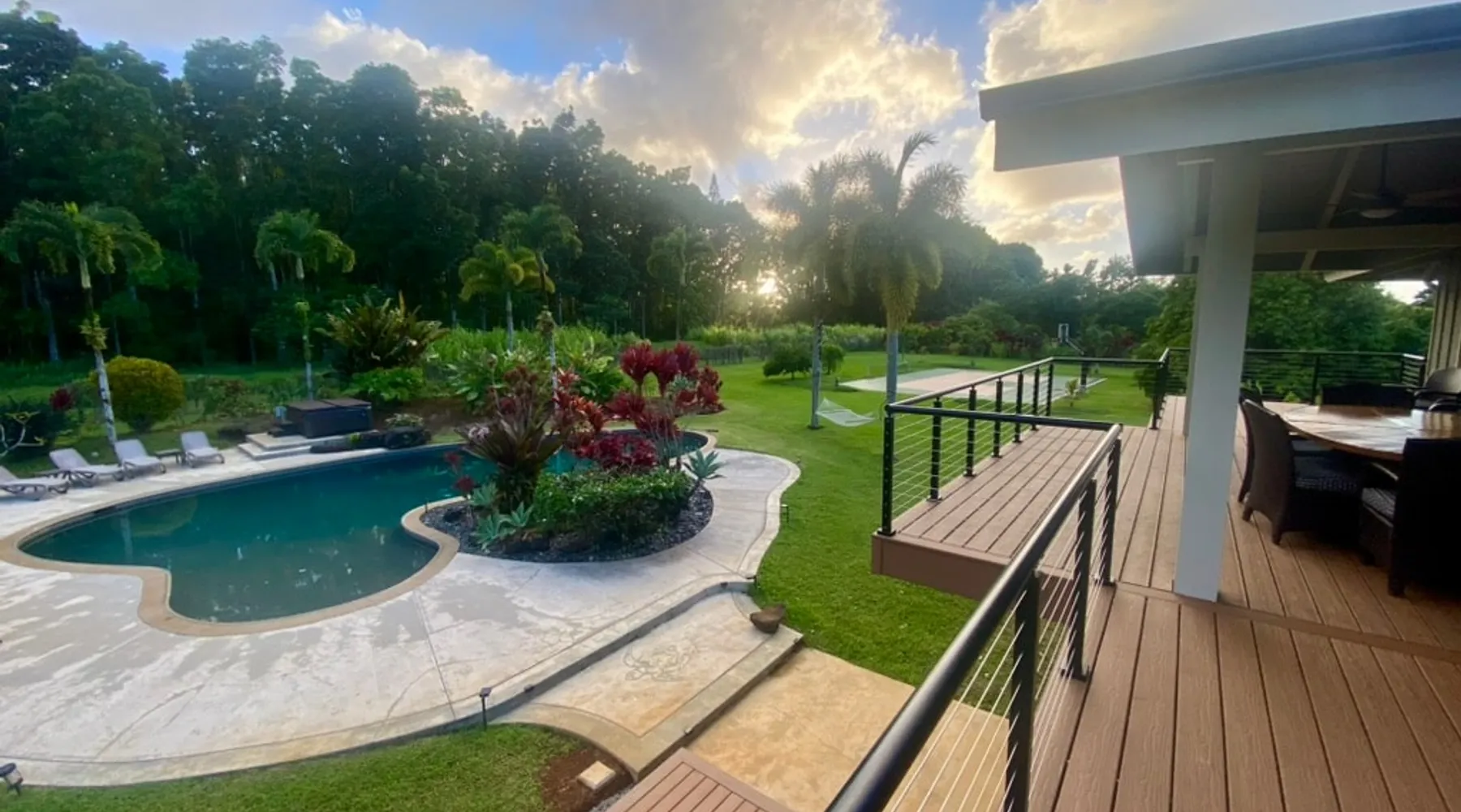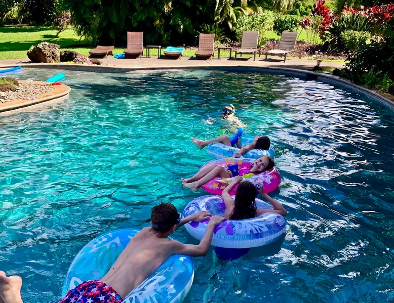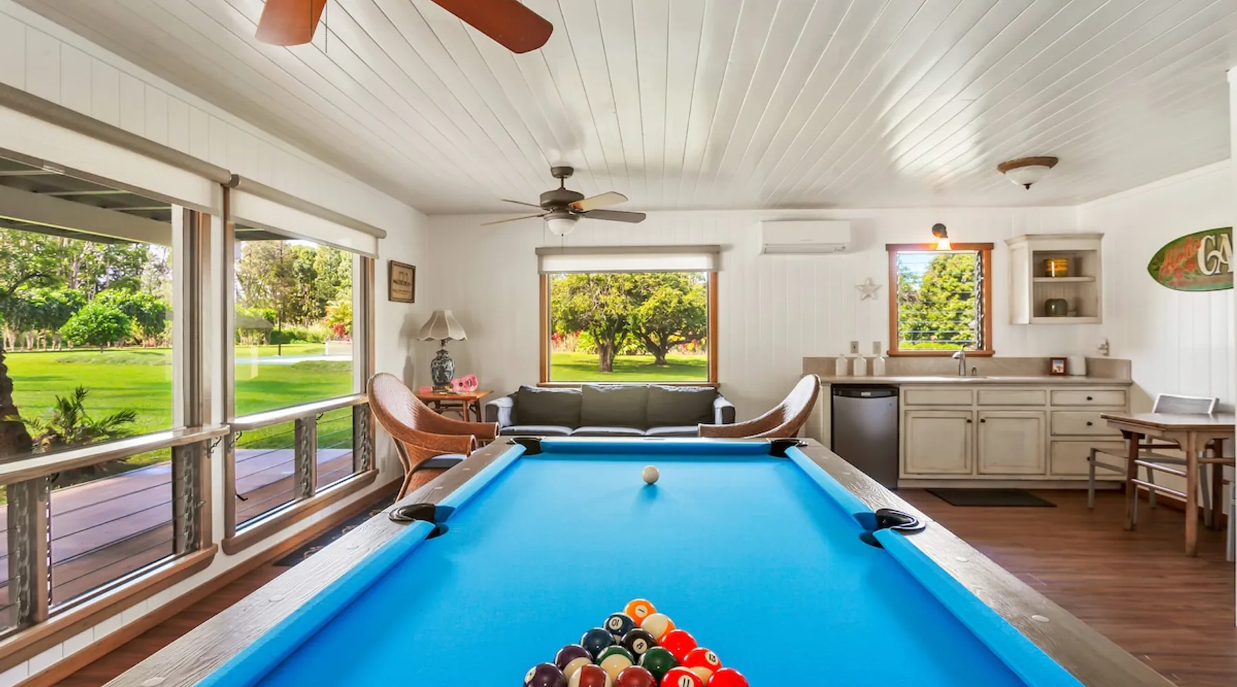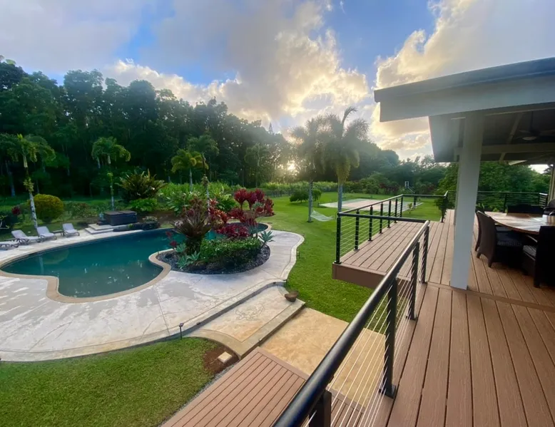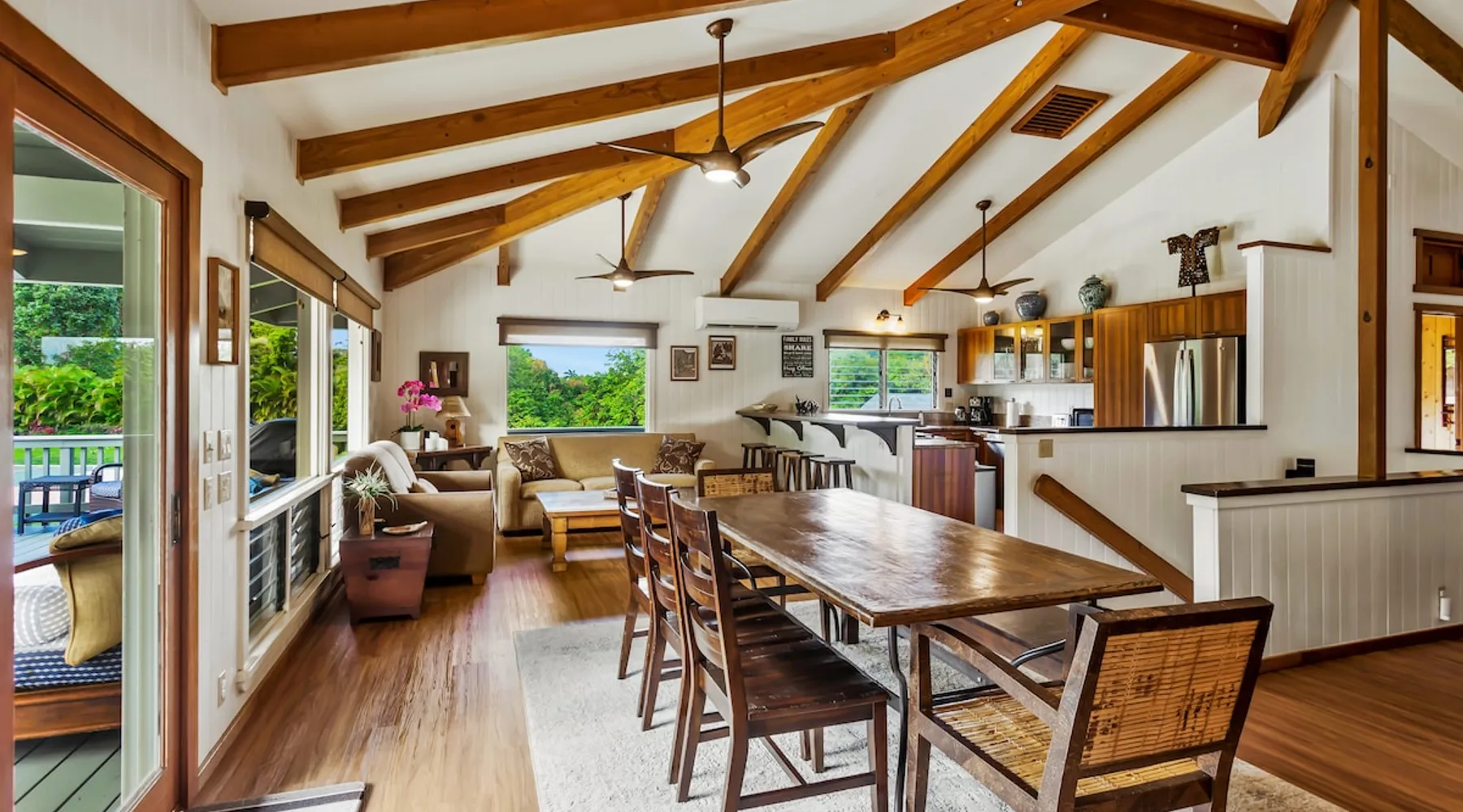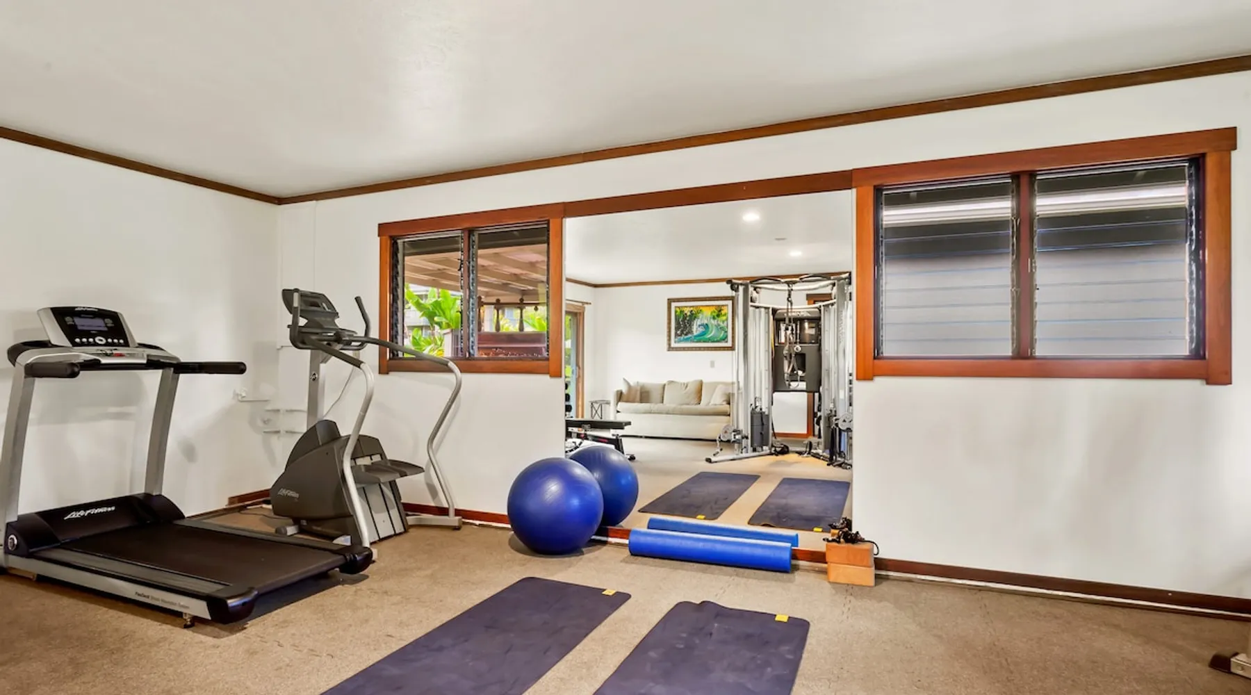 Kauai's #1 Rental for large groups. Huge Pool, Hot Springs Hot Tub, Full Private Gym, Peloton, Air Conditioning in Every Room, Pool Table, Ping Pong, 5 Acres, Fruit Trees, 5+ Bedrooms, Sleeps 10 - 15, Miles Of Trails Directly Behind Home...Minutes From Kalihiwai Bay, Secret Beach, Anini beach and Hanalei Bay. Exclusively Managed by "House Of Dreams Kauai" with over 60 FIVE STAR Reviews online. Look up House Of Dreams Kauai and read our many reviews. The space Because of the many features Ke Aloha offers, all guests that reserve Ke Aloha Estate on Airbnb must sign our rental agreement which indemnifies owners and agents and describes all terms and conditions governing this Kauai vacation home. Guest must also comply with all terms and conditions and supply House Of Dreams Kauai with the names of all occupants as well as a valid email address, on island phone contact and home address. Feel free to contact us prior to reserving if you wish to review the agreement. Rates are based on 10 guests. Additional fees are charged for larger groups. The fee is $75 per person, per night plus tax. Kauai’s #1 rental is now even better. The current photos do not show the newest upgrades, which include brand new multi-level decking with shaded areas, refinished pool decking, and resurfaced garage, kitchen renovation, 2 bathrooms converted to walk-in showers, new furniture, and new art provided by Aaron Feinberg Gallery in Hanalei. Photos should be coming soon. Peak Holiday and Summer Seasons have a 7 night minimum. We will consider shorter stays when it aligns with our calendar and surrounding reservations. Kauai County Requirements TVNC - 4267 - TA-105-498-4192-01 24/7 On Island PN-808-755,5869 Glenn **THIS HOME IS LOCATED IN A TSUNAMI ZONE** Ke Aloha is owned and managed by "House Of Dreams Kauai" rentals. Look us up so that you can read the many reviews we have about this home and our customer service. With 70 FIVE STAR reviews online, you will feel quite comfortable placing your trust in our hands. PRIVATE GYM with Peloton Bike, Precor/Icarian Smith Machine + 550 Pound Free Weights. Precor Icarian FTS Functional Training Workstation. These are the highest quality commercial machines available. From the moment you set foot on Ke Aloha's beautiful grounds, you will discover something truly special. Your five acres of paradise will envelop you in a warm embrace, inviting you to leave behind the hustle and bustle of everyday life and immerse yourself in the serenity of Kauai. In this private sanctuary, you will find the perfect backdrop for creating cherished memories together. The gentle sounds of the waterfall and the sight of Koi gracefully swimming in the pond will become the soundtrack to your days, while the breathtaking Namahana Mountain range serves as your backdrop. With each sunrise, you awaken in fully air-conditioned rooms, feeling like you were in a dream that you never wanted to end. The amenities are nothing short of extraordinary. The private gym, with Icarian Equipment, will become your invitation to stay active, while the spacious living areas provide the ideal setting for laughter and connection with loved ones. Whether a friendly game of ping pong and pool or a moment of stillness on the meditation platform, every corner of Ke Aloha Estate reverberates with joy and togetherness. As you explore the miles of hiking trails that seamlessly blend nature with adventure, you might feel invigorated and at peace. The Stone Dam and its stunning waterfall park will become a favorite retreat, where you can let your minds wander and reconnect with each other and the beauty of Kauai. A recent guest wrote the following. "Your estate has given us so much more than a place to stay; it has gifted us a sense of abundance and tranquility. You have created an oasis that serves as our “Home Away From Home,” providing a haven for our family to gather, celebrate, and simply be together, free from the crowded chaos of the outside world. As we reflect on our time spent within your magical embrace, we are filled with gratitude. Thank you for offering us a glimpse of the Aloha Spirit, for accommodating our every need, and for allowing us to make lasting memories in this special place. Your dedication to maintaining the highest standards shines through and is felt in every detail. We look forward to the day we can return to your enchanting paradise and continue our journey of love, laughter, and connection. Until then, we will carry the spirit of Ke Aloha in our hearts, reminding us of the beauty and abundance that awaits us." Ke Aloha's 5 acres provide everything you need to experience Kauai in your very own "Home Away From Home". We understand the importance of providing an alternative to crowded hotels or the risks of dining in jam-packed restaurants. What better way to travel safely than having your very own 5-acre private resort, pool, gym, pickleball, and miles of hiking trails, accessible from your very own backyard? Bedroom 1 - King and Ensuite Bathroom (Upstairs) Bedroom 2 - King Shared Full Bathroom with Bedroom 3 (Up) Bedroom 3 - King (Up) Additional Half Bath (Up) Bedroom 4 - Queen Shared Full Bathroom with Bedroom 5 (Lower) Bedroom 5 - Twin over Full Bunkbed (Lower) Additional Queen Bed in a separate area with adjacent Full Bathroom, extra queen sofa bed - Available By Request Only Outdoor Shower Larger groups of up to 16 may be considered pending owner approval. Additional fees apply. 7-night minimum peak & holiday • 5-night minimum all off-peak weeks WEDDINGS - For weddings, we require a 7-night rental. There is a $3500 site fee in addition to the rent. We allow weddings of up to 50 guests. Additional terms and conditions apply. POOL HEATING IS ADDITIONAL - Currently offered at $100 Per Day + Tax. A mid-stay cleaning at $50 per hour is required for stays over 8 nights. Mid-stay cleanings range between $140 to $280 + GET Tax. Fees are as follows... Hawaii State TAT/GET Taxes are 17.96% - 18.7