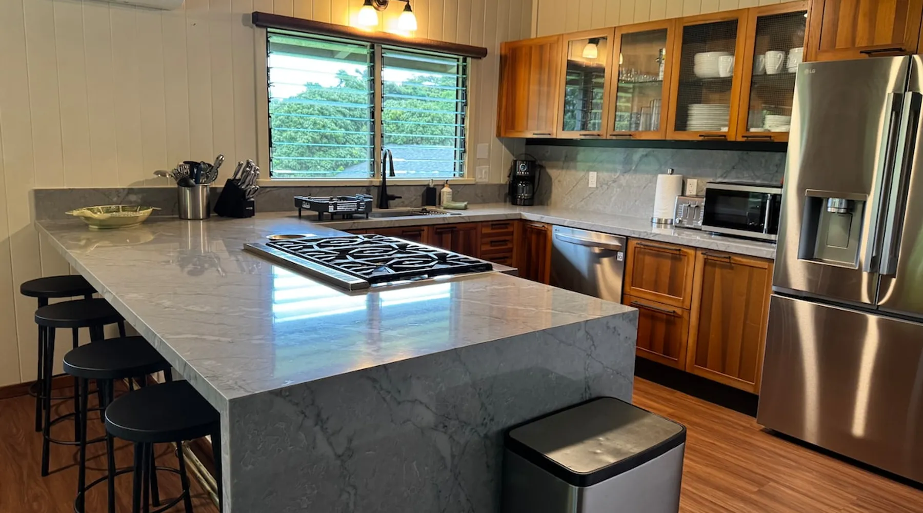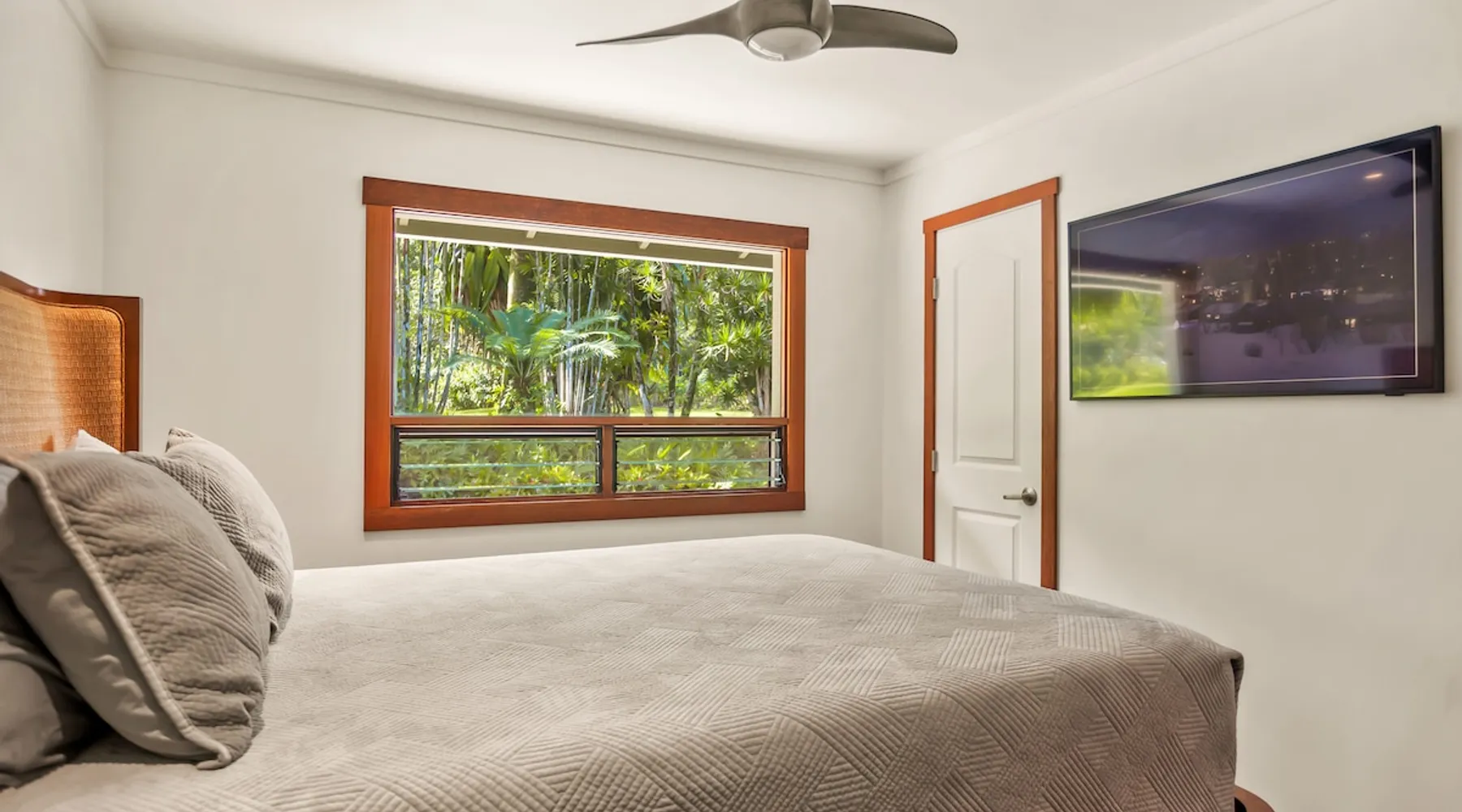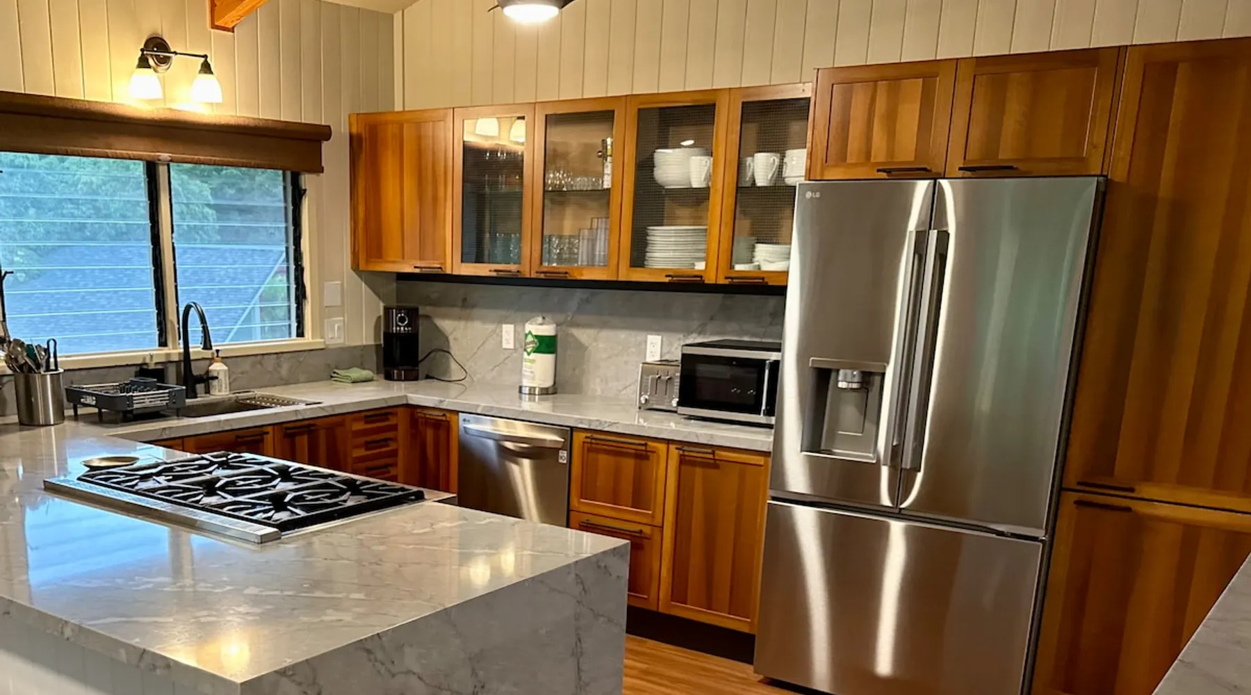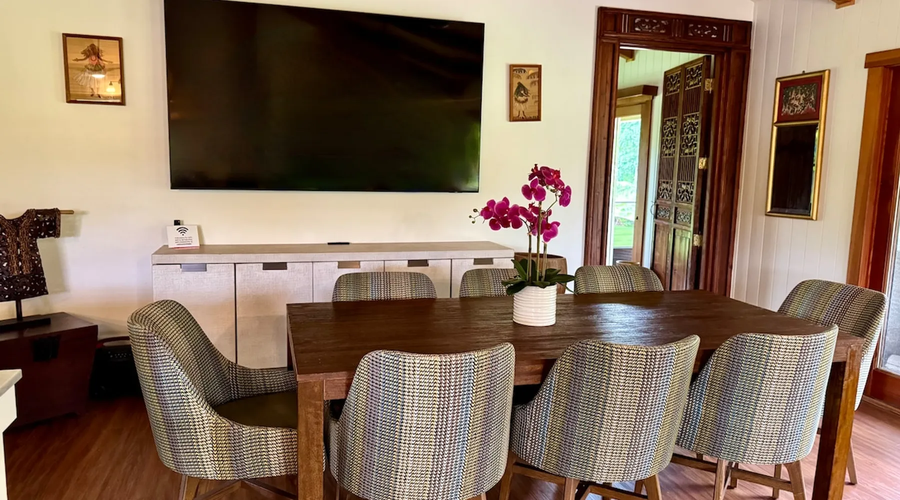 Kauai's #1 Rental for large groups. Huge Pool, Hot Springs Hot Tub, Full Private Gym, Peloton, Air Conditioning in Every Room, Pool Table, Ping Pong, 5 Acres, Fruit Trees, 5+ Bedrooms, Sleeps 10 - 15, Miles Of Trails Directly Behind Home...Minutes From Kalihiwai Bay, Secret Beach, Anini beach and Hanalei Bay. Exclusively Managed by "House Of Dreams Kauai" with over 60 FIVE STAR Reviews online. Look up House Of Dreams Kauai and read our many reviews. The space Because of the many features Ke Aloha offers, all guests that reserve Ke Aloha Estate on Airbnb must sign our rental agreement which indemnifies owners and agents and describes all terms and conditions governing this Kauai vacation home. Guest must also comply with all terms and conditions and supply House Of Dreams Kauai with the names of all occupants as well as a valid email address, on island phone contact and home address. Feel free to contact us prior to reserving if you wish to review the agreement. Rates are based on 10 guests. Additional fees are charged for larger groups. The fee is $75 per person, per night plus tax. Kauai’s #1 rental is now even better. The current photos do not show the newest upgrades, which include brand new multi-level decking with shaded areas, refinished pool decking, and resurfaced garage, kitchen renovation, 2 bathrooms converted to walk-in showers, new furniture, and new art provided by Aaron Feinberg Gallery in Hanalei. Photos should be coming soon. Peak Holiday and Summer Seasons have a 7 night minimum. We will consider shorter stays when it aligns with our calendar and surrounding reservations. Kauai County Requirements TVNC - 4267 - TA-105-498-4192-01 24/7 On Island PN-808-755,5869 Glenn **THIS HOME IS LOCATED IN A TSUNAMI ZONE** Ke Aloha is owned and managed by "House Of Dreams Kauai" rentals. Look us up so that you can read the many reviews we have about this home and our customer service. With 70 FIVE STAR reviews online, you will feel quite comfortable placing your trust in our hands. PRIVATE GYM with Peloton Bike, Precor/Icarian Smith Machine + 550 Pound Free Weights. Precor Icarian FTS Functional Training Workstation. These are the highest quality commercial machines available. From the moment you set foot on Ke Aloha's beautiful grounds, you will discover something truly special. Your five acres of paradise will envelop you in a warm embrace, inviting you to leave behind the hustle and bustle of everyday life and immerse yourself in the serenity of Kauai. In this private sanctuary, you will find the perfect backdrop for creating cherished memories together. The gentle sounds of the waterfall and the sight of Koi gracefully swimming in the pond will become the soundtrack to your days, while the breathtaking Namahana Mountain range serves as your backdrop. With each sunrise, you awaken in fully air-conditioned rooms, feeling like you were in a dream that you never wanted to end. The amenities are nothing short of extraordinary. The private gym, with Icarian Equipment, will become your invitation to stay active, while the spacious living areas provide the ideal setting for laughter and connection with loved ones. Whether a friendly game of ping pong and pool or a moment of stillness on the meditation platform, every corner of Ke Aloha Estate reverberates with joy and togetherness. As you explore the miles of hiking trails that seamlessly blend nature with adventure, you might feel invigorated and at peace. The Stone Dam and its stunning waterfall park will become a favorite retreat, where you can let your minds wander and reconnect with each other and the beauty of Kauai. A recent guest wrote the following. "Your estate has given us so much more than a place to stay; it has gifted us a sense of abundance and tranquility. You have created an oasis that serves as our “Home Away From Home,” providing a haven for our family to gather, celebrate, and simply be together, free from the crowded chaos of the outside world. As we reflect on our time spent within your magical embrace, we are filled with gratitude. Thank you for offering us a glimpse of the Aloha Spirit, for accommodating our every need, and for allowing us to make lasting memories in this special place. Your dedication to maintaining the highest standards shines through and is felt in every detail. We look forward to the day we can return to your enchanting paradise and continue our journey of love, laughter, and connection. Until then, we will carry the spirit of Ke Aloha in our hearts, reminding us of the beauty and abundance that awaits us." Ke Aloha's 5 acres provide everything you need to experience Kauai in your very own "Home Away From Home". We understand the importance of providing an alternative to crowded hotels or the risks of dining in jam-packed restaurants. What better way to travel safely than having your very own 5-acre private resort, pool, gym, pickleball, and miles of hiking trails, accessible from your very own backyard? Bedroom 1 - King and Ensuite Bathroom (Upstairs) Bedroom 2 - King Shared Full Bathroom with Bedroom 3 (Up) Bedroom 3 - King (Up) Additional Half Bath (Up) Bedroom 4 - Queen Shared Full Bathroom with Bedroom 5 (Lower) Bedroom 5 - Twin over Full Bunkbed (Lower) Additional Queen Bed in a separate area with adjacent Full Bathroom, extra queen sofa bed - Available By Request Only Outdoor Shower Larger groups of up to 16 may be considered pending owner approval. Additional fees apply. 7-night minimum peak & holiday • 5-night minimum all off-peak weeks WEDDINGS - For weddings, we require a 7-night rental. There is a $3500 site fee in addition to the rent. We allow weddings of up to 50 guests. Additional terms and conditions apply. POOL HEATING IS ADDITIONAL - Currently offered at $100 Per Day + Tax. A mid-stay cleaning at $50 per hour is required for stays over 8 nights. Mid-stay cleanings range between $140 to $280 + GET Tax. Fees are as follows... Hawaii State TAT/GET Taxes are 17.96% - 18.7