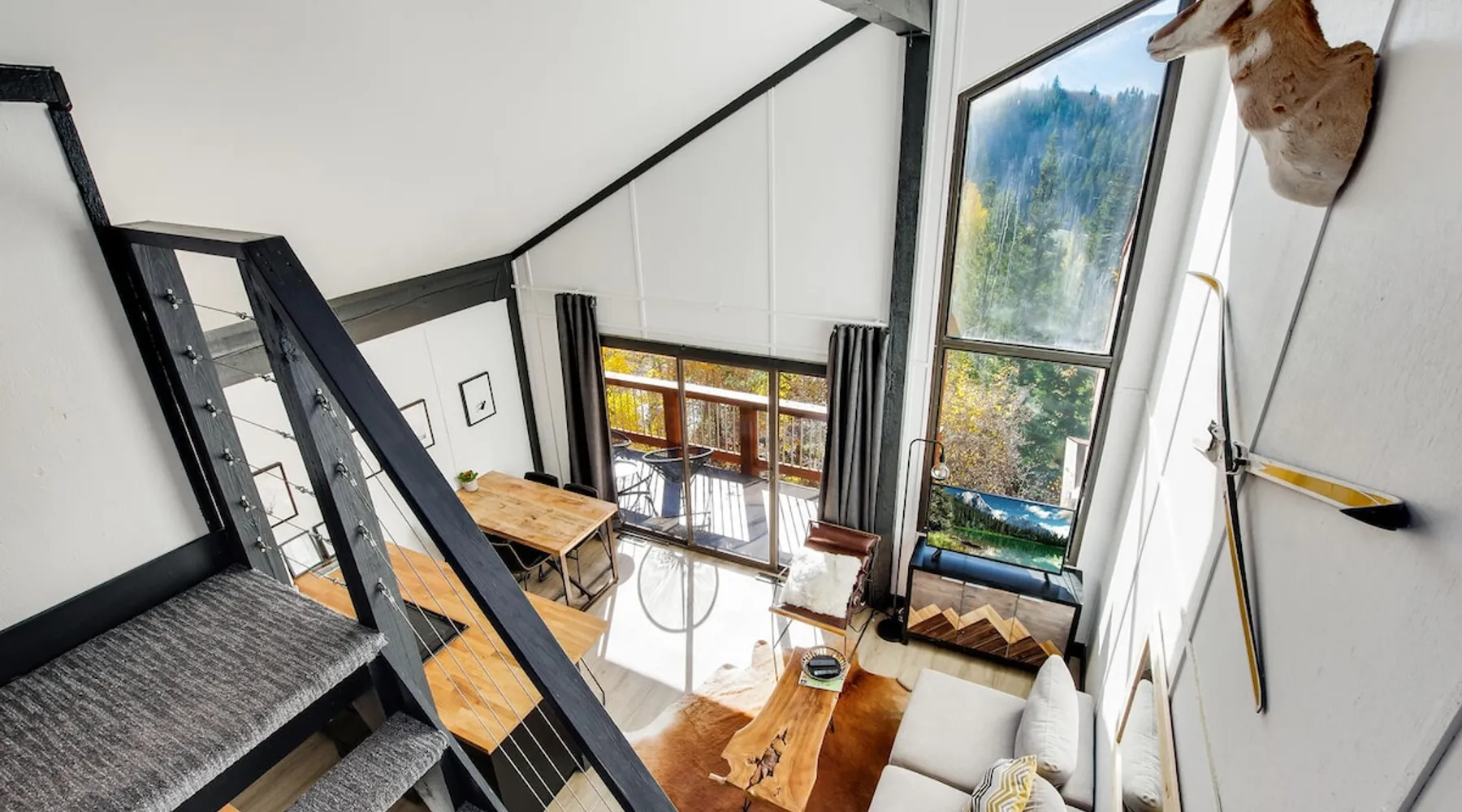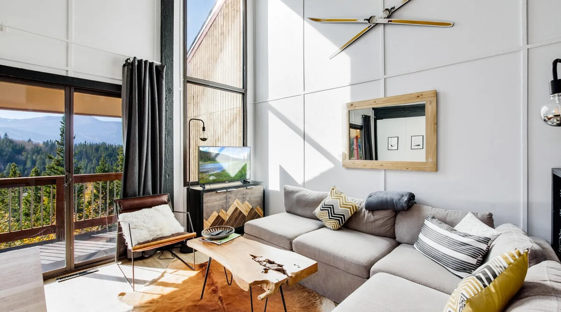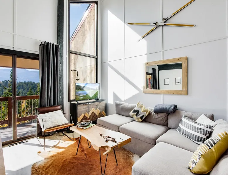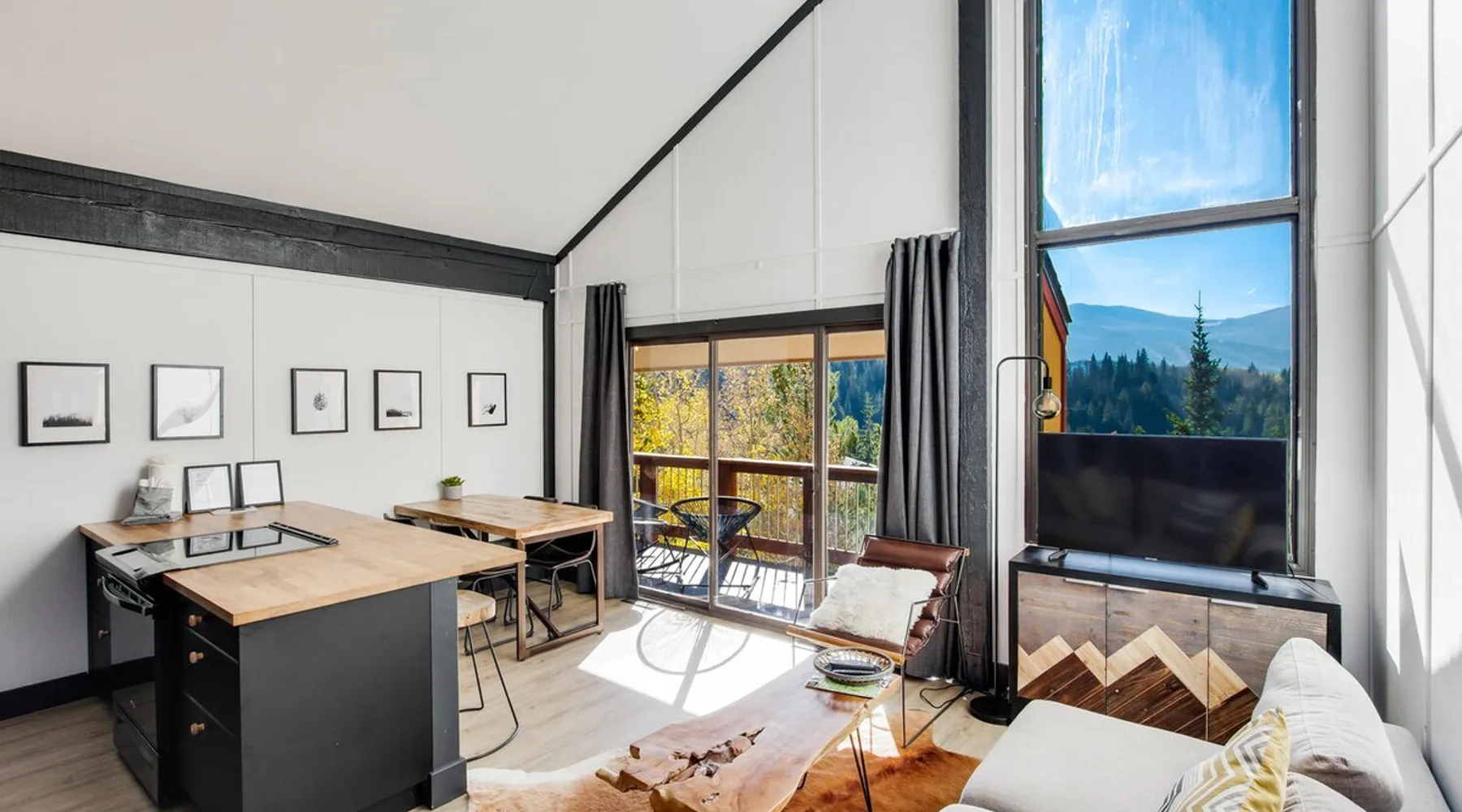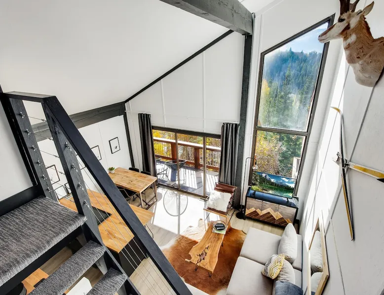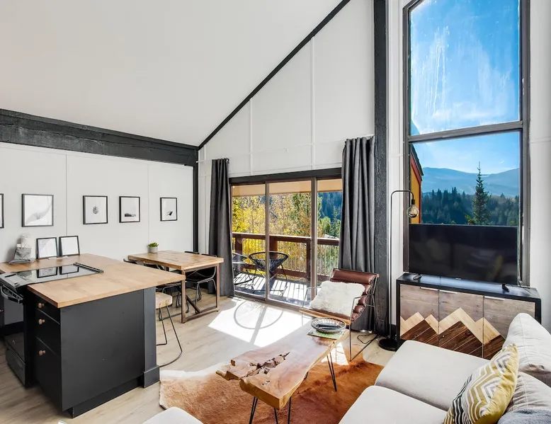 Decked out in a hip alpine-modern style, this small condo has everything you need for a perfect ski vacation or summer getaway. Watch the sunset from the balcony that is nestled among the trees or wake up to views of the ski area and choose your run for the day. This place is way cooler than your typical ski condo. Hiking, biking and cross-country trails are nearby. It is 2.5 miles to town and NOT ski-in ski-out, but there is a free bus to town/skiing. The space This is a very small condo (only about 750 square feet), but has enough space to sleep six. It’s not a fancy building or luxury complex but is a great getaway among the trees. The master bedroom has a king-size bed, closet, and an additional separate outside entrance. The bunk room has two twin beds and a large closet. The loft is what is being counted as the third bedroom and is open to the living room with very steep stairs for access. It has two twin beds and a large closet. The living room is very small but has a smart tv with cable, sofa, and chair. The kitchen is fully equipped including dishwasher, full-size range/oven. We provide coffee/tea, cooking oil, and s/p. The dining table seats four and there is a four-person bar. The large balcony has a picnic table and two rocking chairs. The views to the ski area are unreal. The bathroom has tub/shower, rock sink, toilet and is stocked with soap, shampoo, conditioner. Parking: two cars only (one is in a lot that is a short walk away). Other things to note This is an older complex and the walls are very thin. You will hear the neighbors and the neighbors will hear you. NO PETS (it’s a strict HOA rule). Prices are as posted. Registration Details STR20-00068