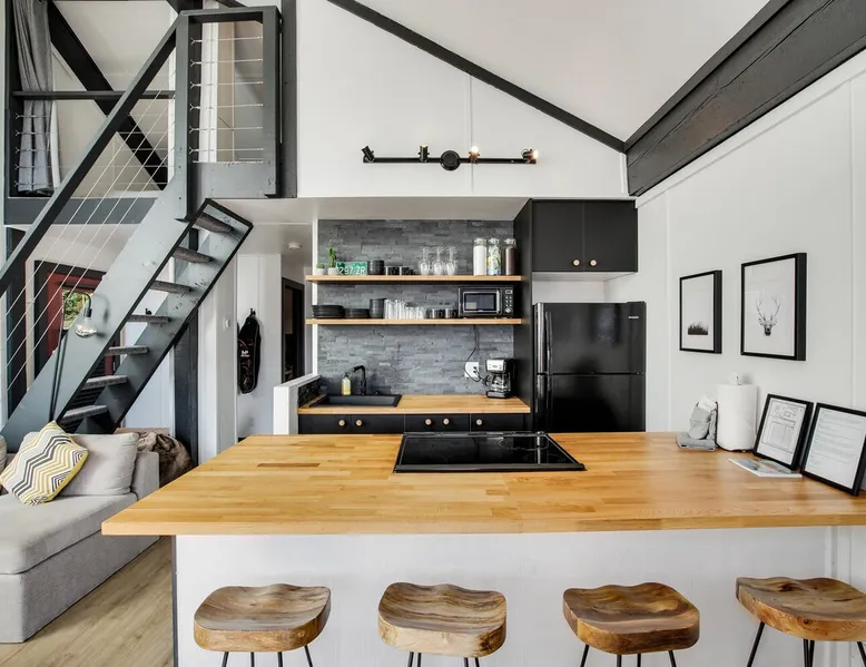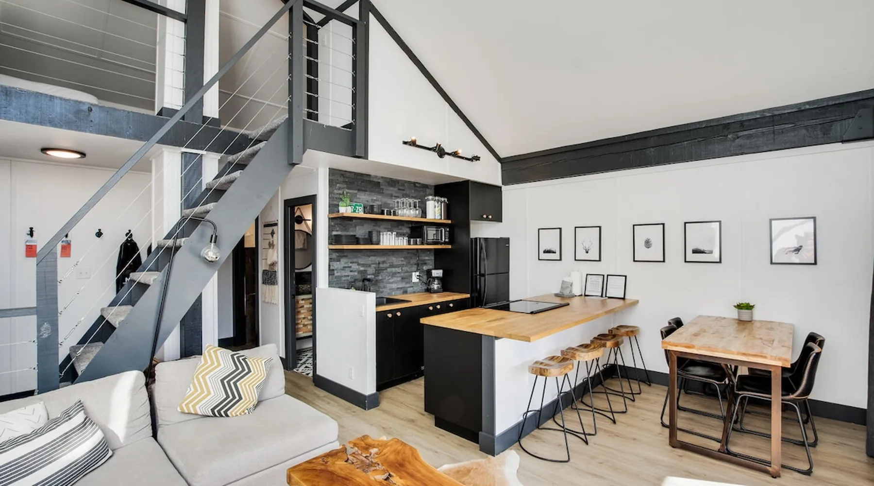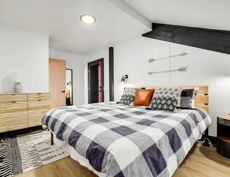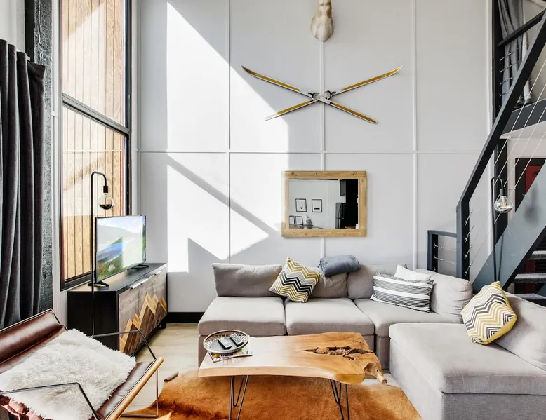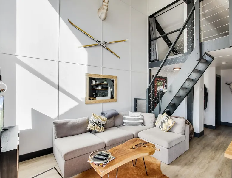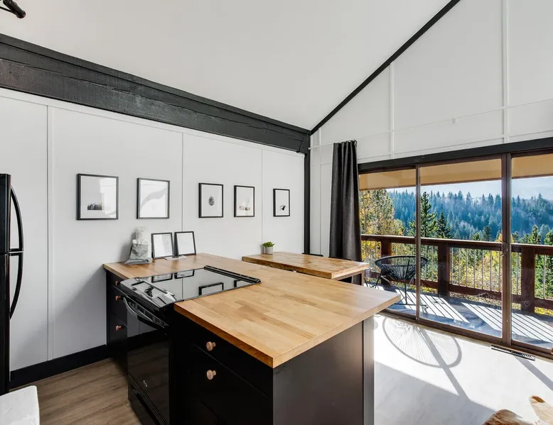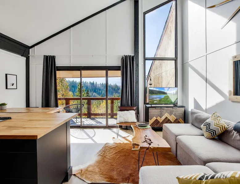 Decked out in a hip alpine-modern style, this small condo has everything you need for a perfect ski vacation or summer getaway. Watch the sunset from the balcony that is nestled among the trees or wake up to views of the ski area and choose your run for the day. This place is way cooler than your typical ski condo. Hiking, biking and cross-country trails are nearby. It is 2.5 miles to town and NOT ski-in ski-out, but there is a free bus to town/skiing. The space This is a very small condo (only about 750 square feet), but has enough space to sleep six. It’s not a fancy building or luxury complex but is a great getaway among the trees. The master bedroom has a king-size bed, closet, and an additional separate outside entrance. The bunk room has two twin beds and a large closet. The loft is what is being counted as the third bedroom and is open to the living room with very steep stairs for access. It has two twin beds and a large closet. The living room is very small but has a smart tv with cable, sofa, and chair. The kitchen is fully equipped including dishwasher, full-size range/oven. We provide coffee/tea, cooking oil, and s/p. The dining table seats four and there is a four-person bar. The large balcony has a picnic table and two rocking chairs. The views to the ski area are unreal. The bathroom has tub/shower, rock sink, toilet and is stocked with soap, shampoo, conditioner. Parking: two cars only (one is in a lot that is a short walk away). Other things to note This is an older complex and the walls are very thin. You will hear the neighbors and the neighbors will hear you. NO PETS (it’s a strict HOA rule). Prices are as posted. Registration Details STR20-00068